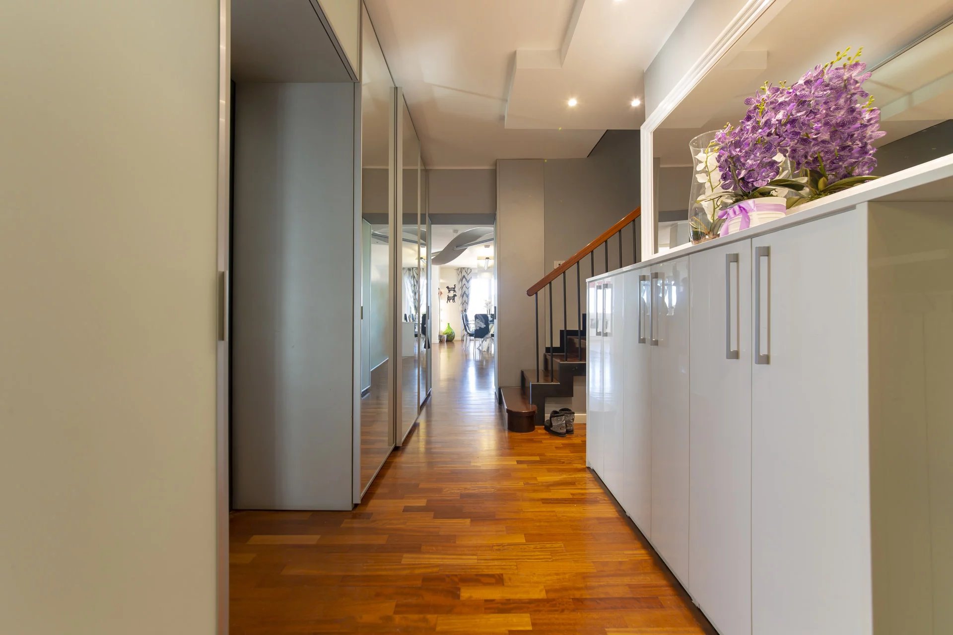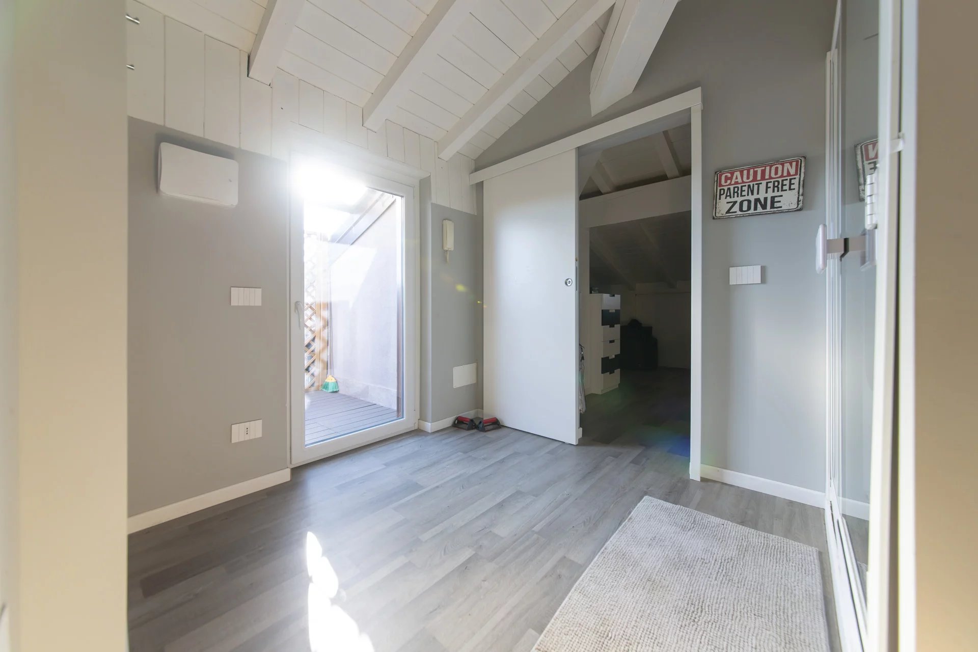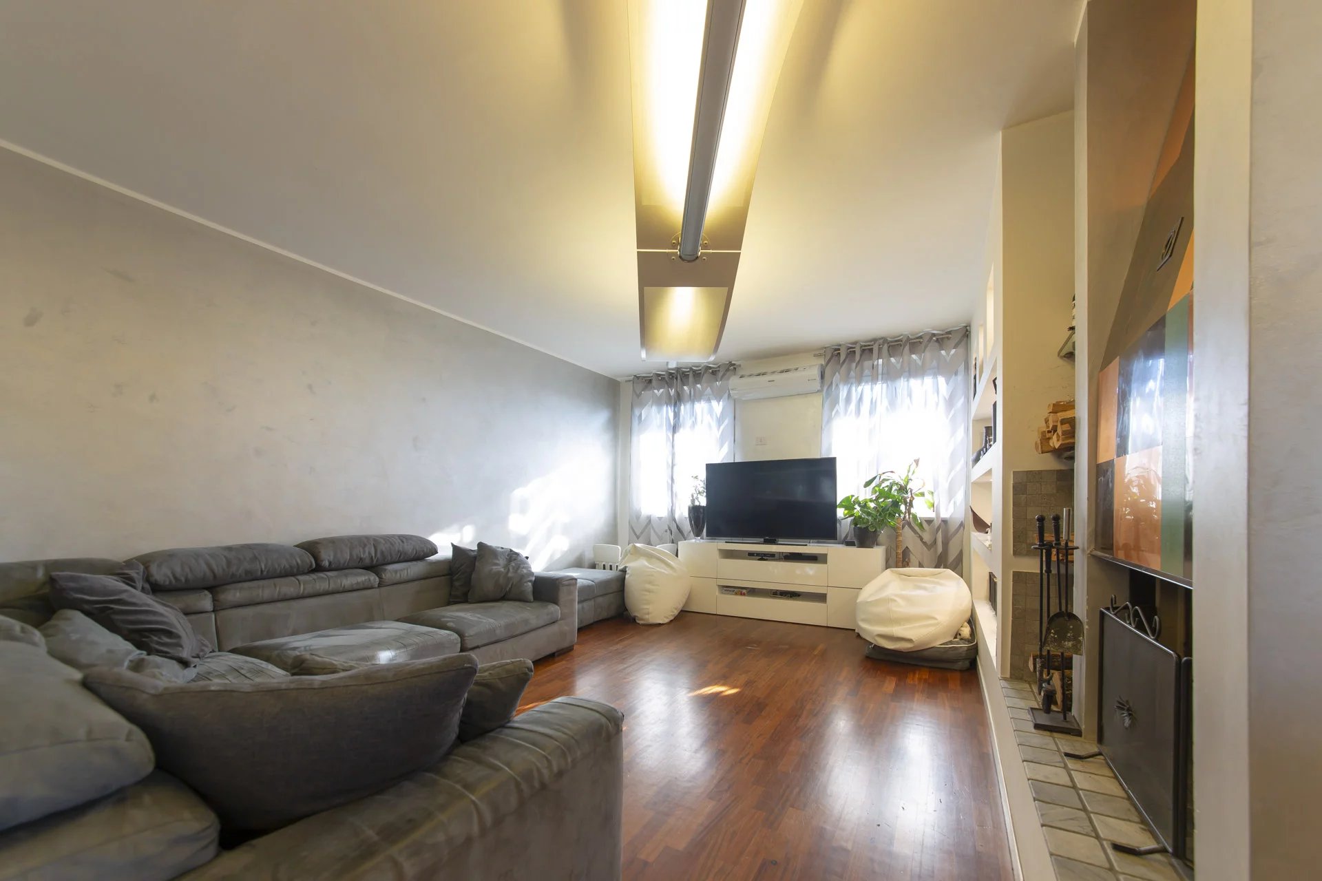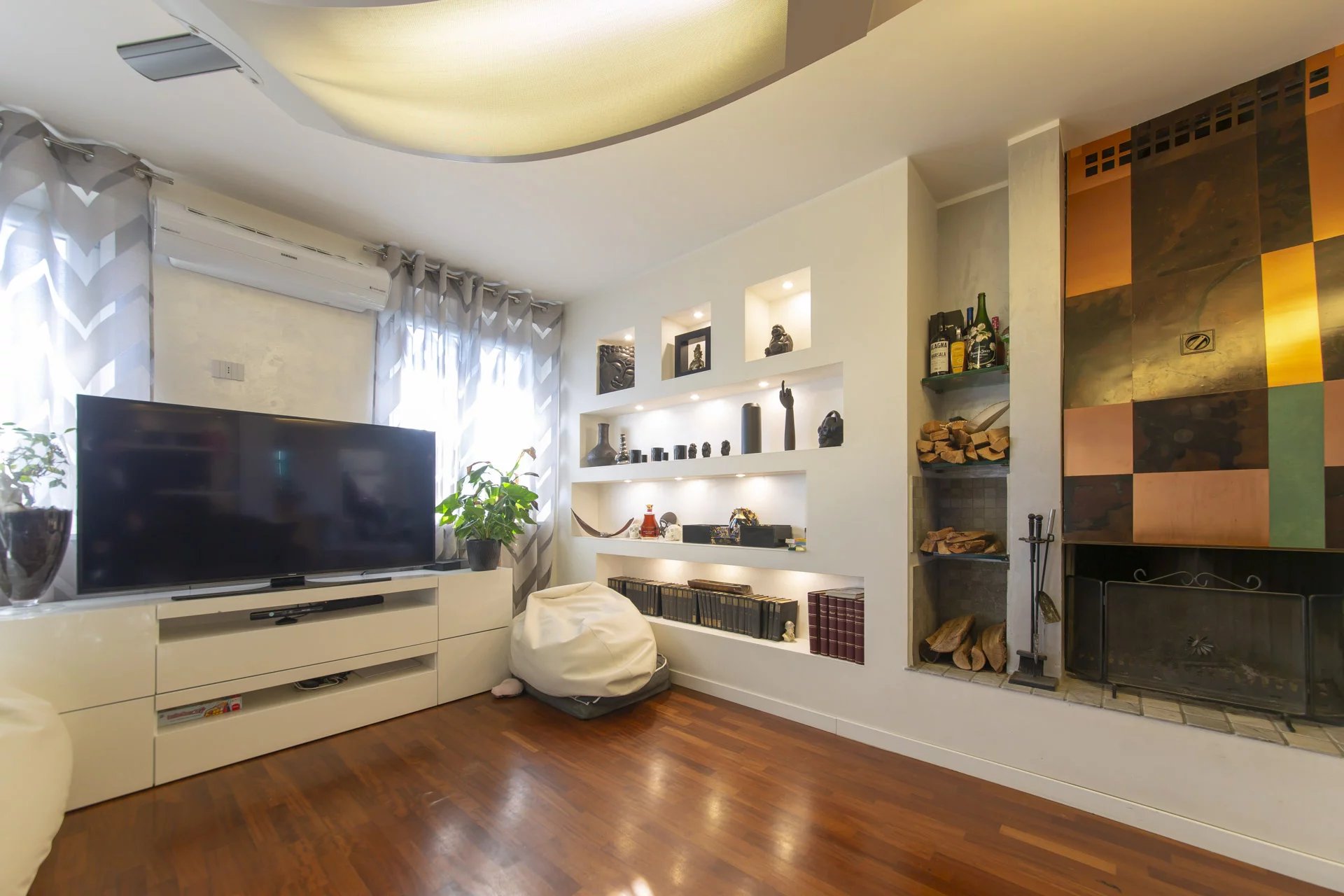 I volumi dell'attico sono stati sapientemente distribuiti: la proprietà gode di spazi ampi e luminosi, primo tra tutti la zona LIVING di 90mq che è caratterizzato dalla sua disposizione particolare e impreziosita dal camino.