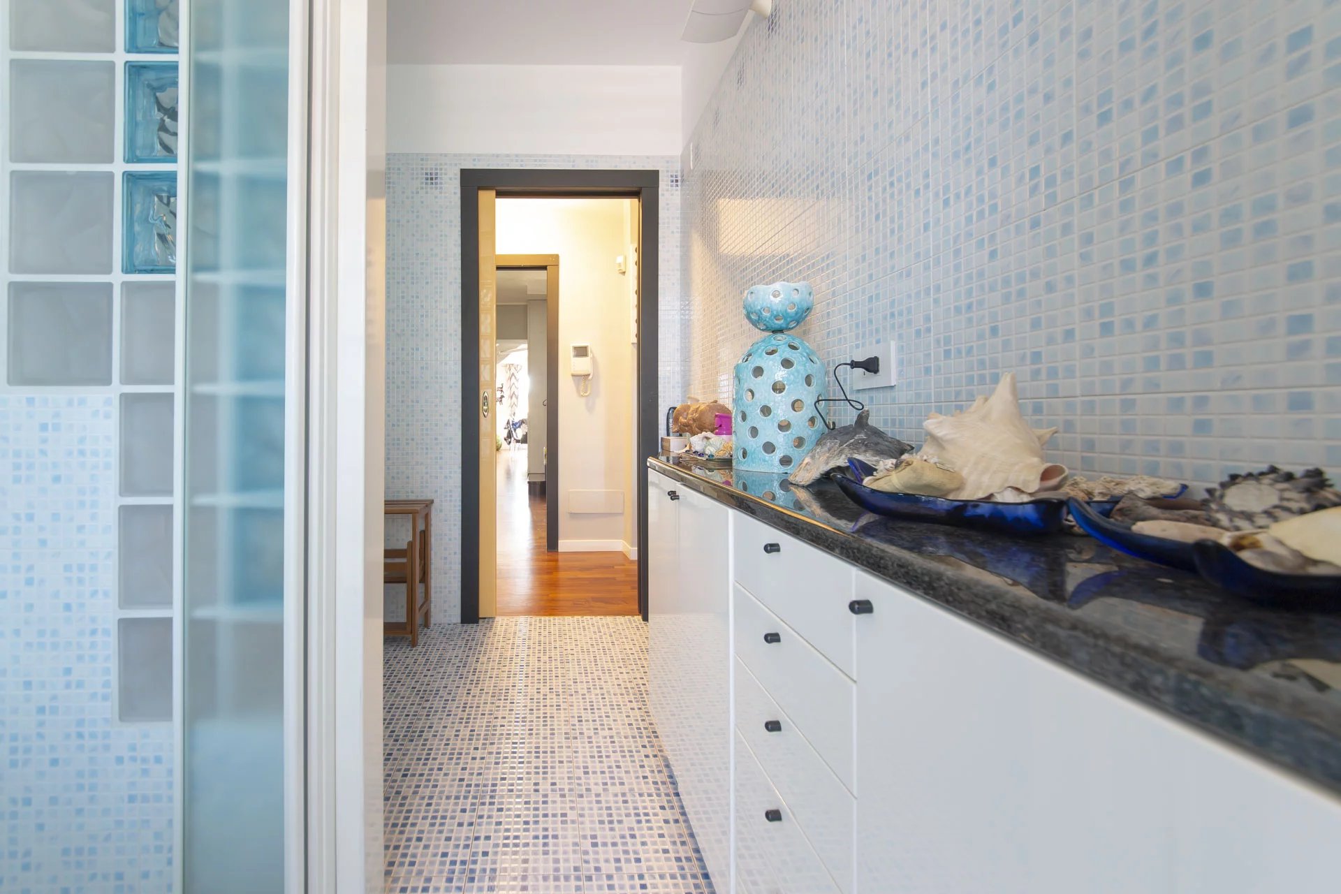 A completamento della zona giorno troviamo la cucina abitabile a vista con accesso al terrazzino e la sala da pranzo.