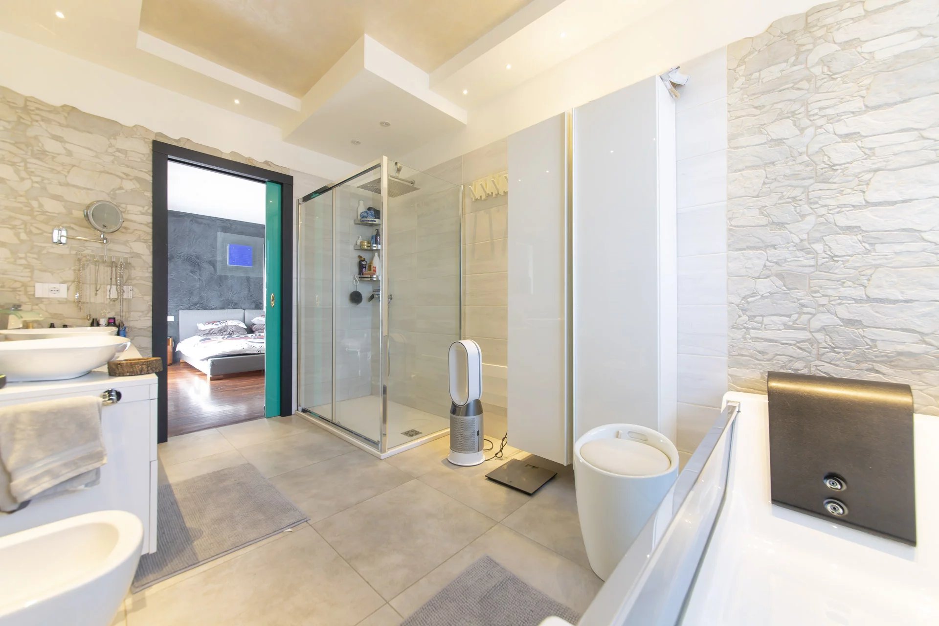 La zona notte si sviluppa sullo stesso piano e comprende la camera padronale con bagno privato dotato di vasca idromassaggio per due persone, cabina armadio e balcone, ulteriori due spaziose camere ciascuna con bagno privato e balcone.