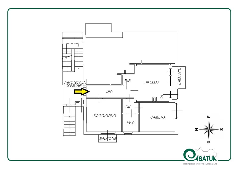 L'appartamento, posto al piano rialzato, è composto internamente da ingresso, luminoso soggiorno con accesso al balcone, cucina abitabile con secondo balcone, disimpegno che conduce alla zona notte, camera matrimoniale, bagno e ripostiglio.