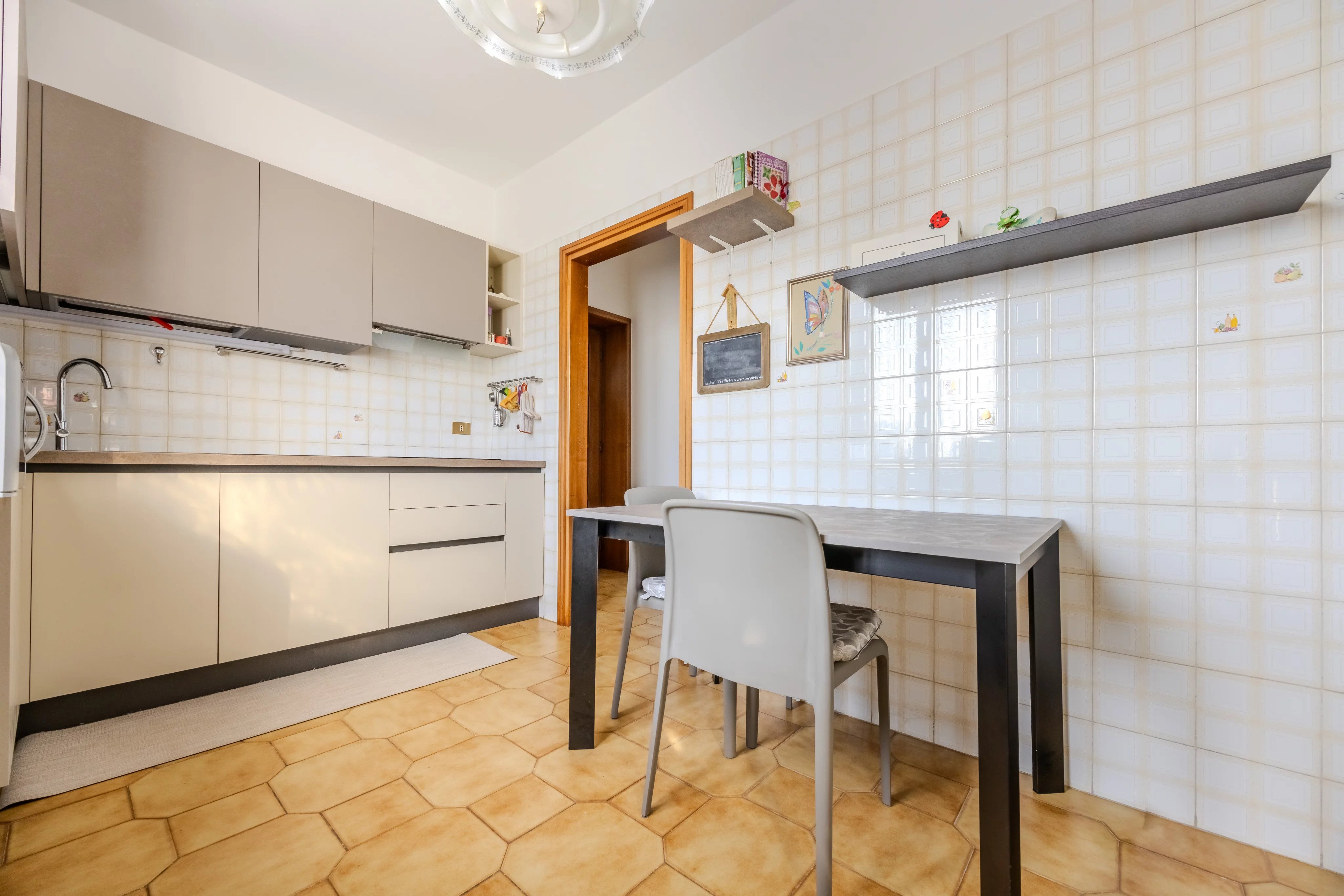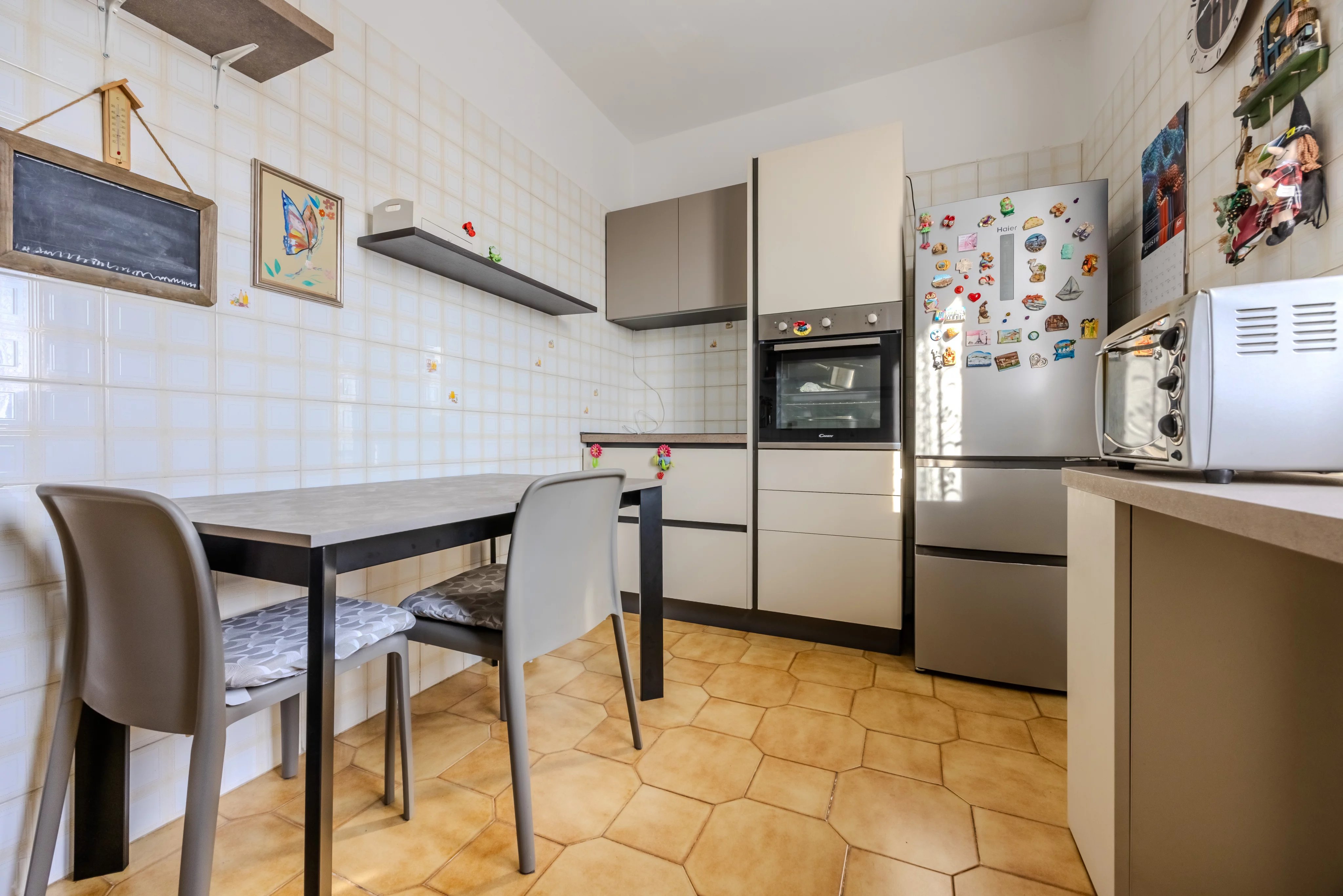 La soluzione, luminosa e di ampia metratura, si apre su un ingresso che conduce ad un soggiorno spazioso e ben distribuito, seguito da un disimpegno che accompagna alla cucina, alle due ampie camere da letto e al bagno finestrato.