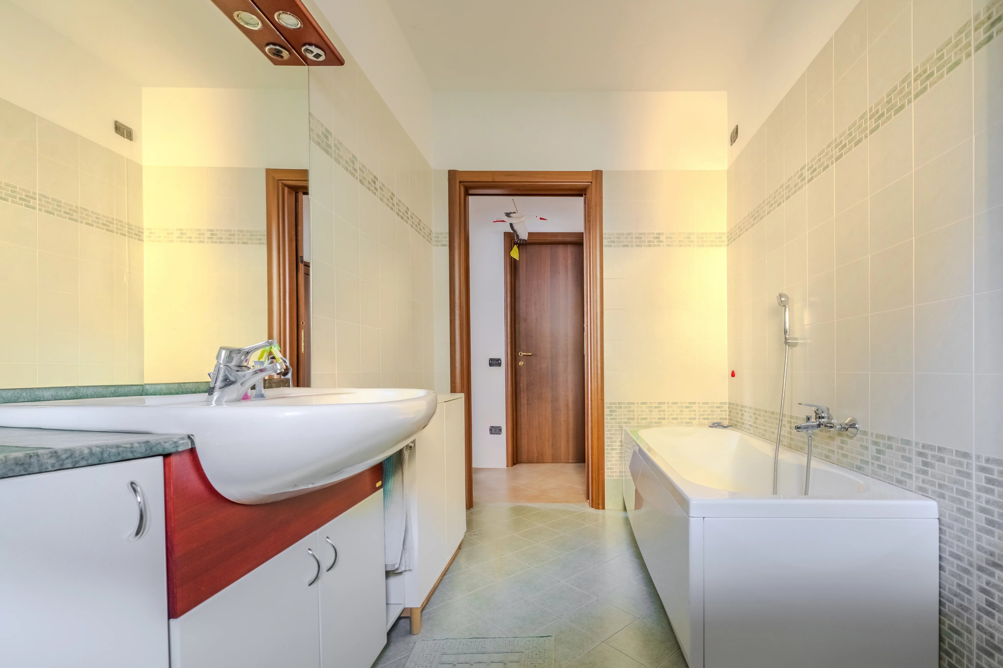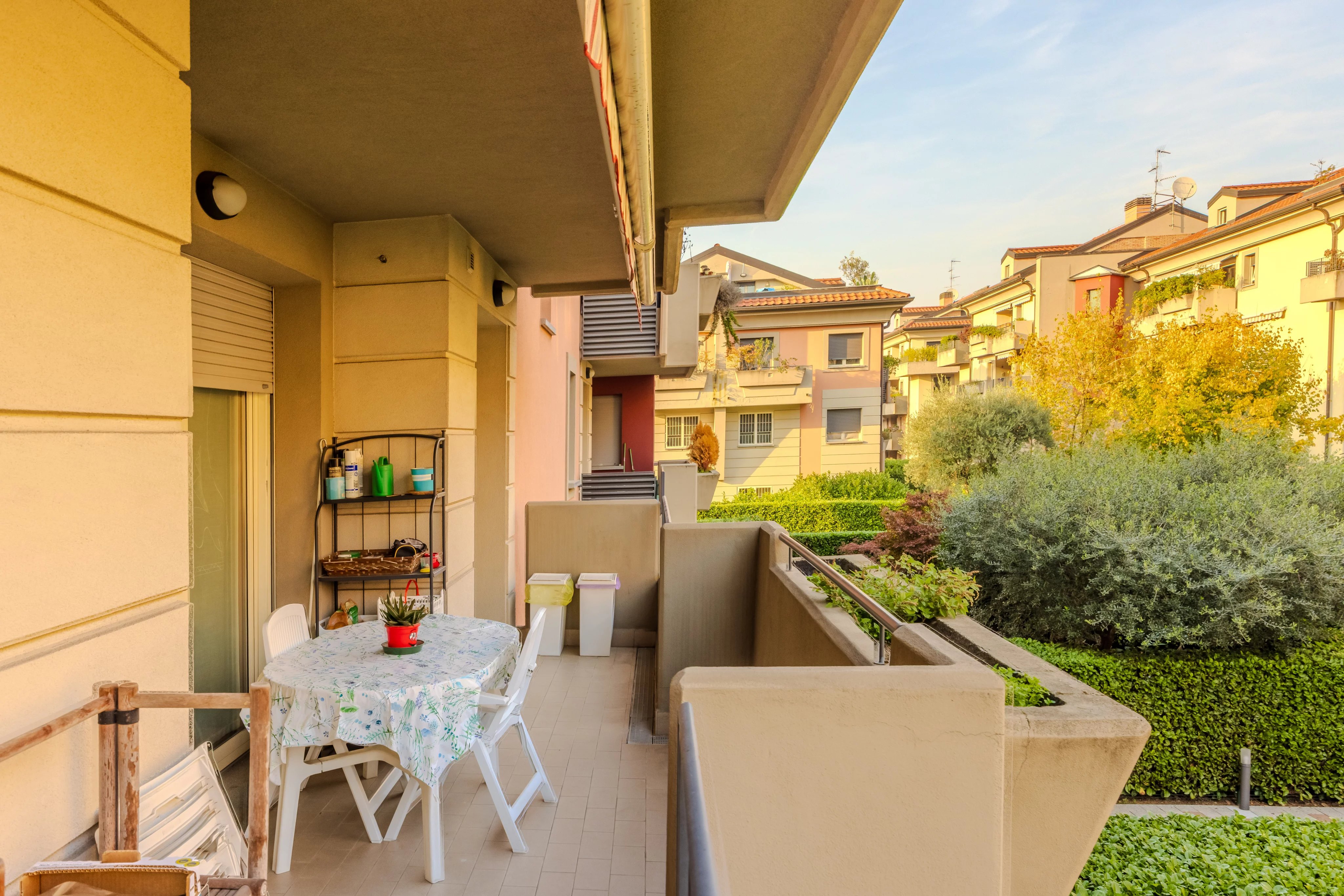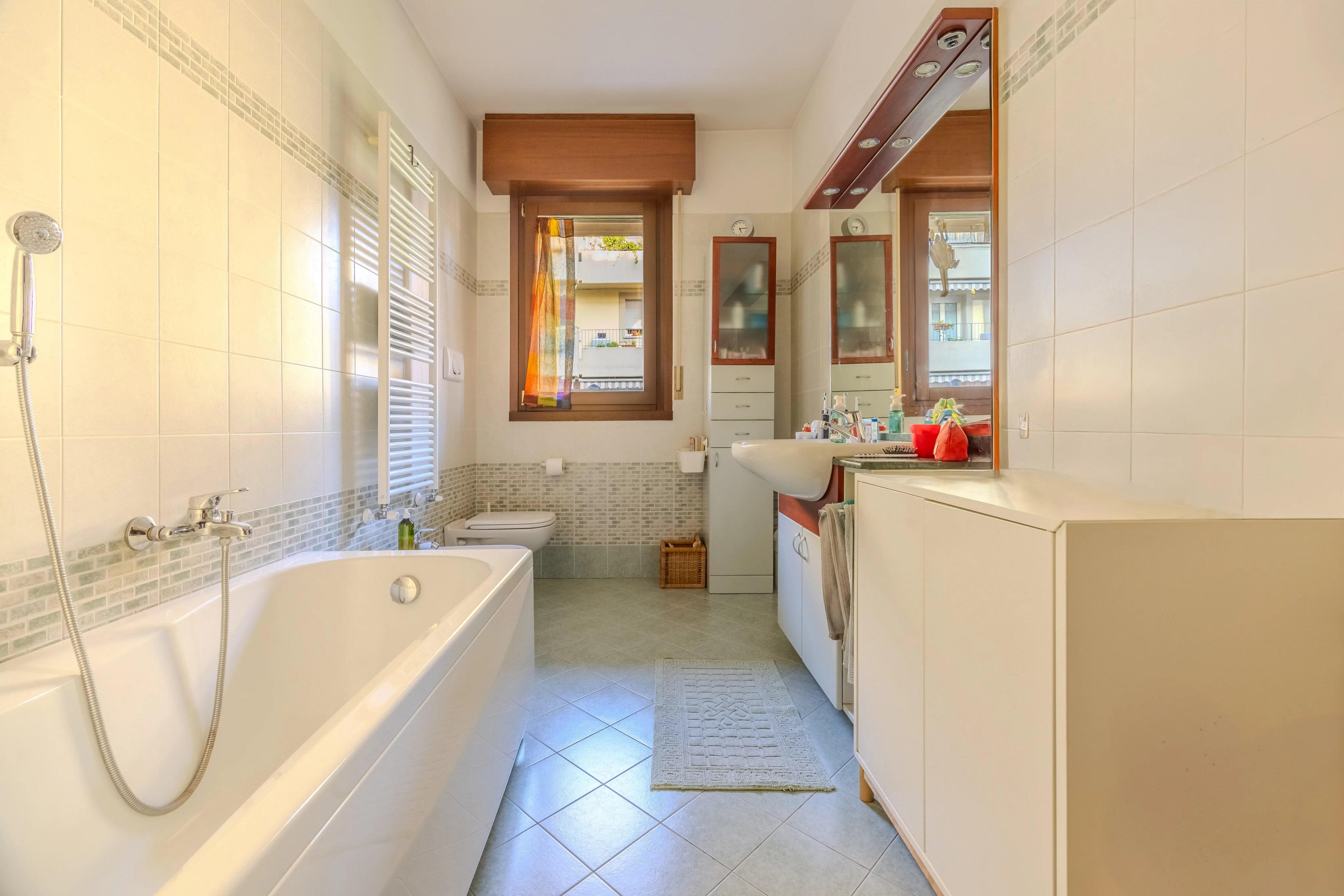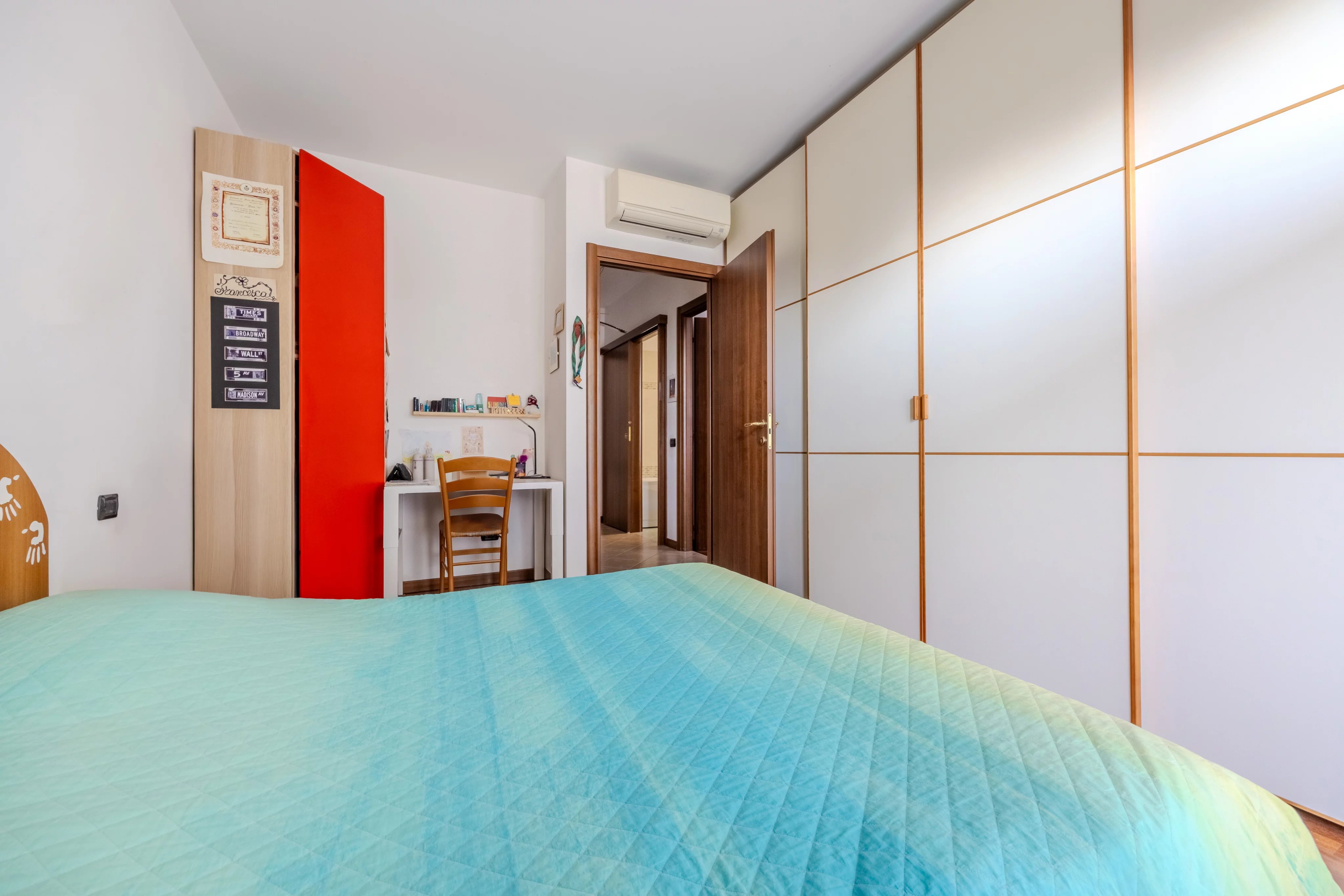 Un comodo disimpegno introduce la zona notte, composta da due ampie camere da letto e doppi servizi. Un secondo balcone di servizio aggiunge praticità agli spazi esterni.