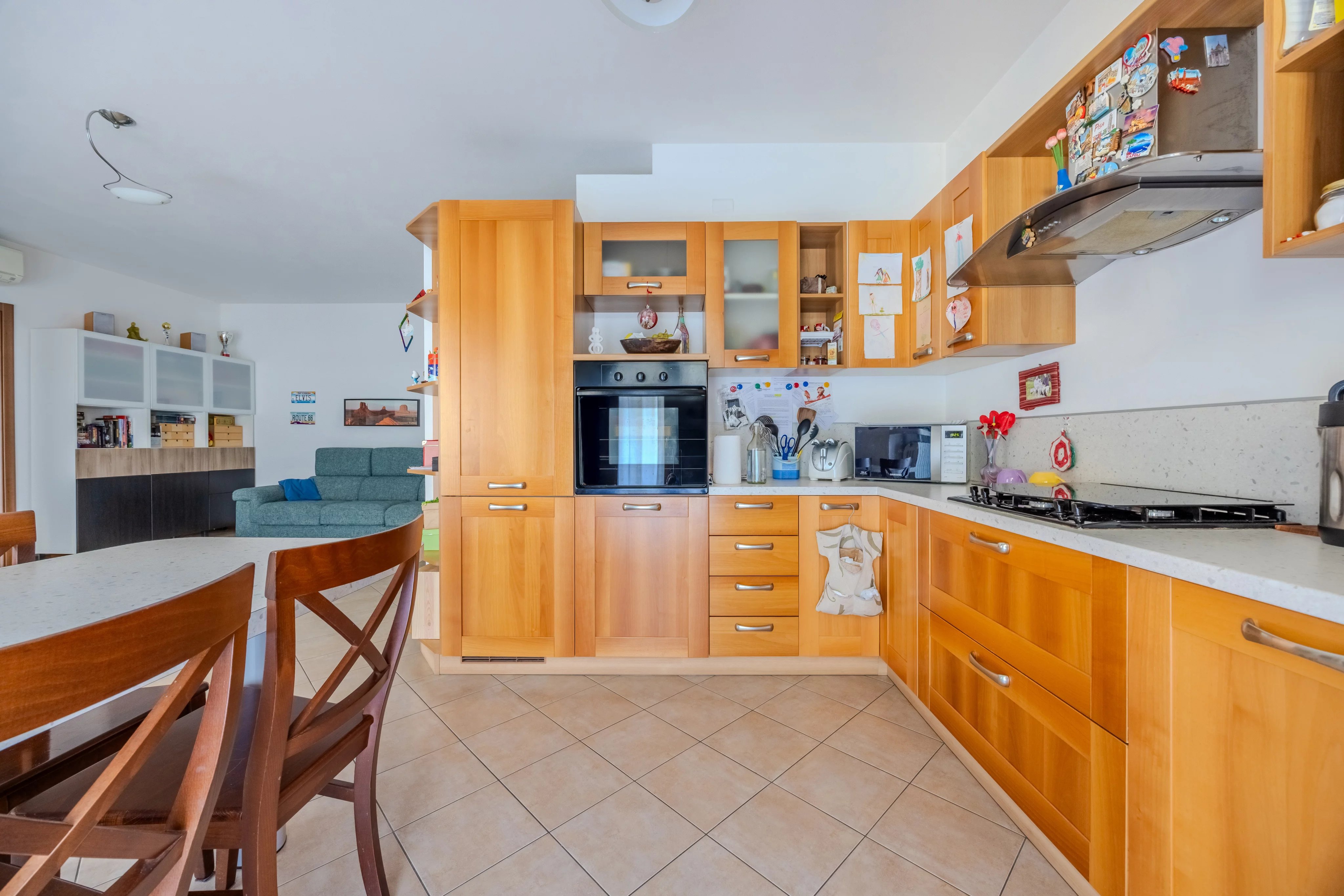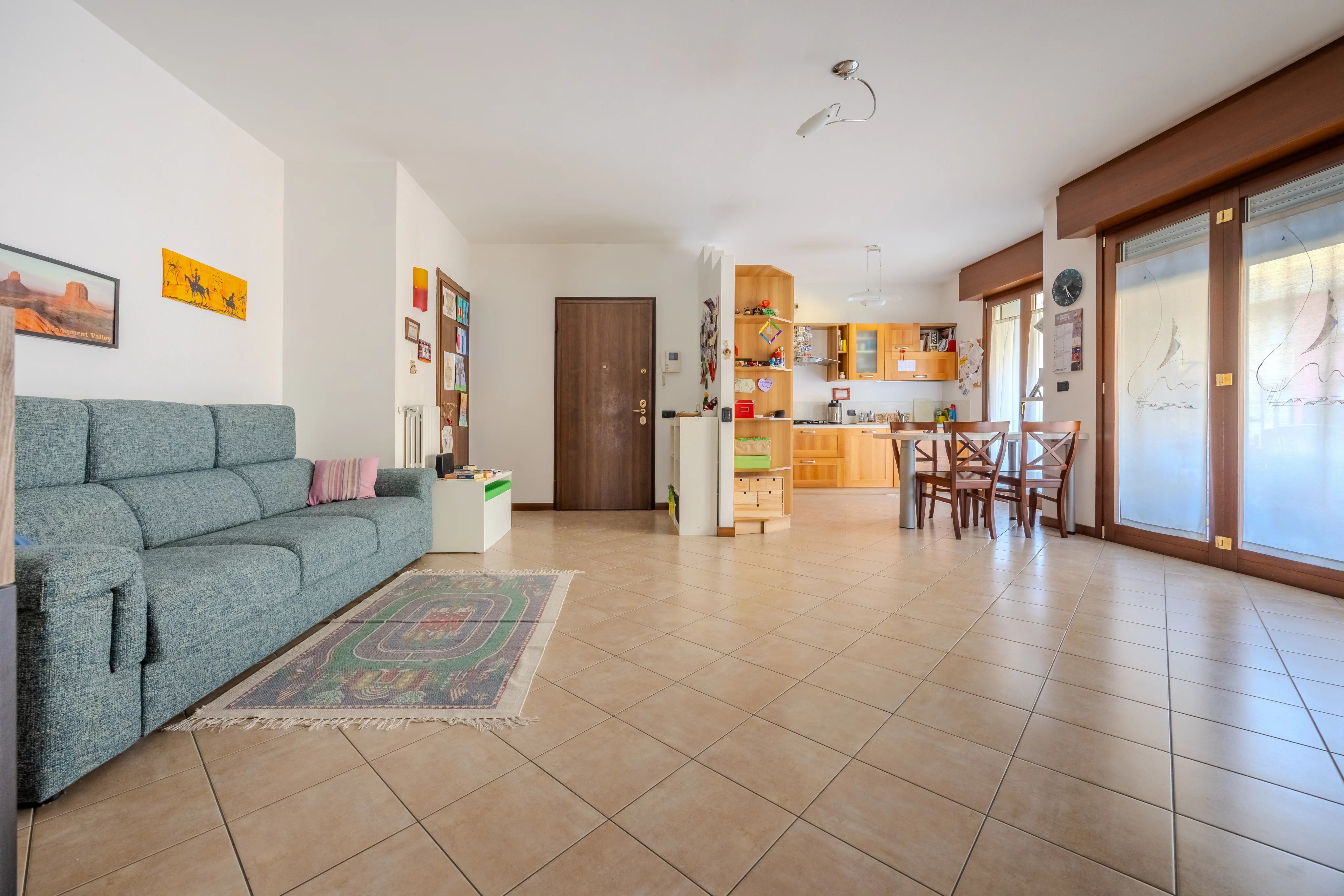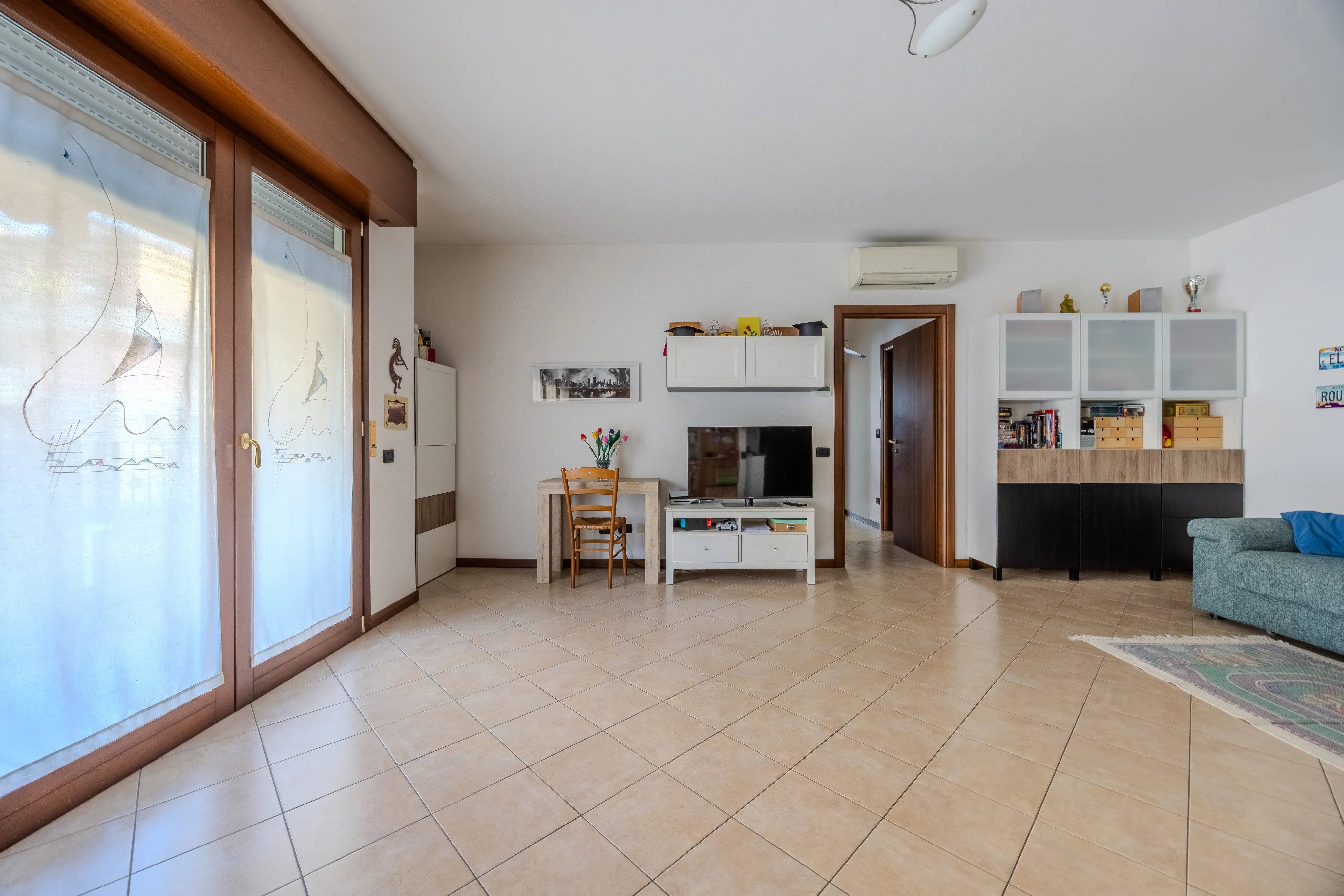 L’abitazione si apre su un’accogliente e spaziosa zona living open space, luminosa e ben distribuita, dove il soggiorno si integra perfettamente con la cucina. Questo ambiente, pensato per la convivialità, offre accesso diretto a un terrazzino vivibile, perfetto per momenti di relax all’aria aperta, già dotato di tenda da sole per garantire la massima privacy.