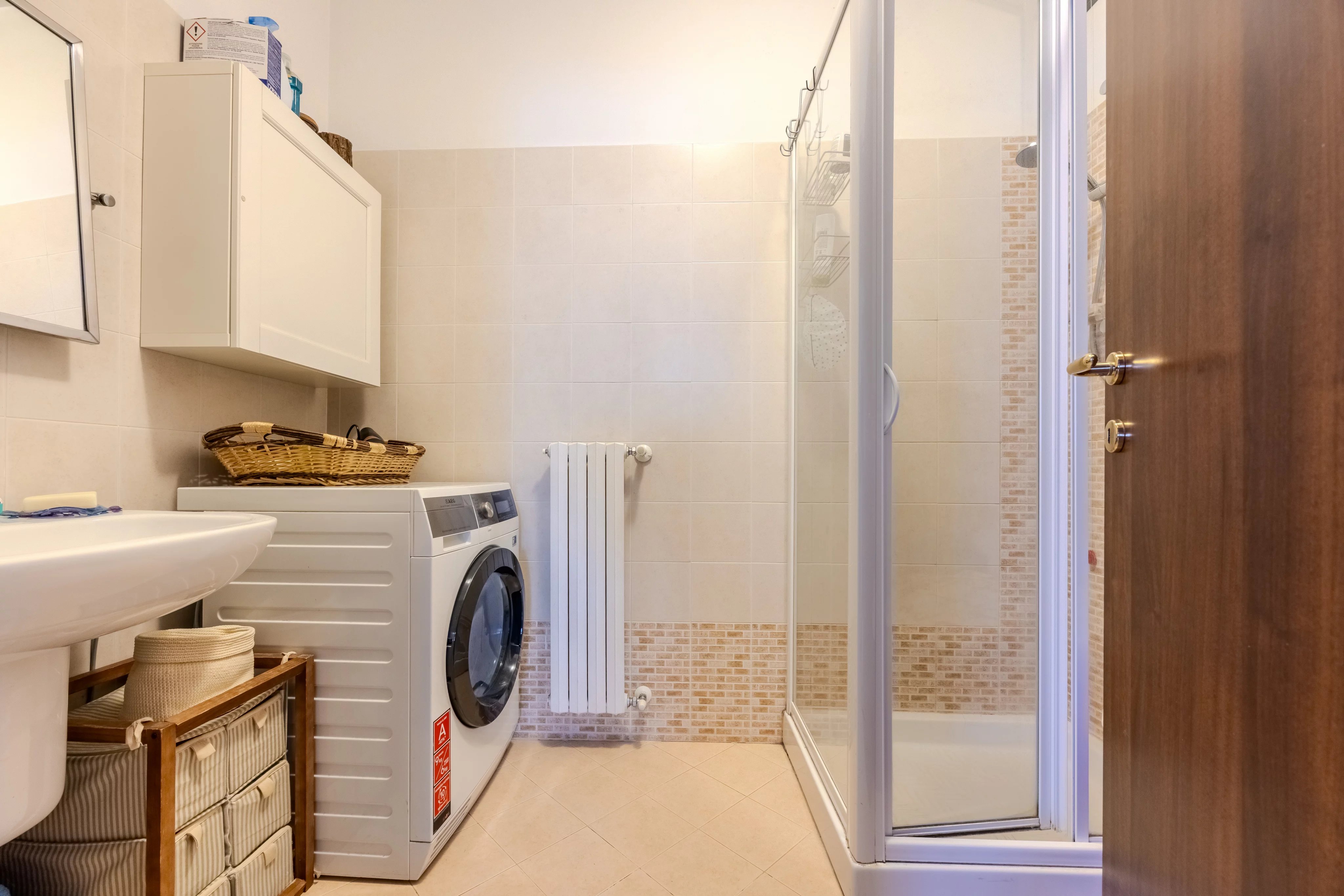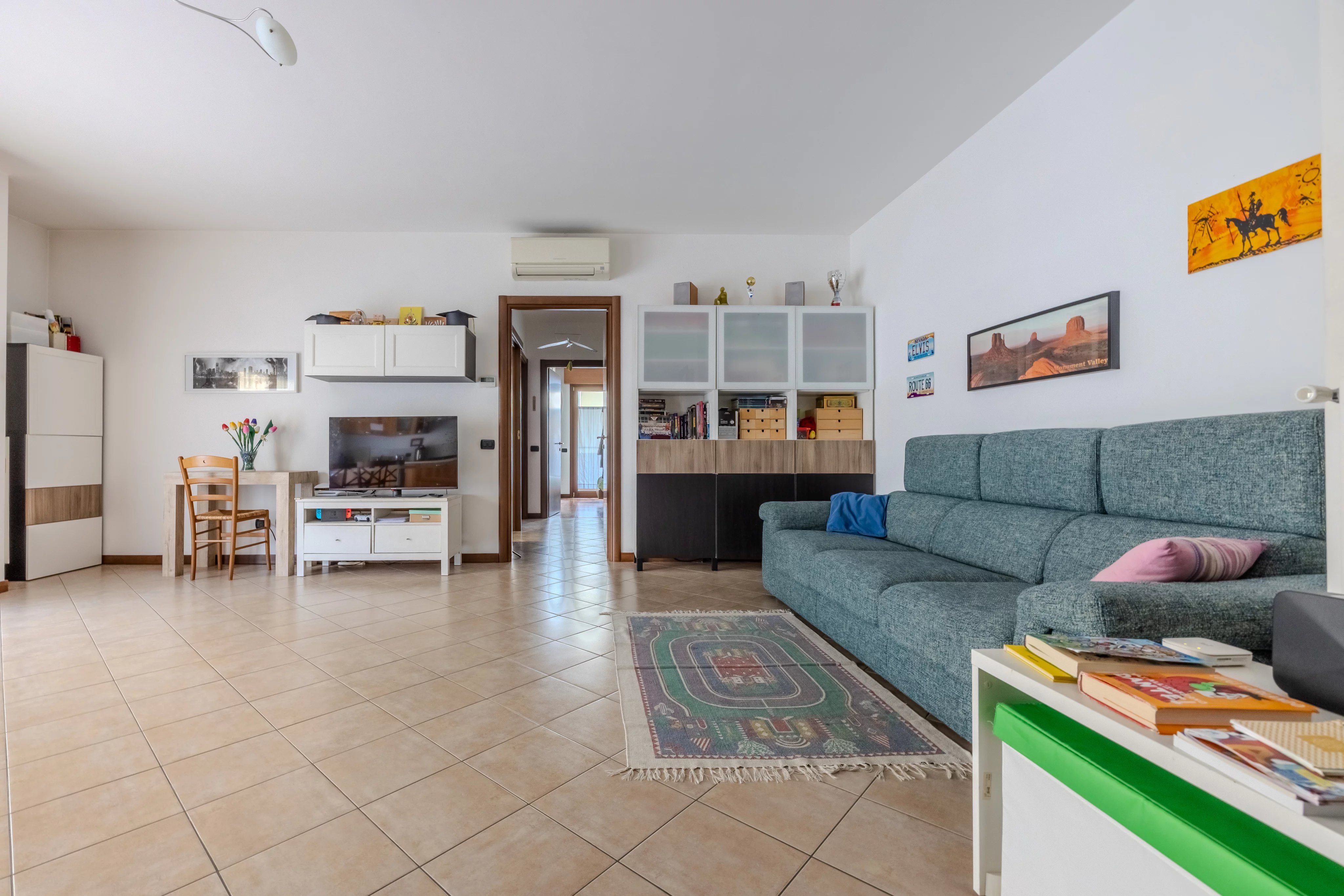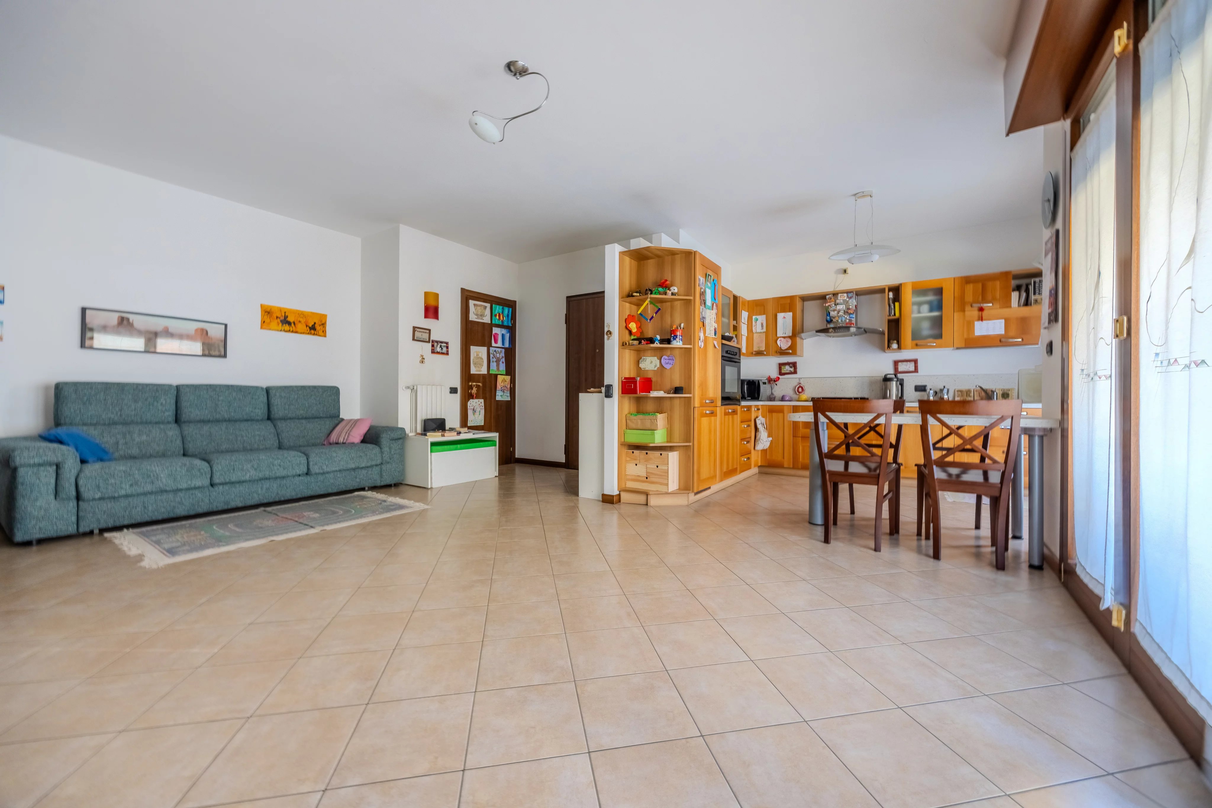L’abitazione si apre su un’accogliente e spaziosa zona living open space, luminosa e ben distribuita, dove il soggiorno si integra perfettamente con la cucina. Questo ambiente, pensato per la convivialità, offre accesso diretto a un terrazzino vivibile, perfetto per momenti di relax all’aria aperta, già dotato di tenda da sole per garantire la massima privacy.