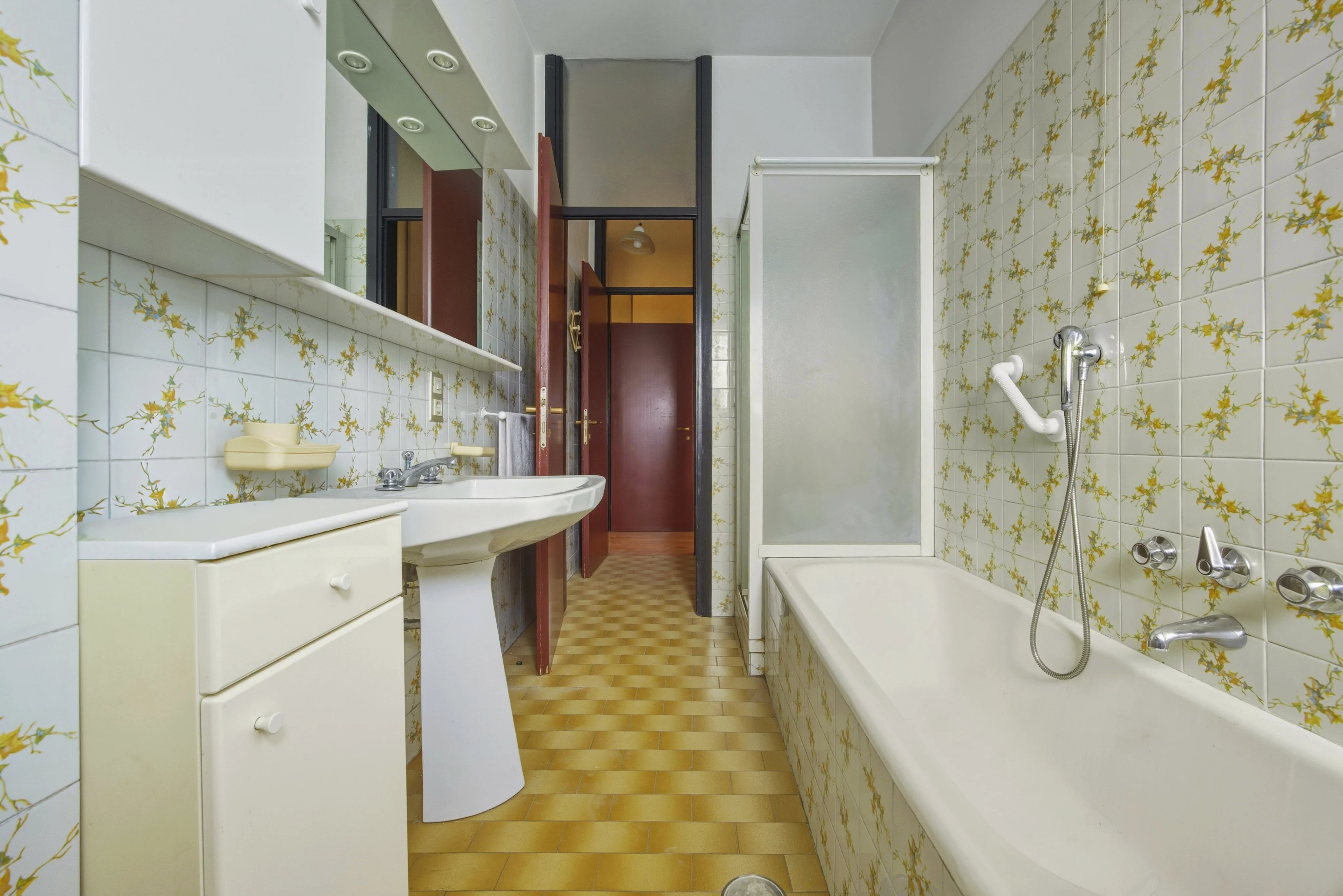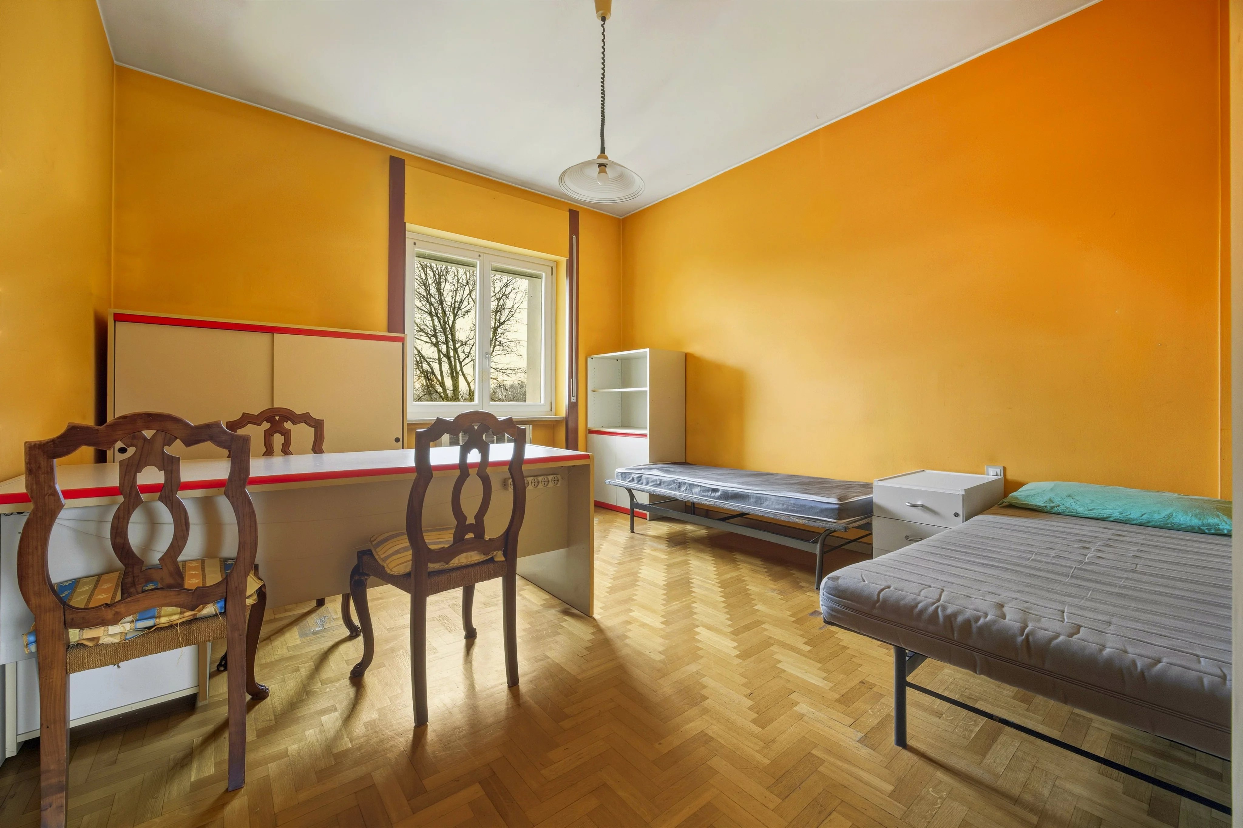 Disimpegno zona notte, due ampie camere, bagno e ripostiglio oltre a cantina.