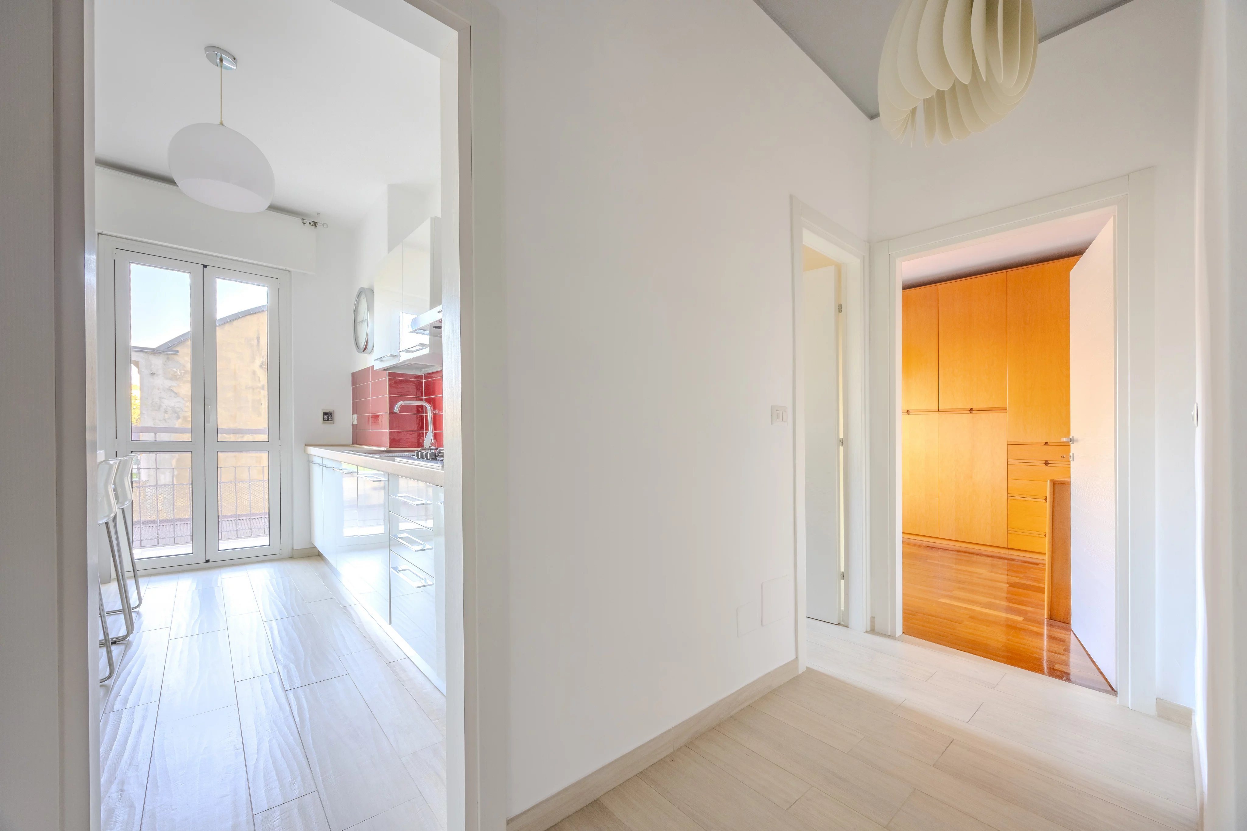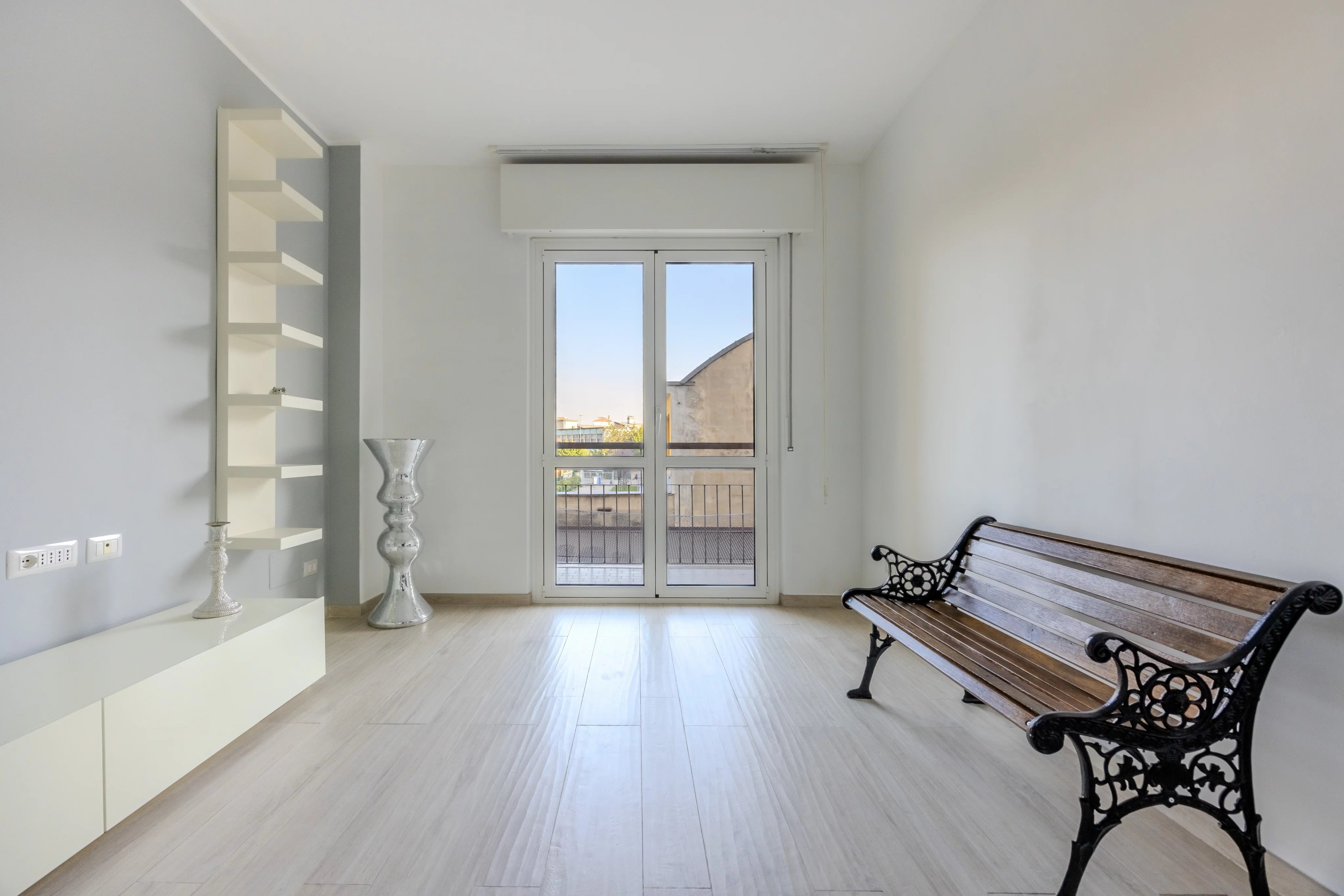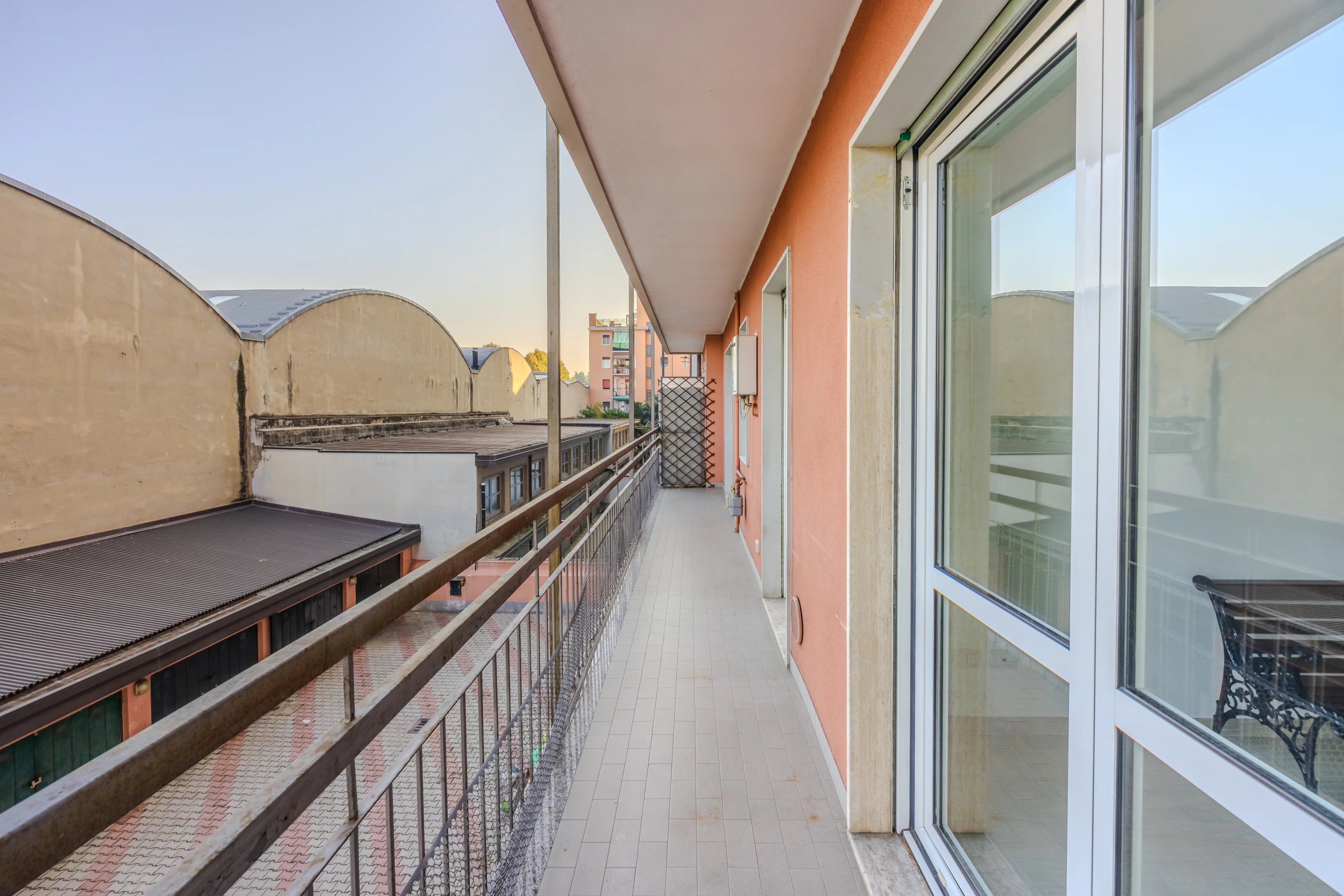Il balcone, accessibile sia dalla zona giorno che dalla camera, si affaccia su un cortile interno riservato, regalando privacy e tranquillità.