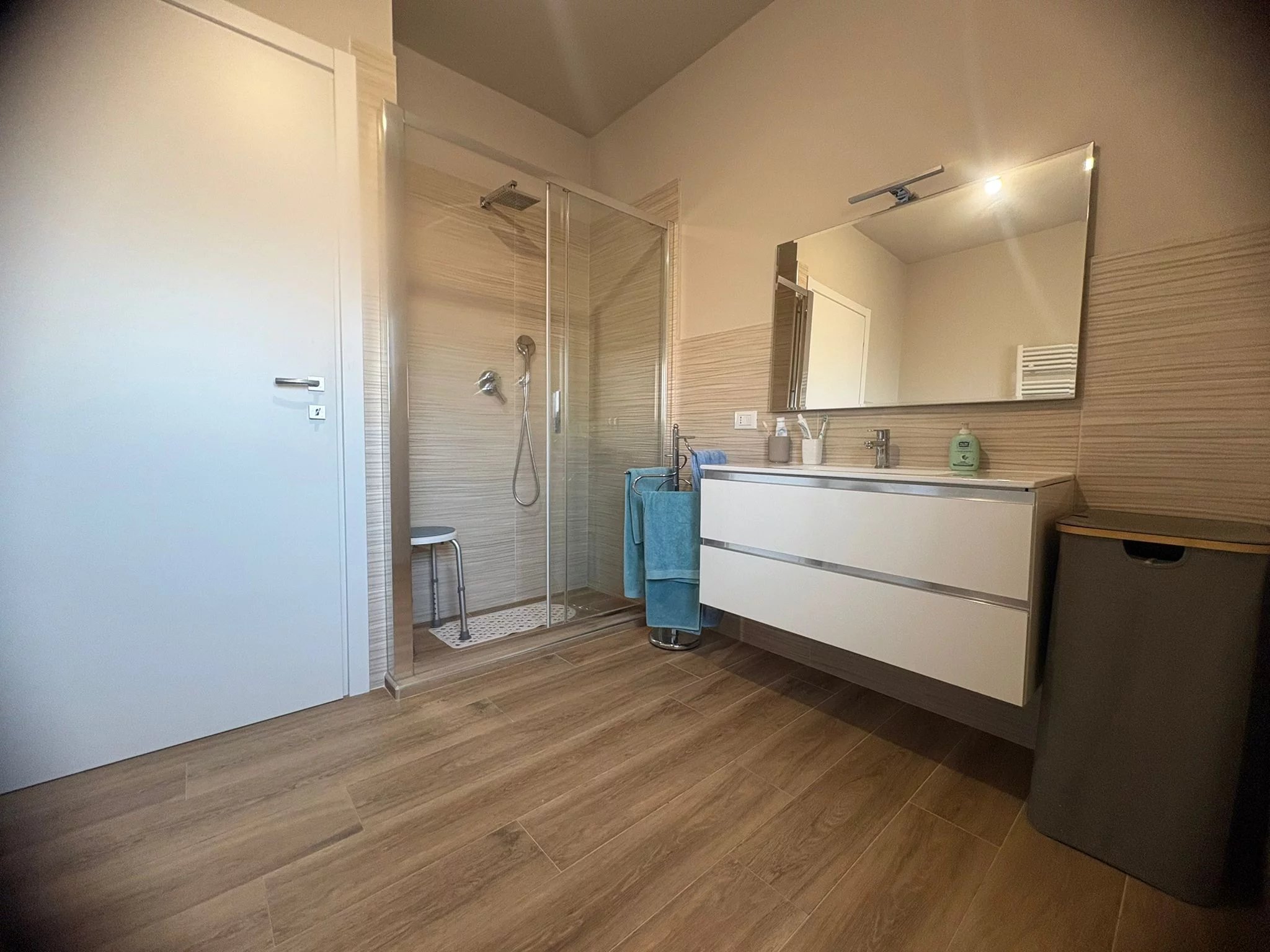 L’appartamento, arredato con gusto e pronto per essere abitato, è composto da un luminoso soggiorno con cucina a vista, balcone e ampio terrazzo di 25 mq coperto, ripostiglio, camera matrimoniale con seconda uscita sul balcone e bagno dotato di doccia.
