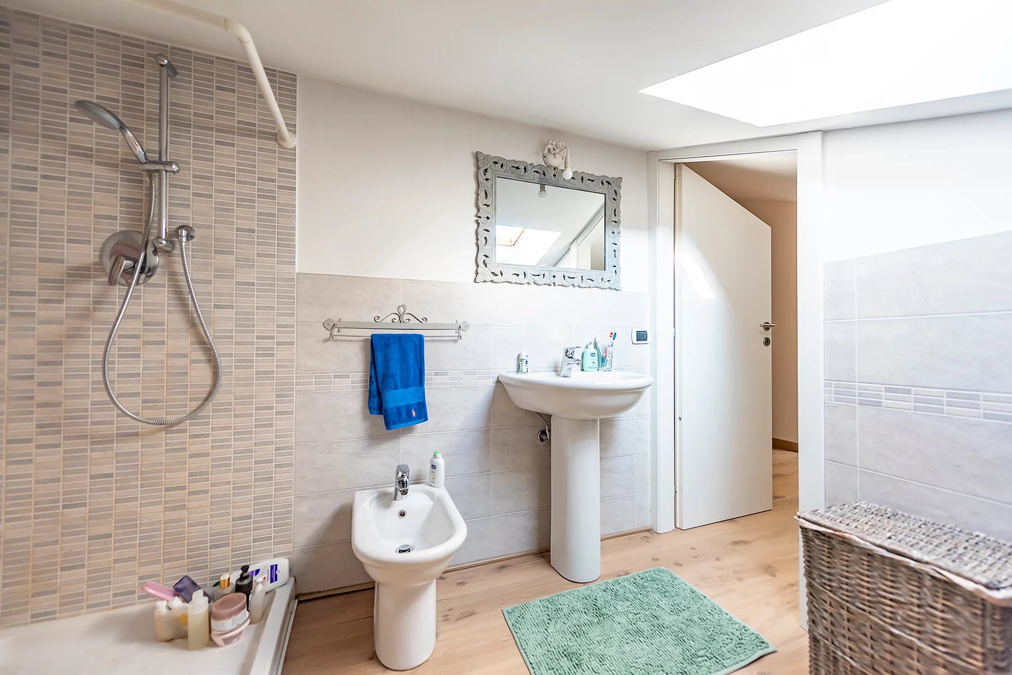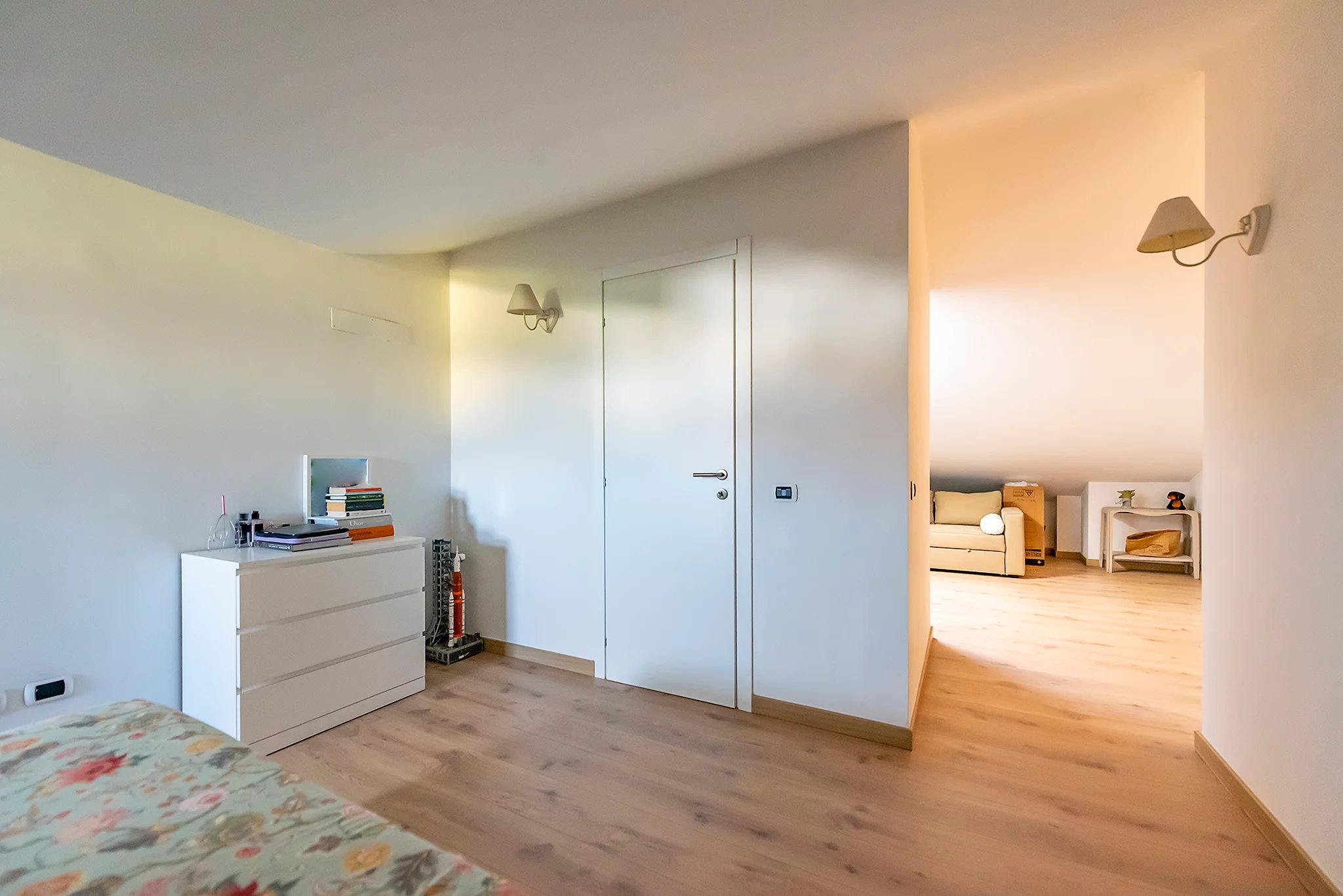 Al secondo piano, troviamo una camera da letto con cabina armadio annessa e bagno con doccia oltre ad un locale in più che si presta a un'altra camera o uno studio/locale hobby.