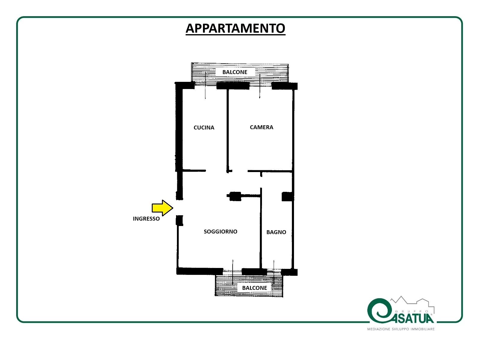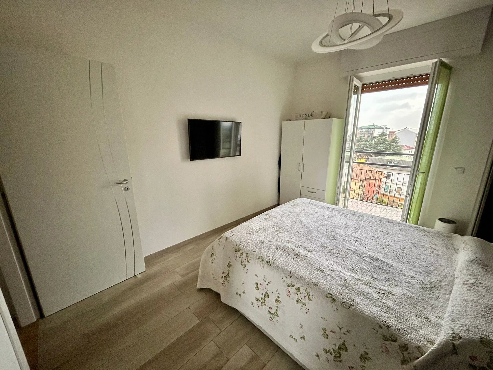 L’ingresso è diretto nel soggiorno, impreziosito da un balcone che apre la vista verso l’esterno con discrezione e armonia. La cucina abitabile, luminosa e ben organizzata, si affaccia su un secondo balcone condiviso con la camera matrimoniale, uno spazio riservato e confortevole. Il disimpegno introduce al bagno, rinnovato con materiali moderni e dotato di una pratica zona lavanderia.