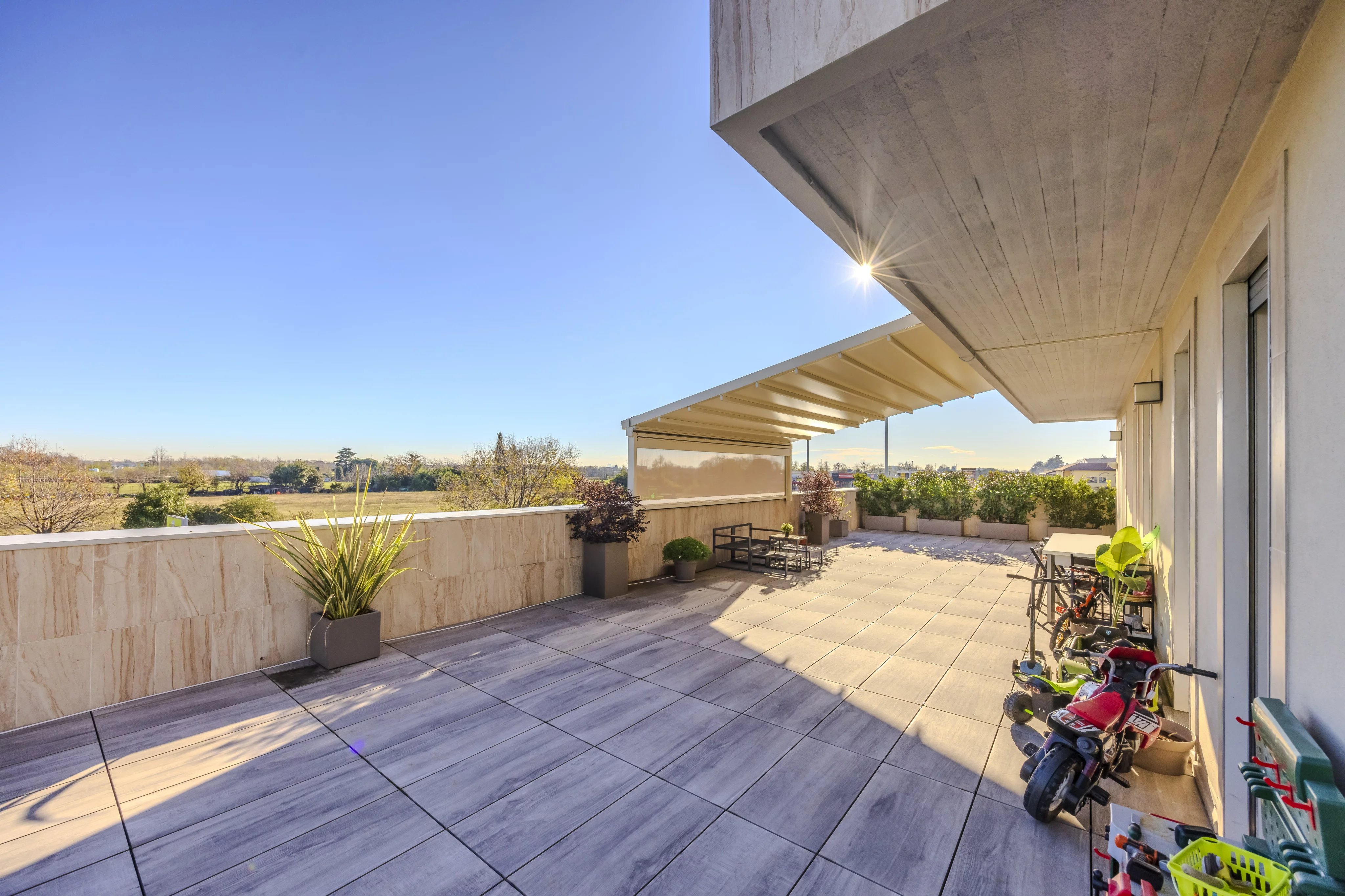 L’alloggio è caratterizzato da un ampio ingresso, soggiorno luminoso con angolo cottura, due spaziose camere da letto, studio utilizzabile come terza camera, un ripostiglio/guardaroba che all’occorrenza può essere trasformato in un ulteriore studio, oltre a un terrazzo vivibile. Terrazzo principale di 165 mq, con accesso diretto dalla zona giorno e da entrambe le camere, perfetto per pranzi all’aperto e momenti di relax, ideale per chi ama gli spazi esterni e desidera una vera estensione dell’abitazione.
