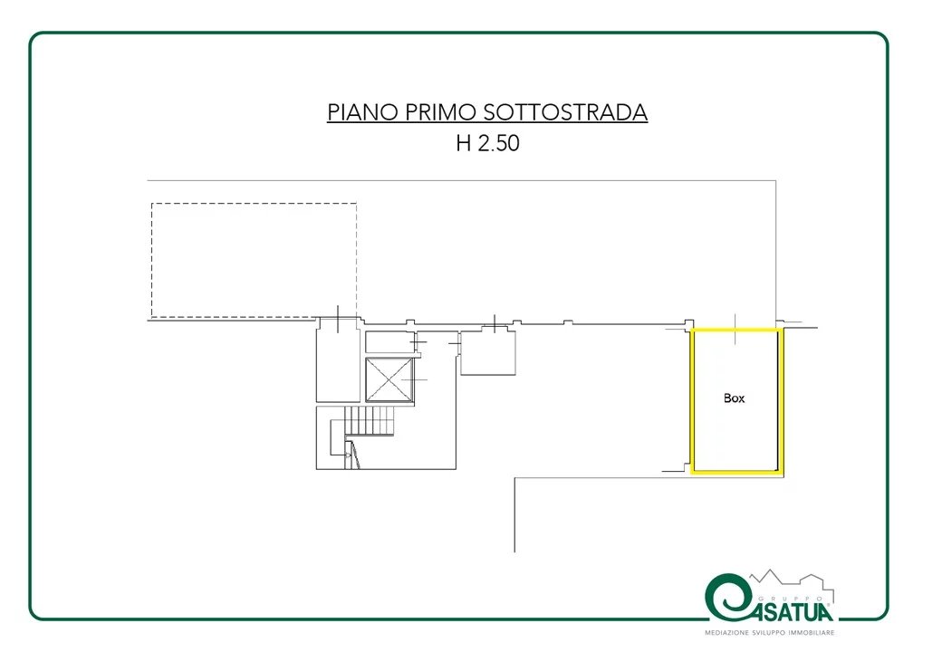 Al piano interrato è presente un ampio box di 25 mq dotato di basculante sezionale automatica, al costo di € 20.000,00.