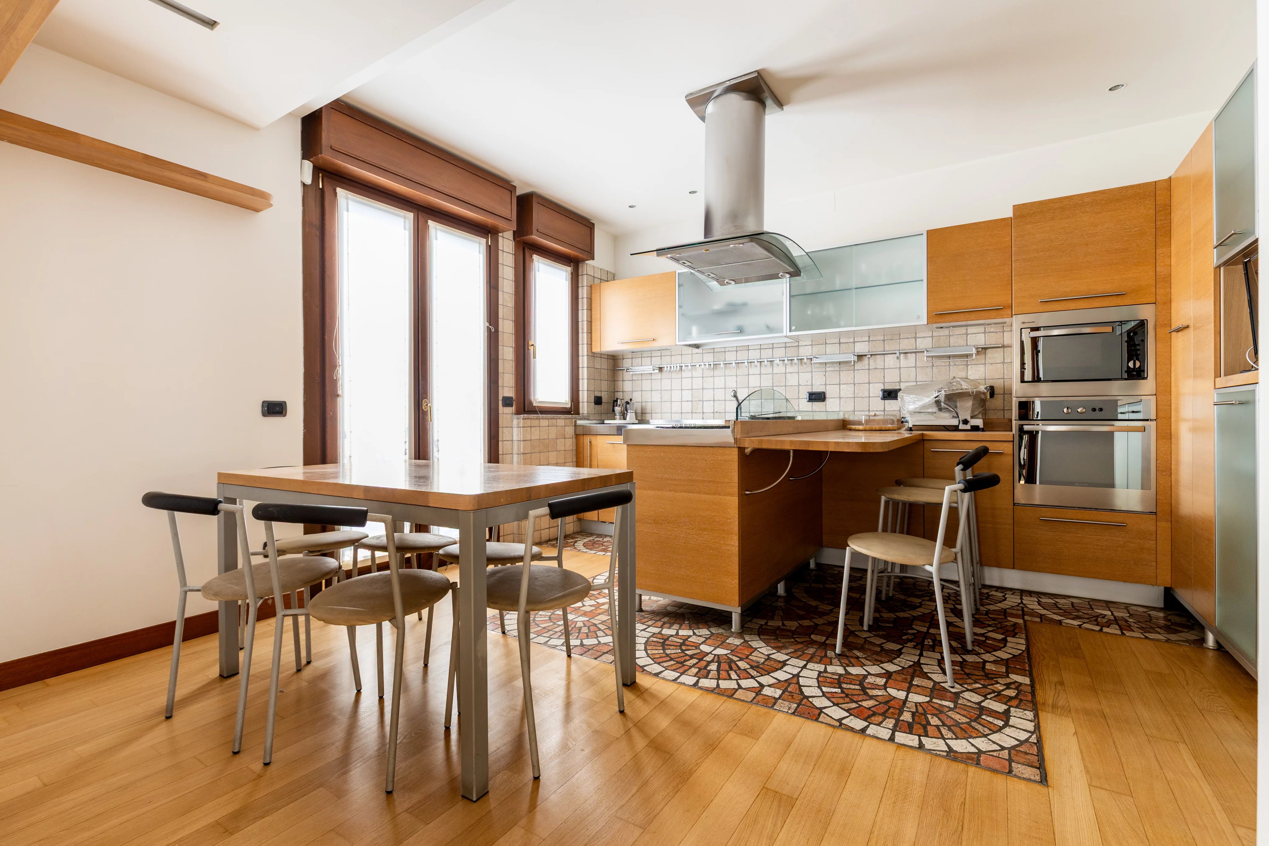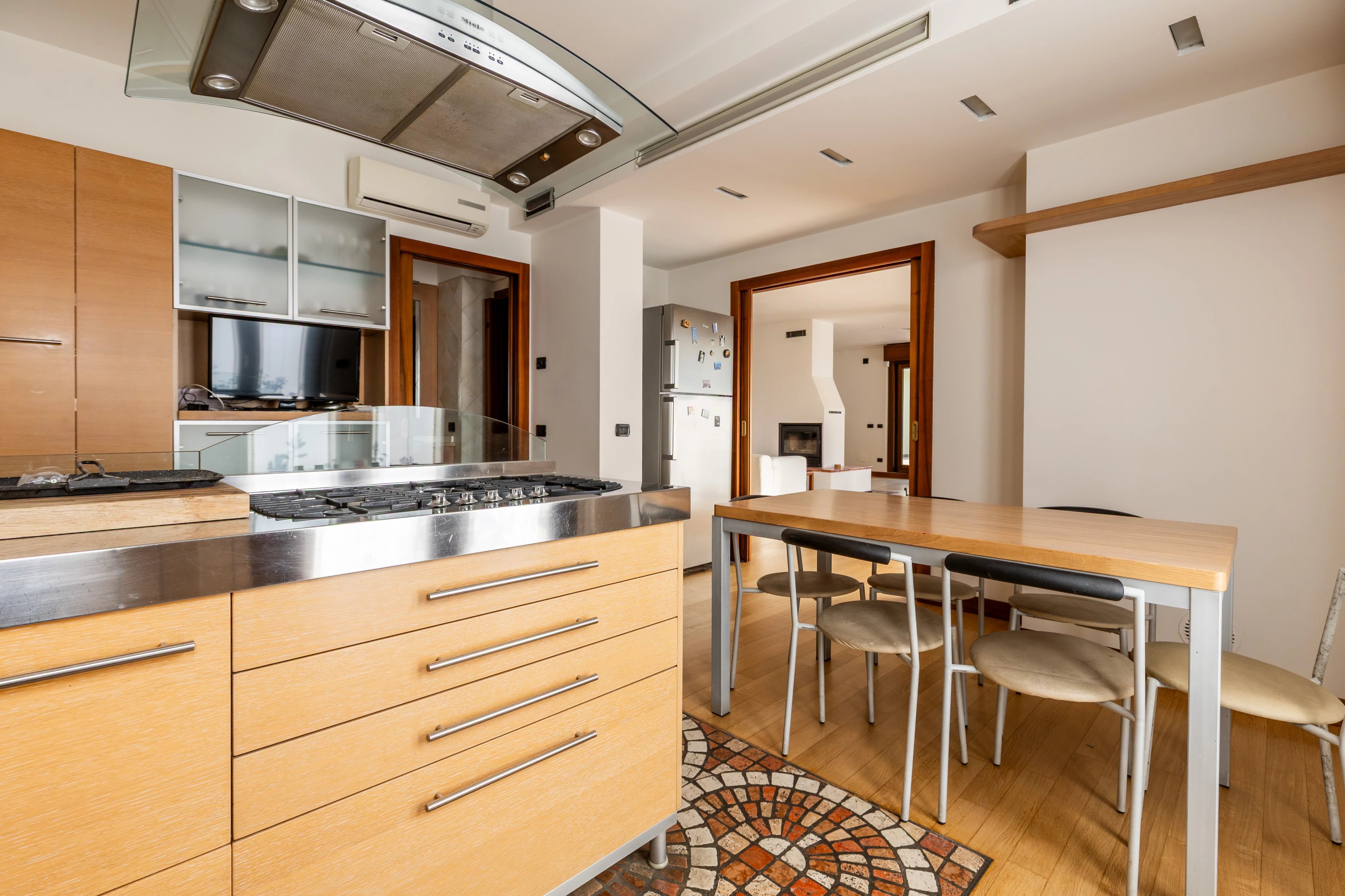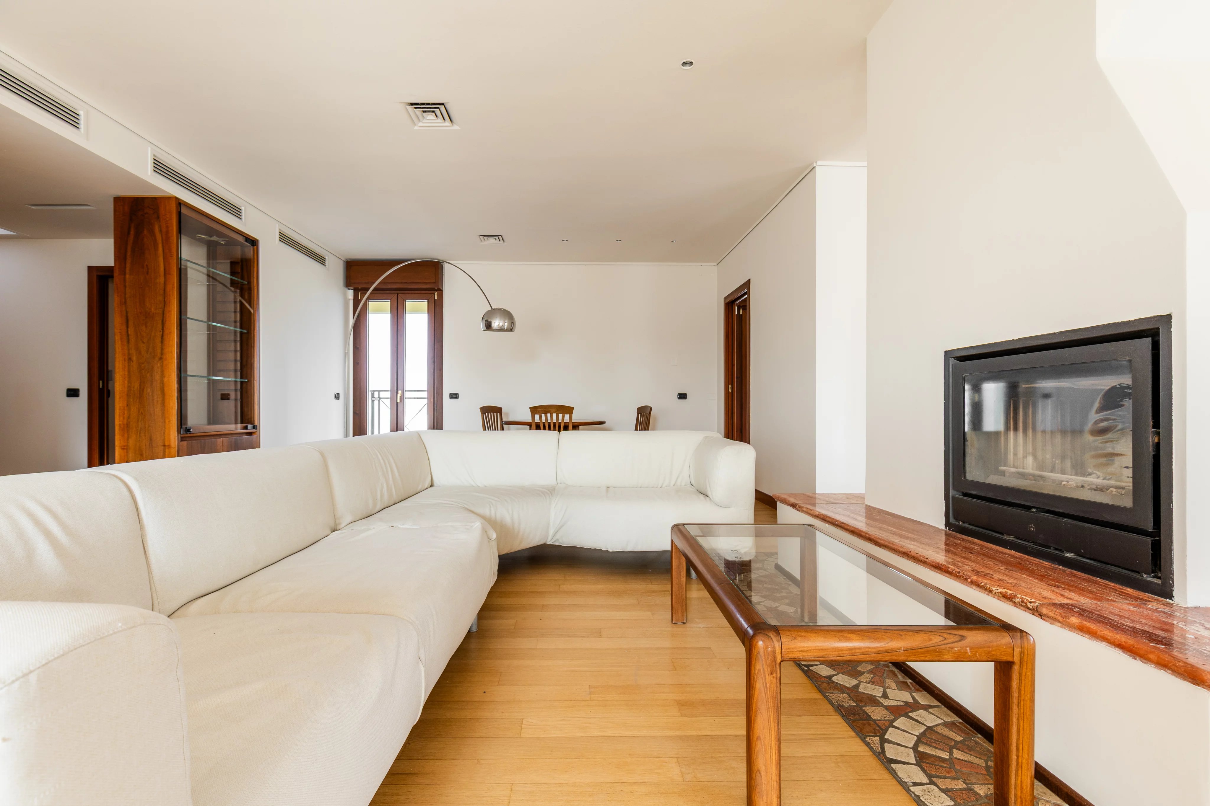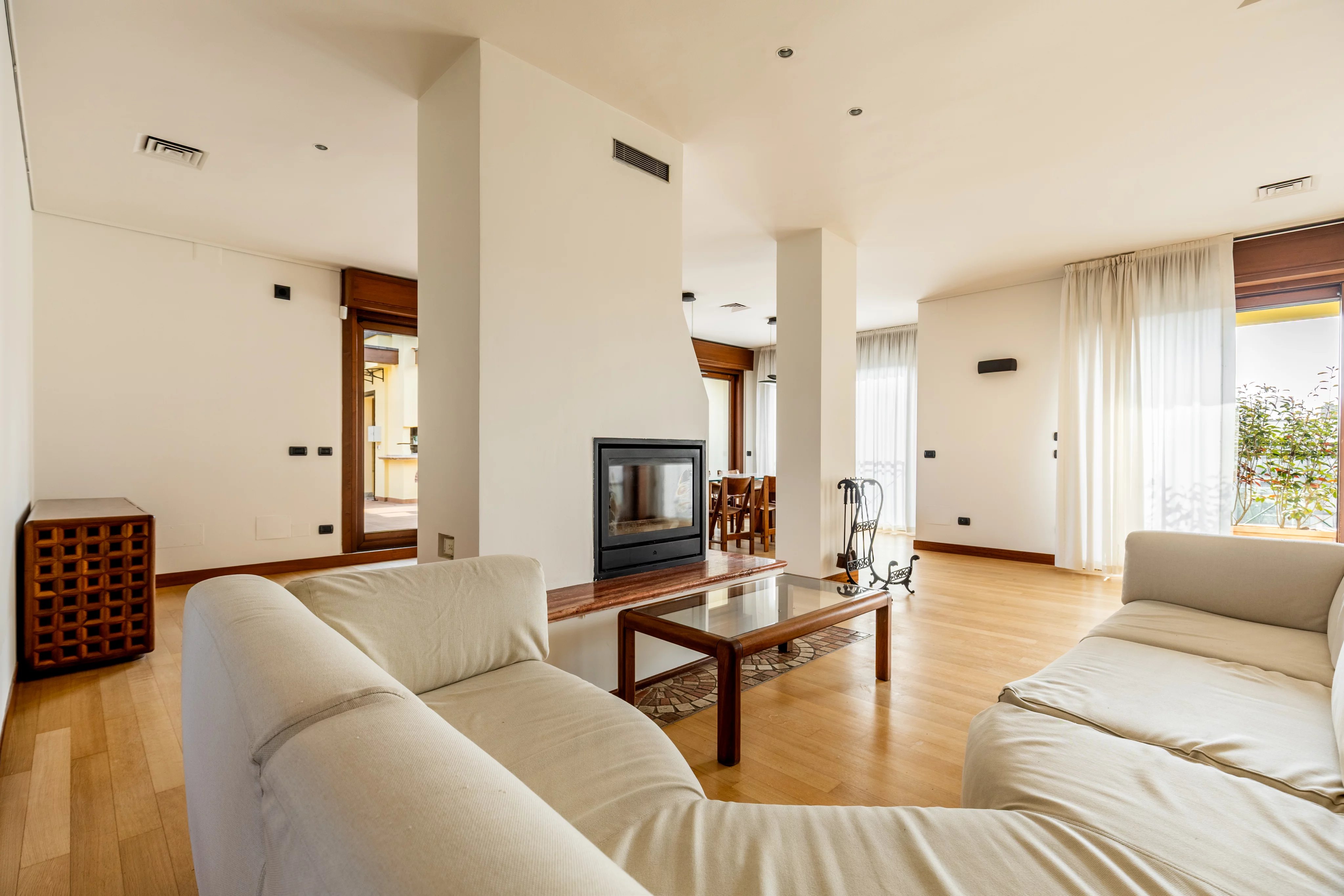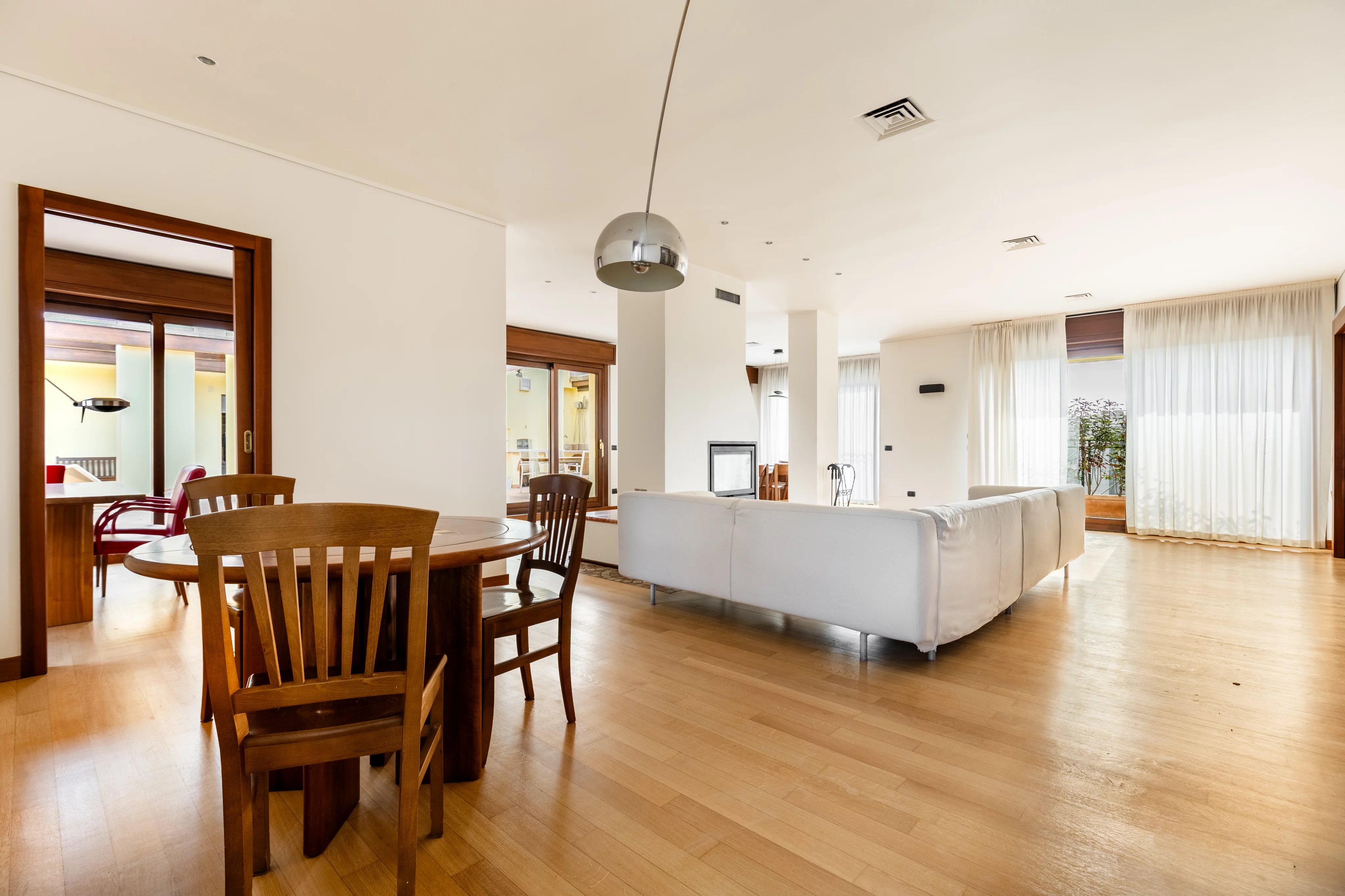 L’abitazione si distingue per ampie metrature, straordinaria luminosità e una distribuzione degli spazi perfettamente studiata. Il cuore della casa è il magnifico soggiorno doppio con camino, uno spazio di grande charme ideale per accogliere ospiti o vivere momenti di relax in un’atmosfera elegante e raffinata. Accanto si sviluppa una spaziosa cucina abitabile, pensata per coniugare funzionalità e convivialità.