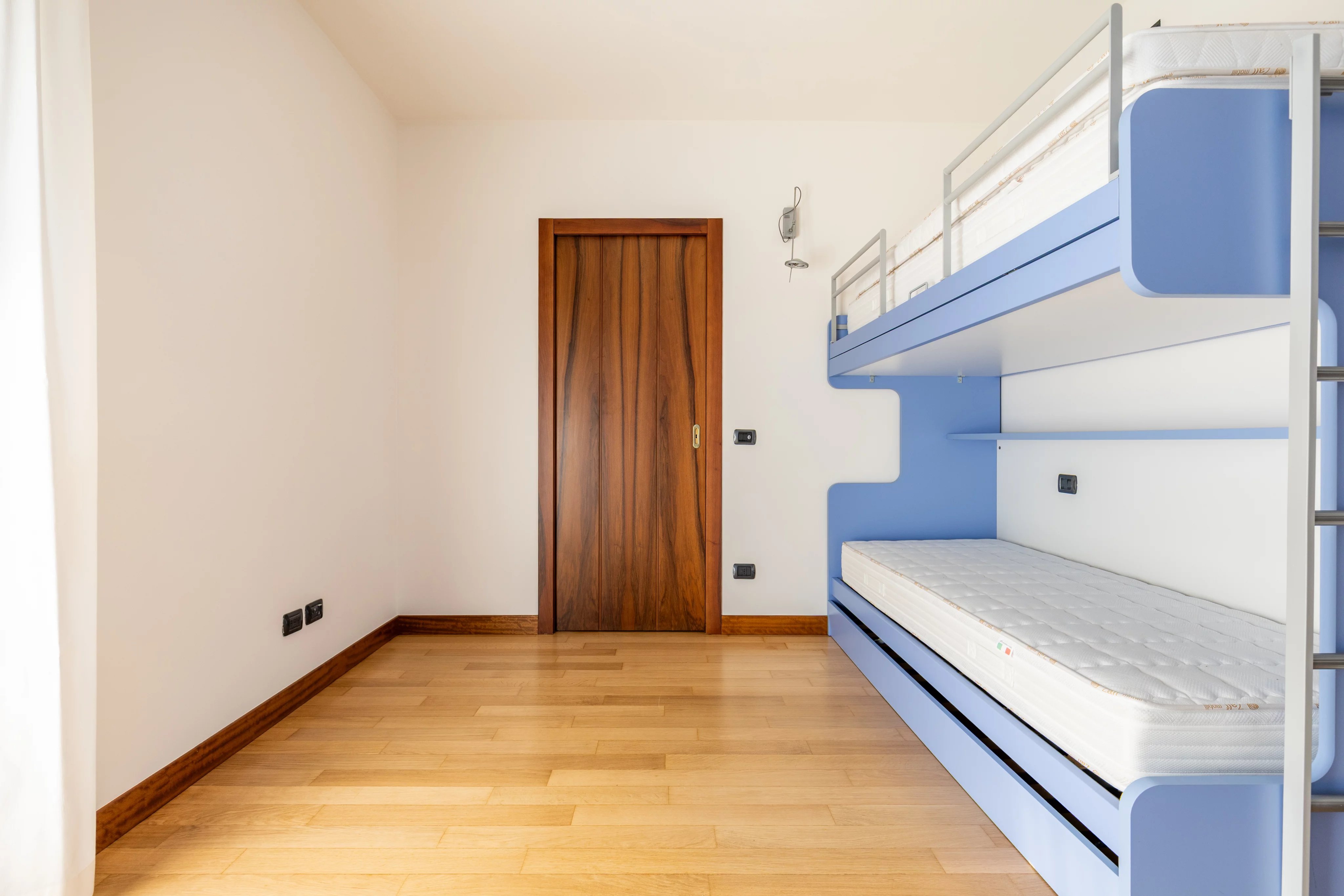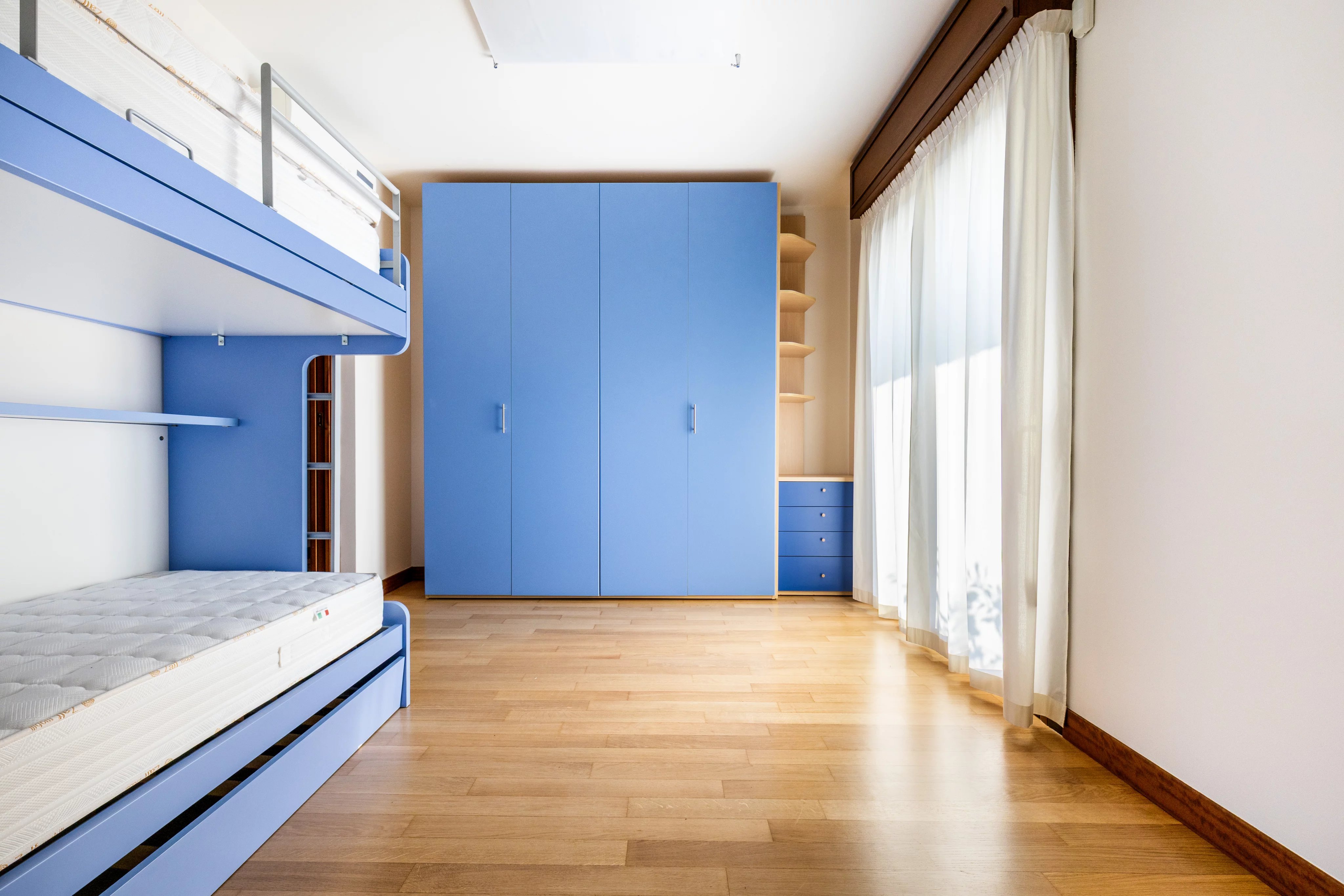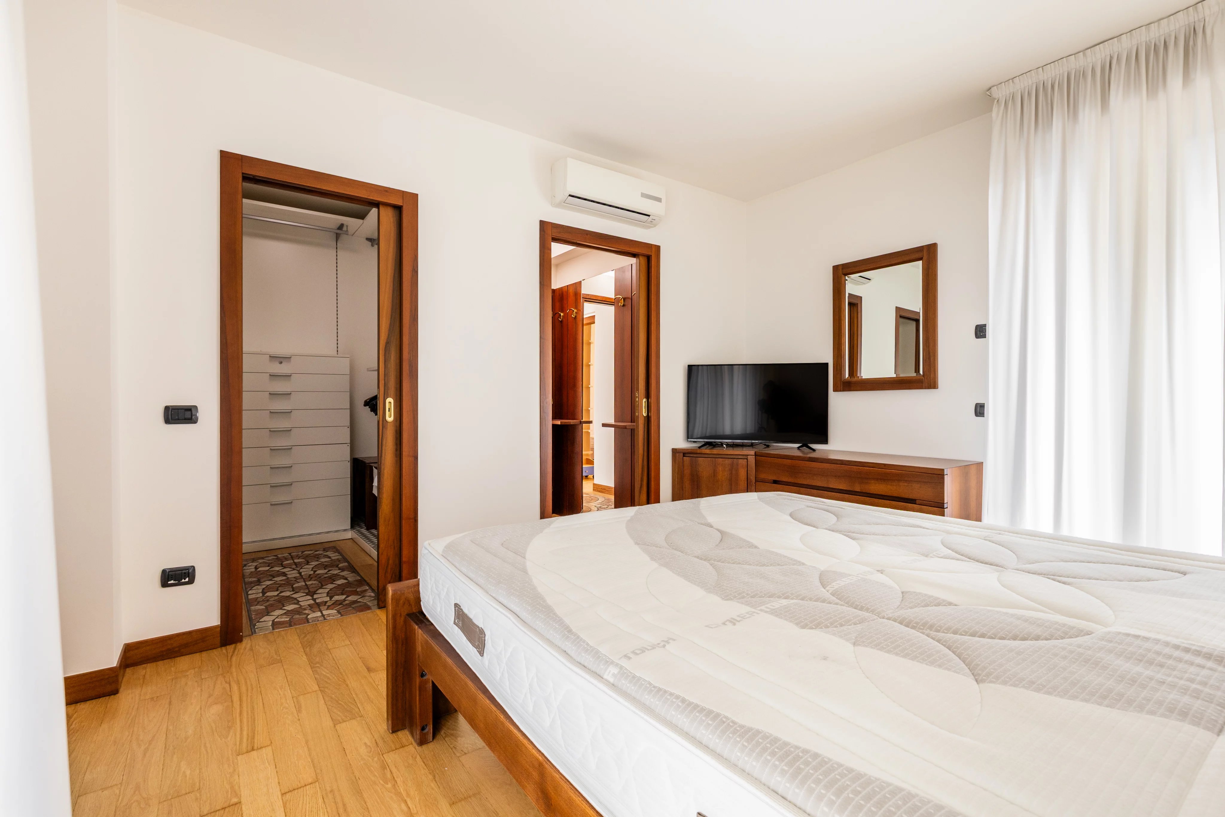 La zona notte è composta da tre camere da letto, tutte con bagno en suite e balcone privato, offrendo massimo comfort e indipendenza. La suite padronale è impreziosita da una cabina armadio dedicata. Completano l’appartamento uno studio, una lavanderia e un bagno di servizio.