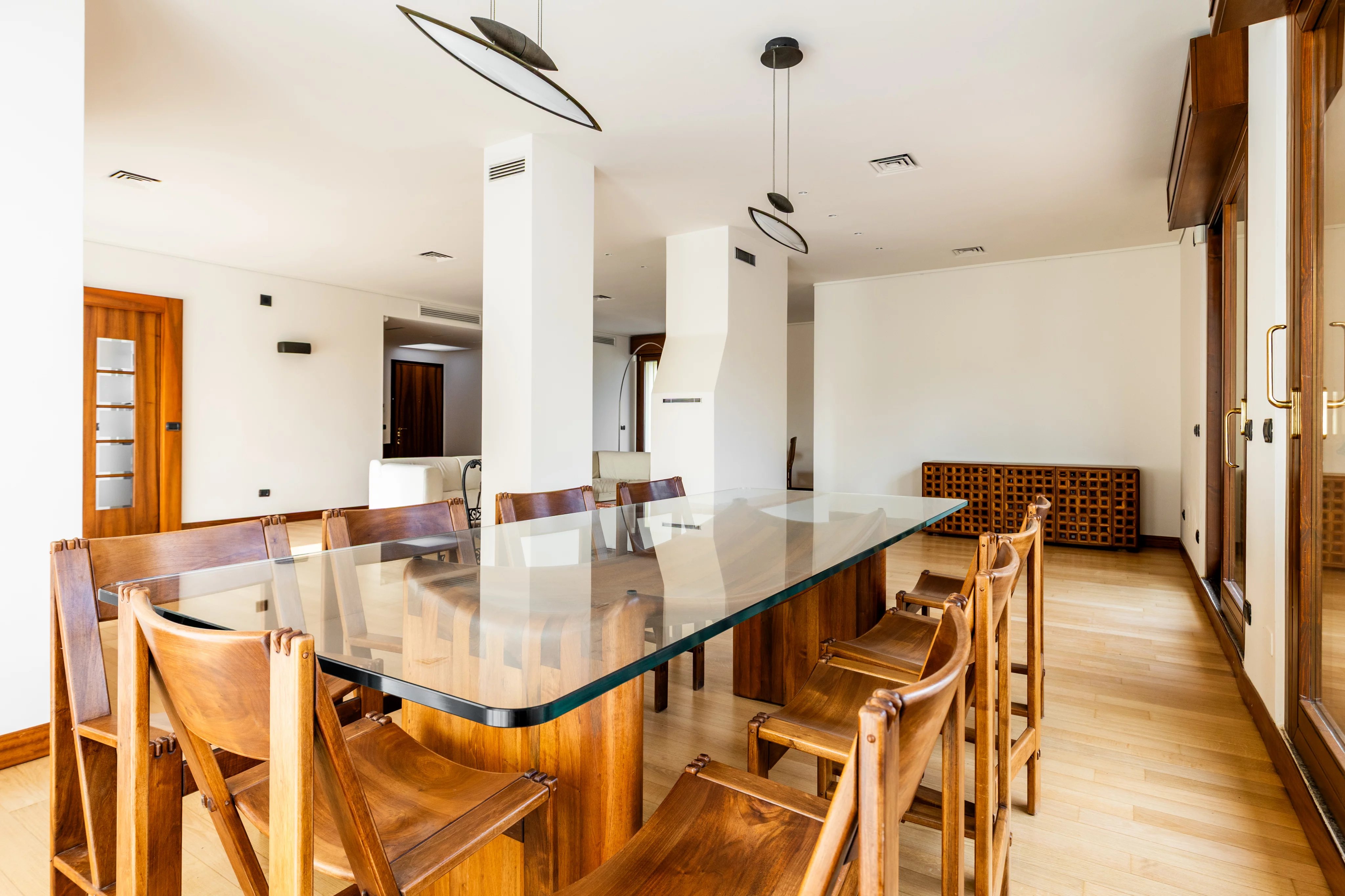 L’immobile viene proposto completamente arredato con splendidi mobili di design firmati Giuseppe Rivadossi, che conferiscono agli ambienti un carattere unico, caldo e sofisticato.