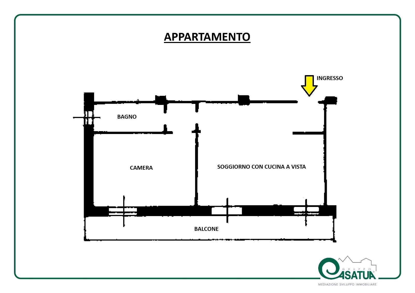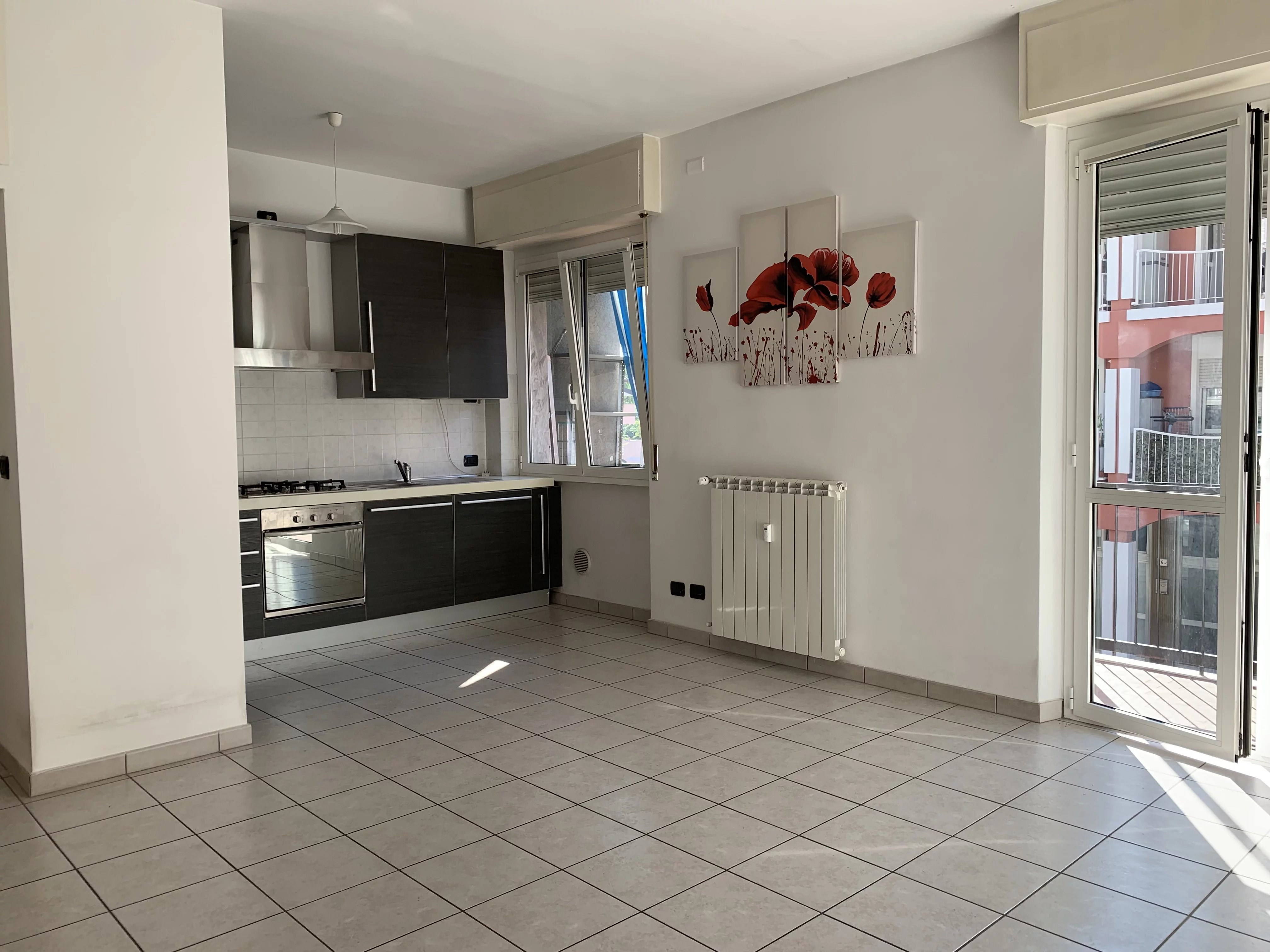 L’ingresso conduce a una spaziosa zona giorno con cucina a vista, impreziosita dall’affaccio diretto sulla balconata, ideale per chi cerca un ambiente moderno e funzionale. Un pratico disimpegno introduce al bagno finestrato e alla camera matrimoniale, ampia e ben organizzata.