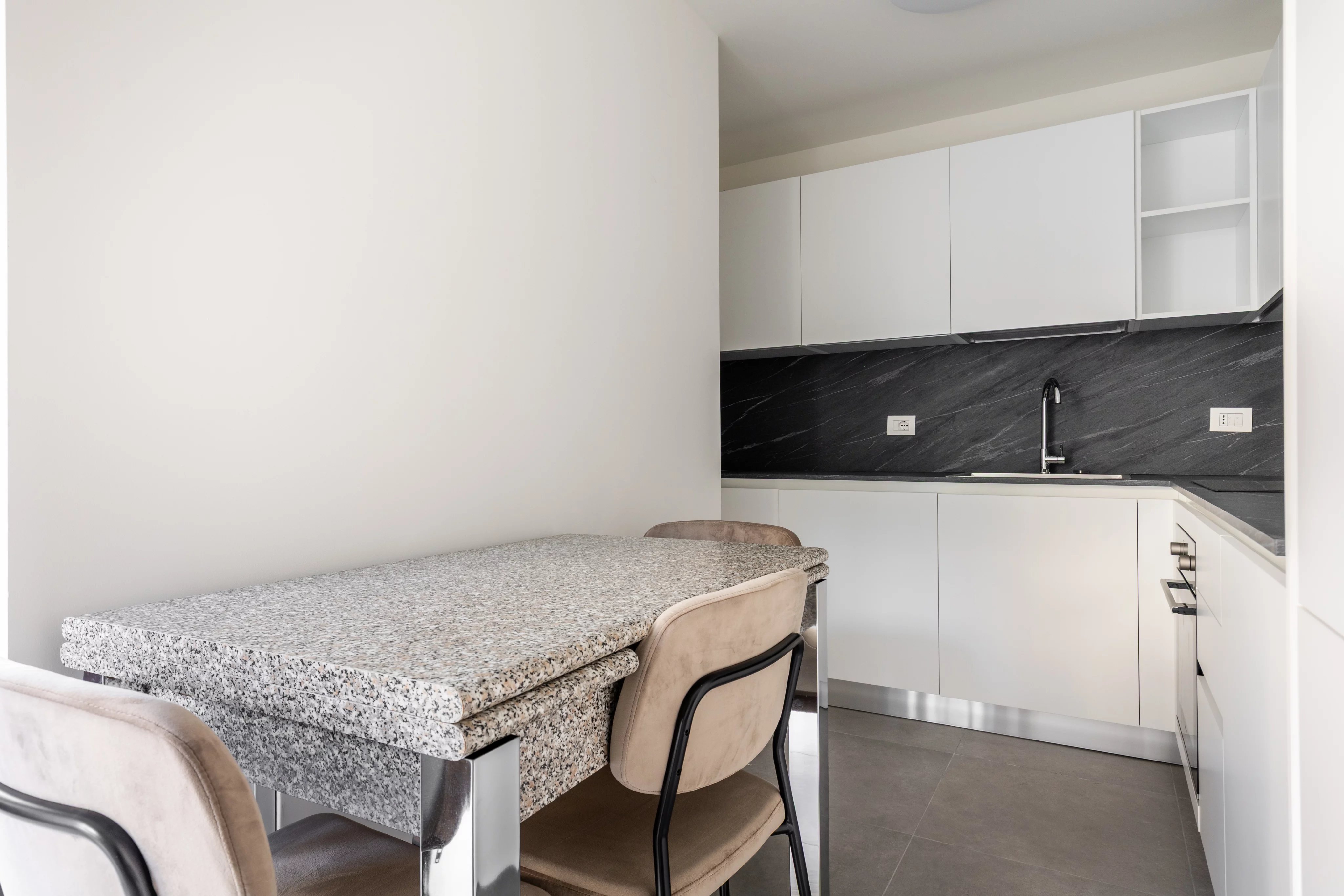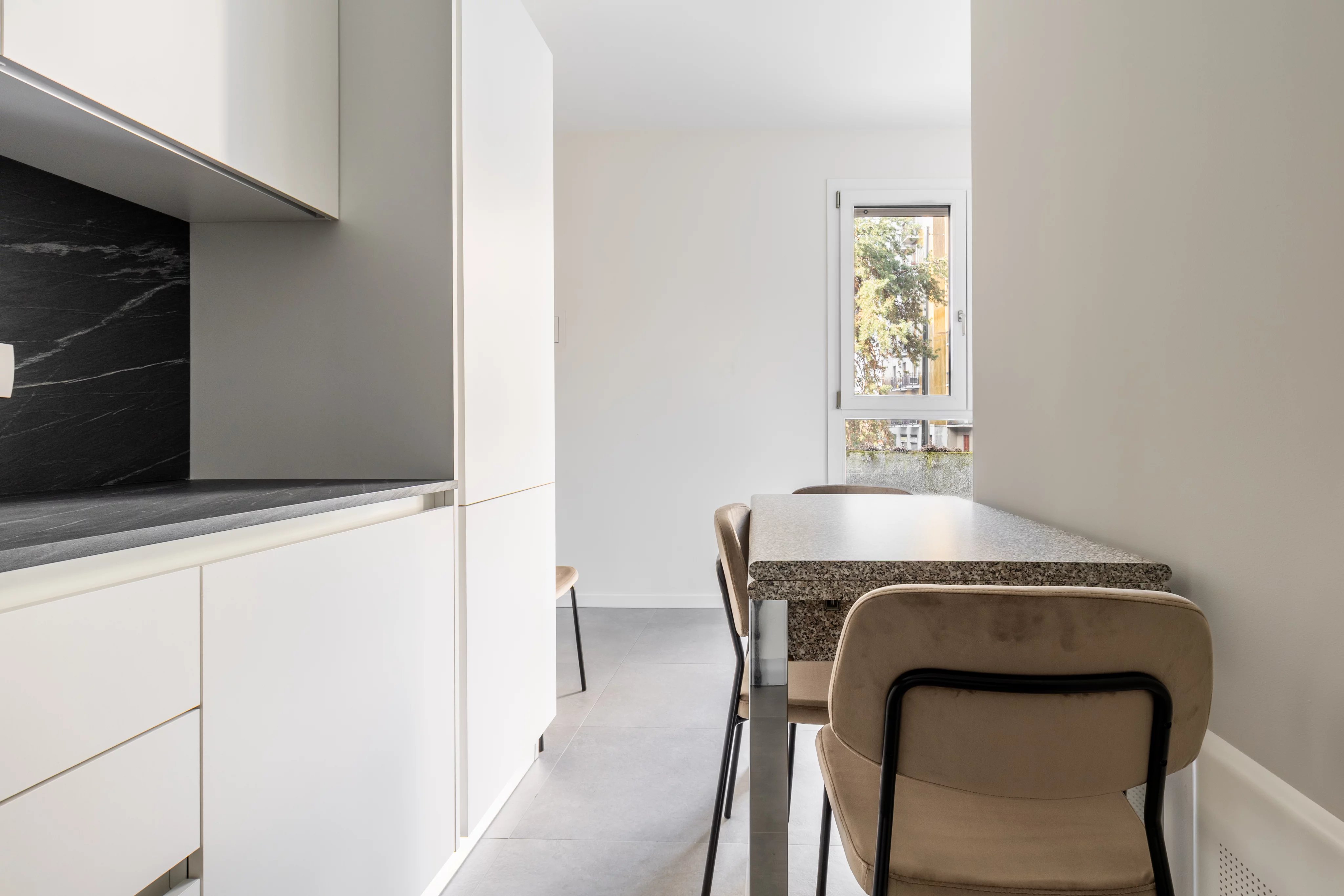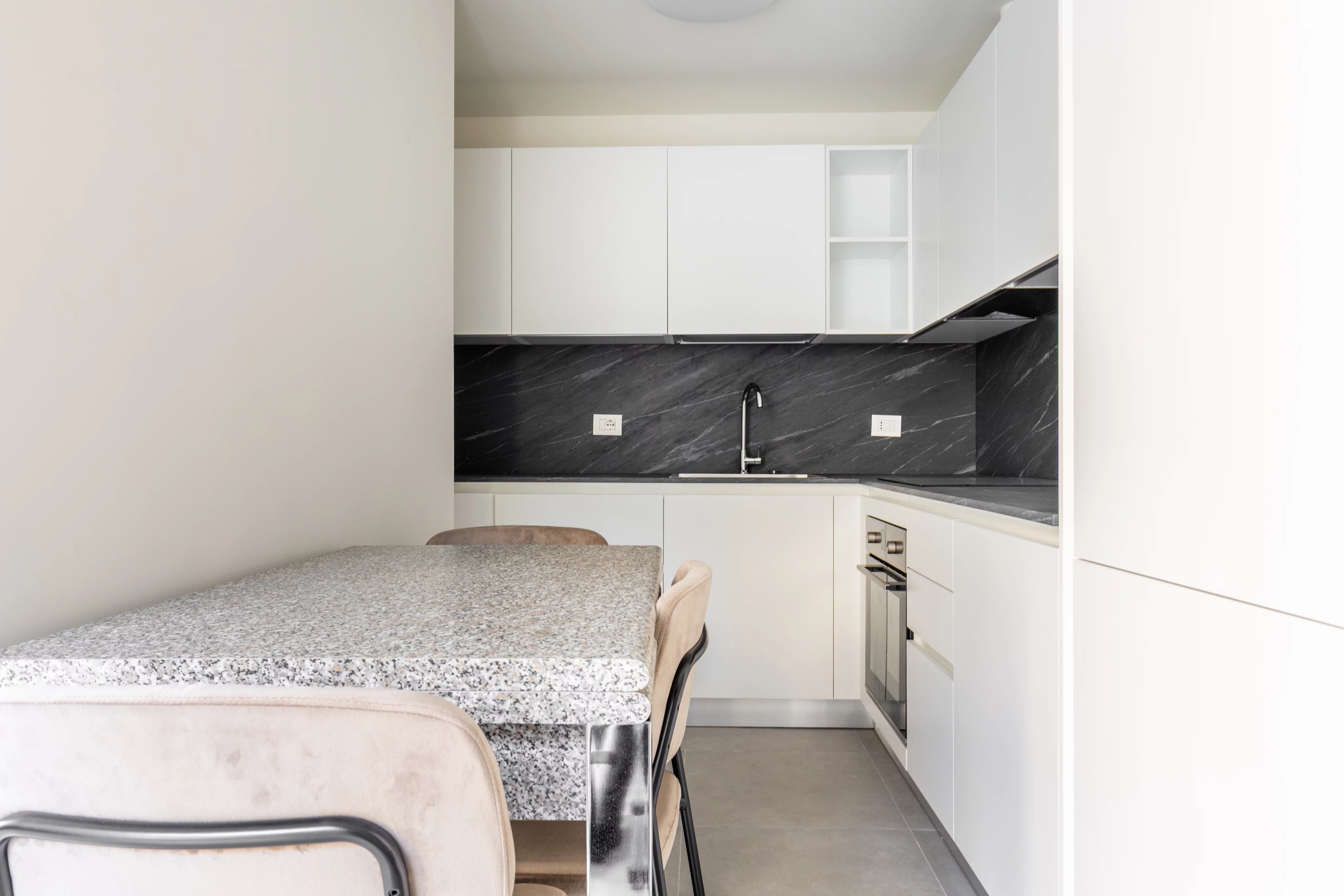 L’arredo, scelto con cura e composto da elementi di ottima fattura, è incluso e valorizza ulteriormente la praticità della soluzione.