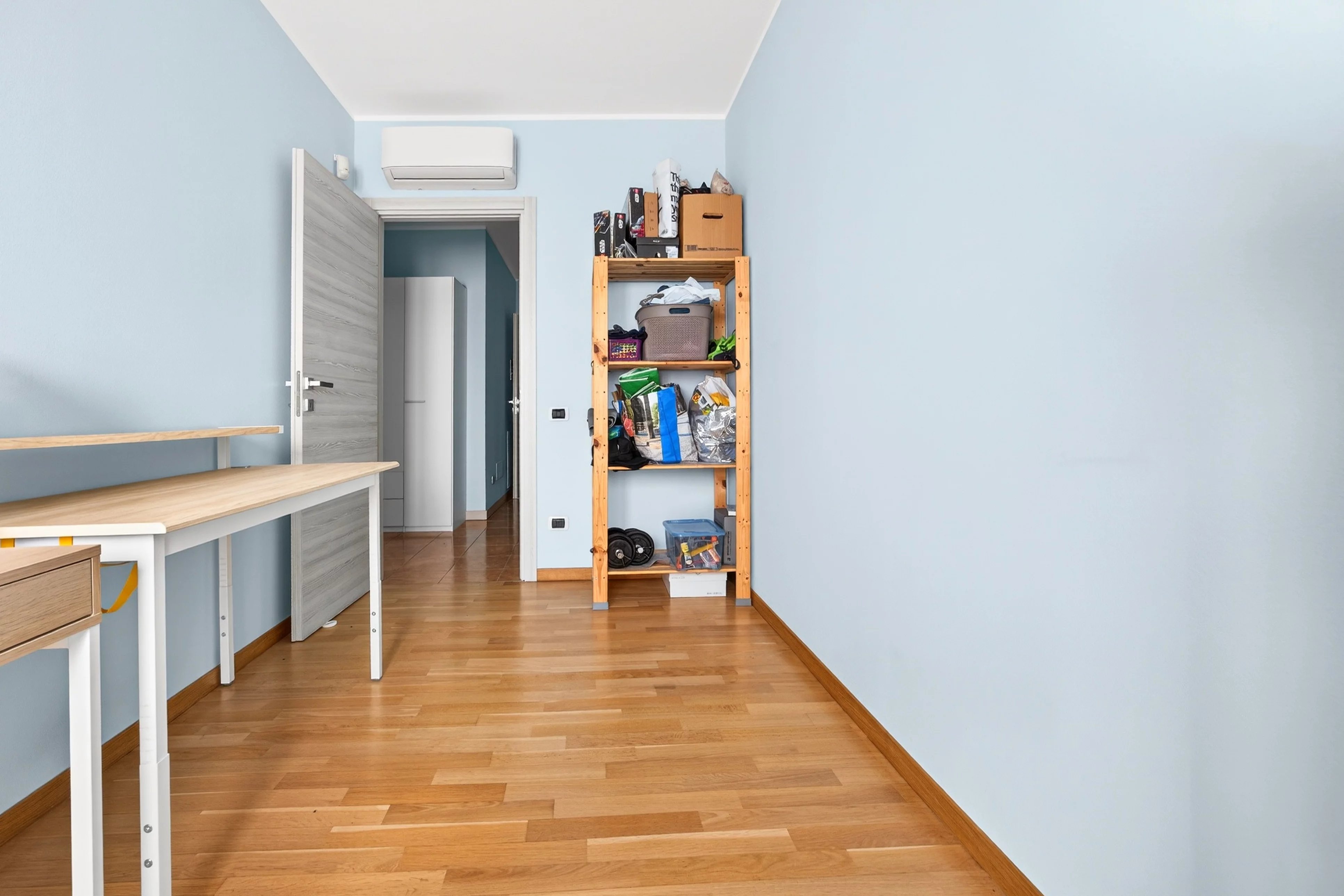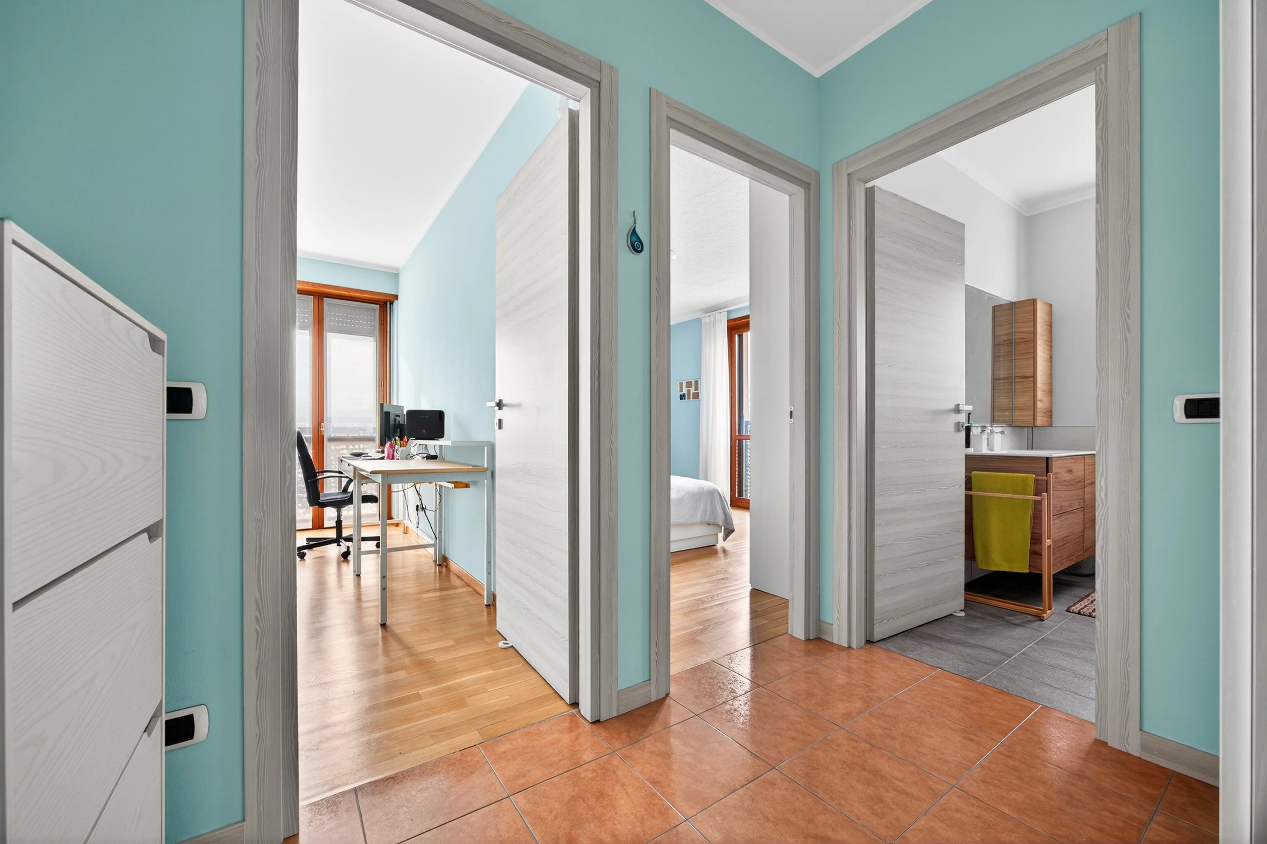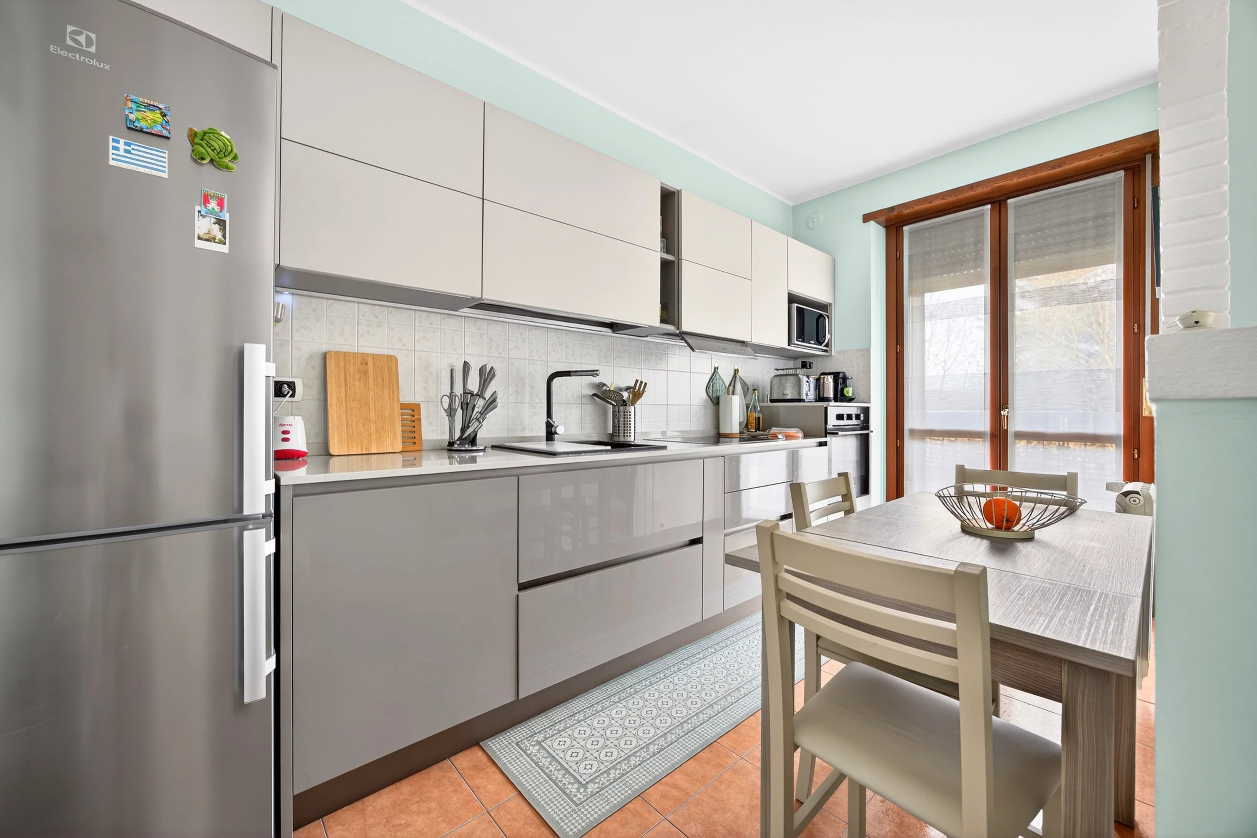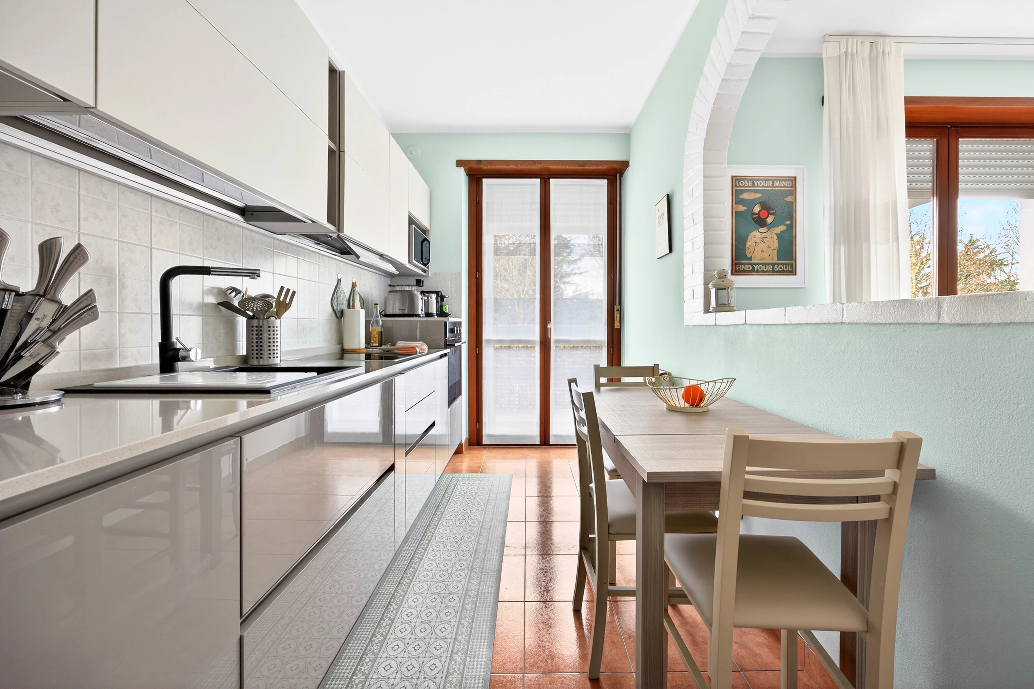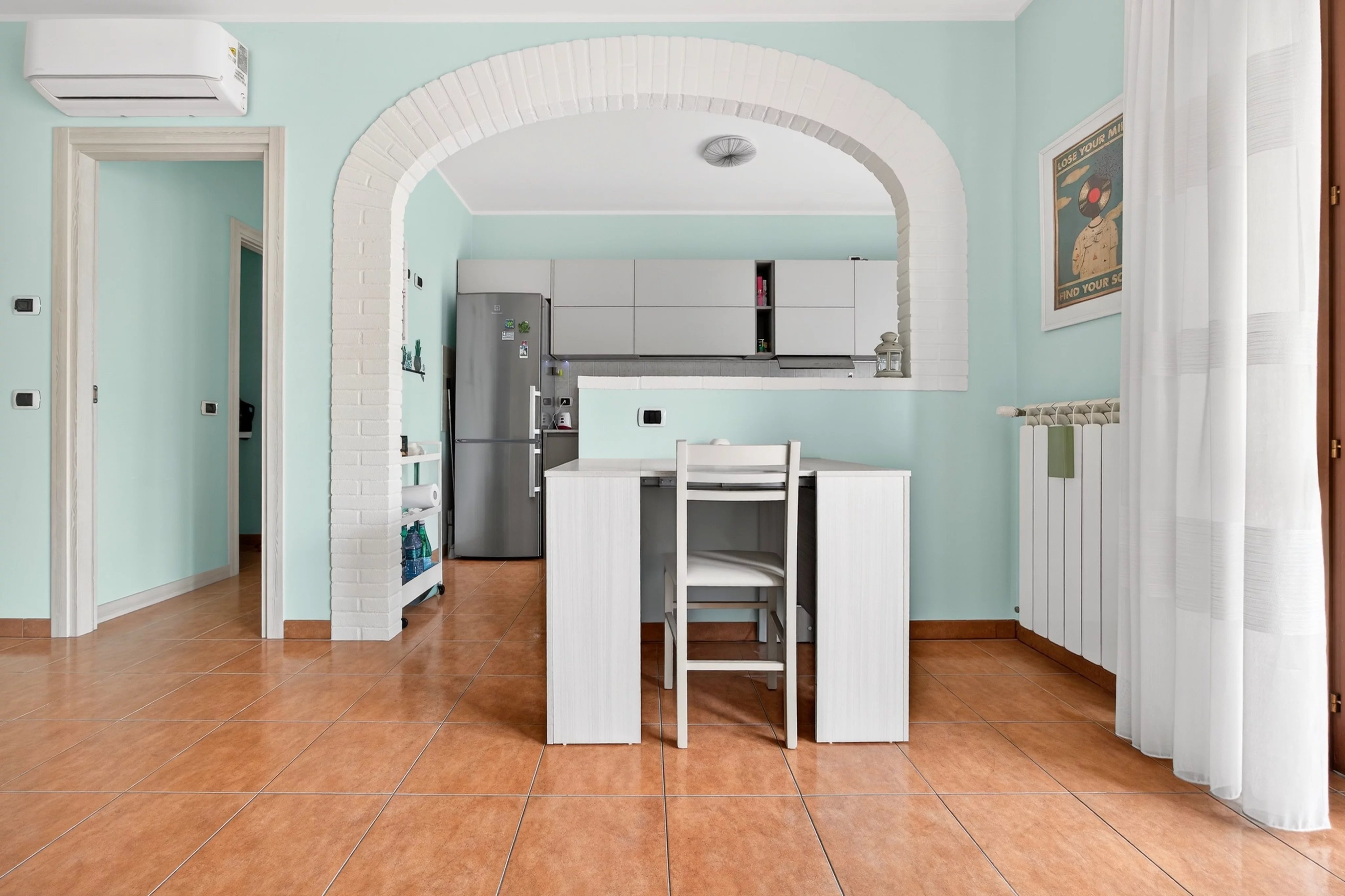 L’ingresso si apre su un ampio soggiorno, un ambiente accogliente e perfettamente vivibile, collegato alla cucina abitabile. Entrambi gli ambienti si affacciano sul terrazzino di 13 mq, uno spazio davvero prezioso per godersi momenti di relax all’aperto grazie alla splendida esposizione sud-ovest, che regala luce naturale fino al tramonto.