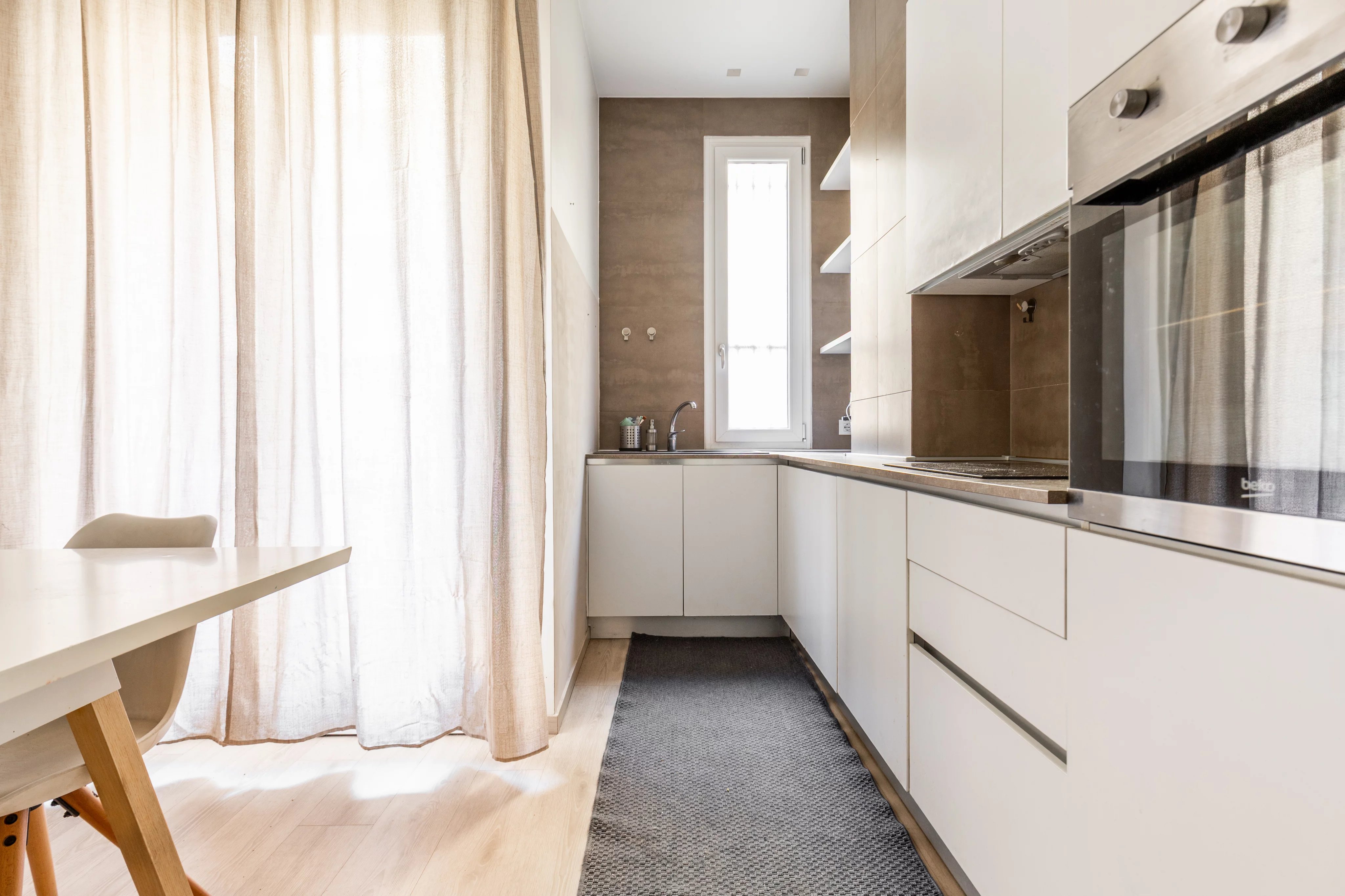 L’appartamento, oggetto di una ristrutturazione totale e studiato in ogni dettaglio, presenta una distribuzione degli spazi estremamente funzionale con un ingresso che conduce a una zona living con cucina a vista, due camere da letto ben proporzionate, un bagno finestrato e due balconi che donano ariosità agli ambienti. Completa la proprietà una cantina privata.