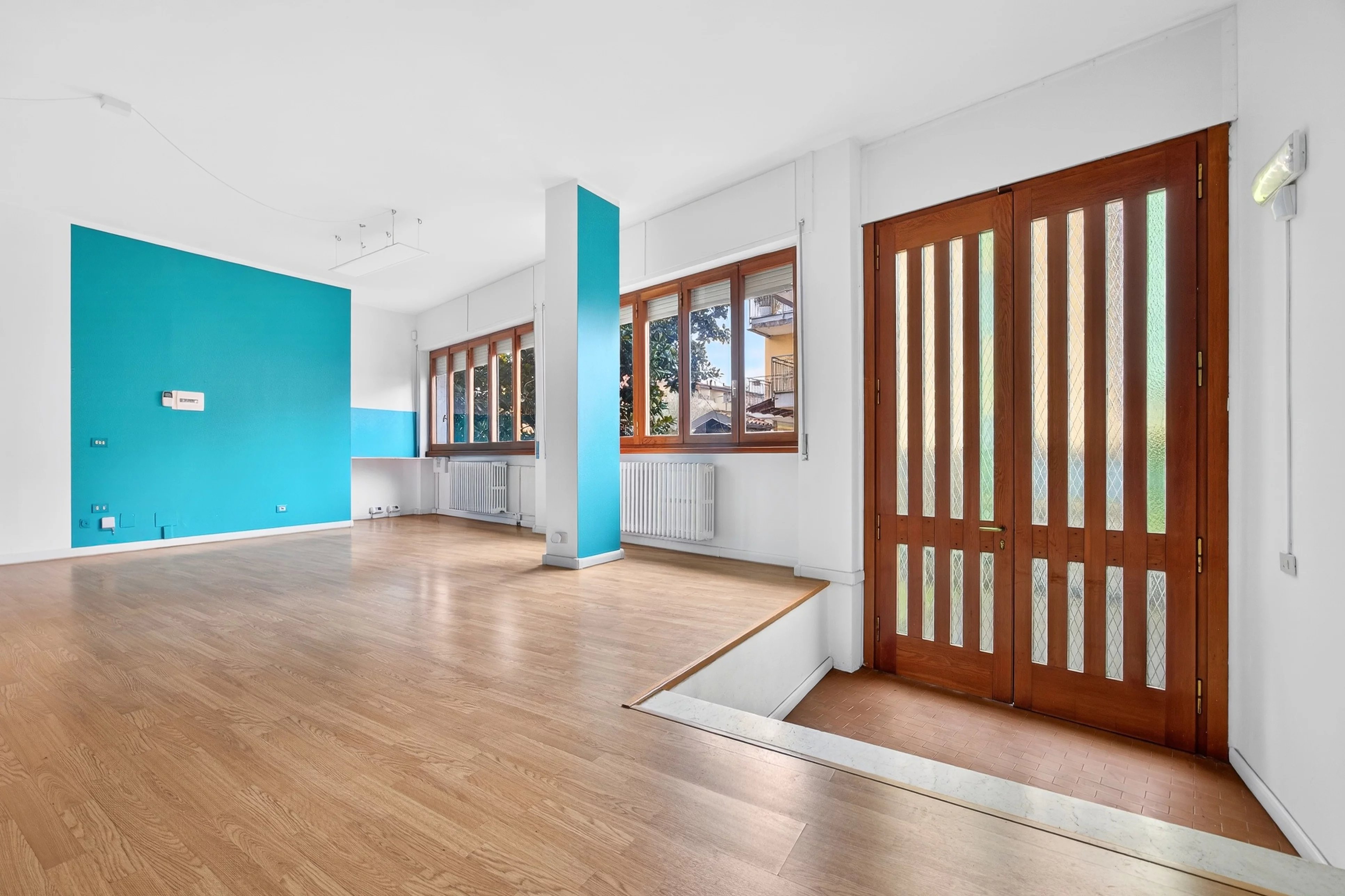 L’immobile è inserito in un piccolo condominio ma dispone di ingresso indipendente, garantendo privacy e praticità per professionisti e aziende.