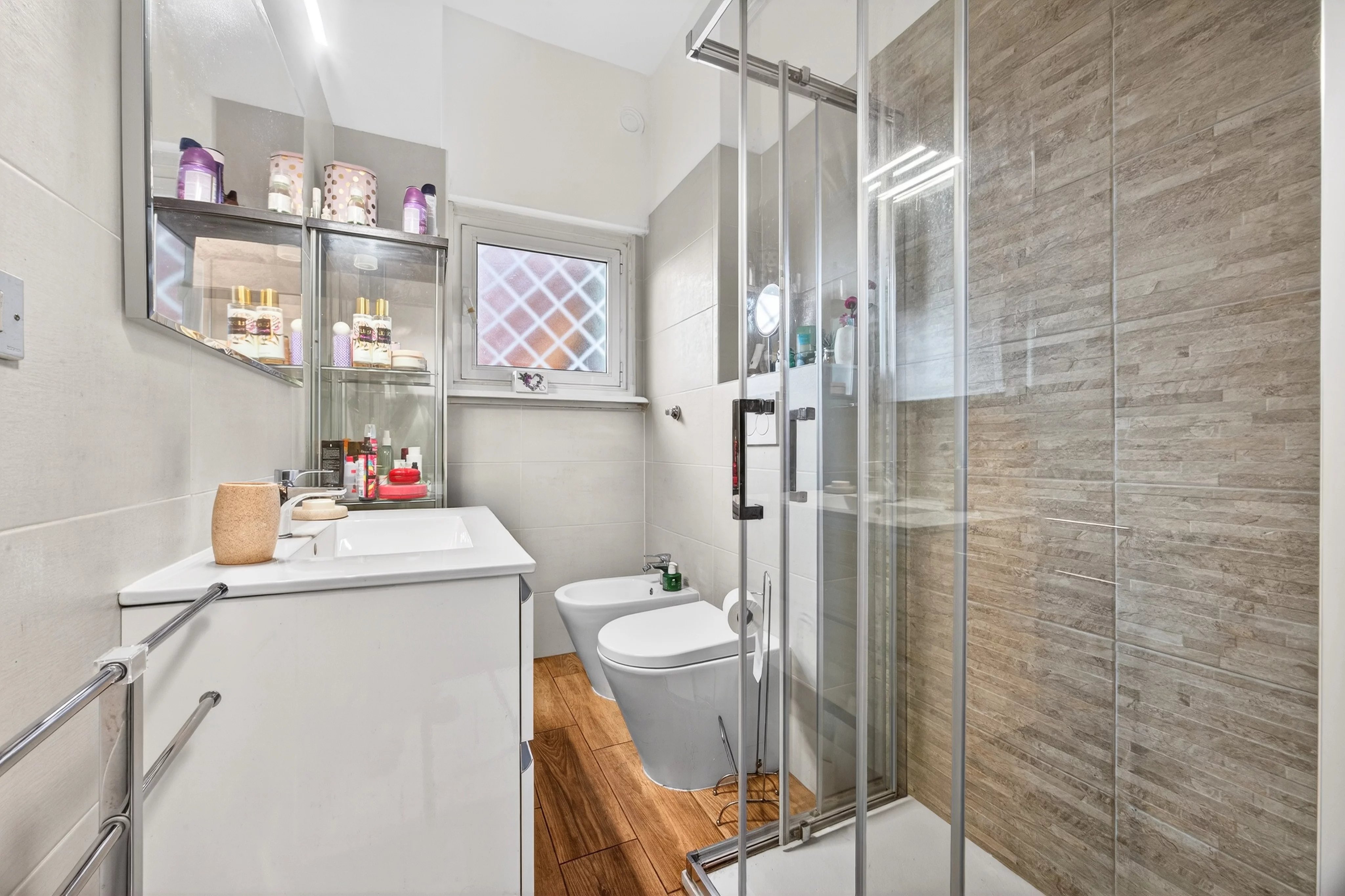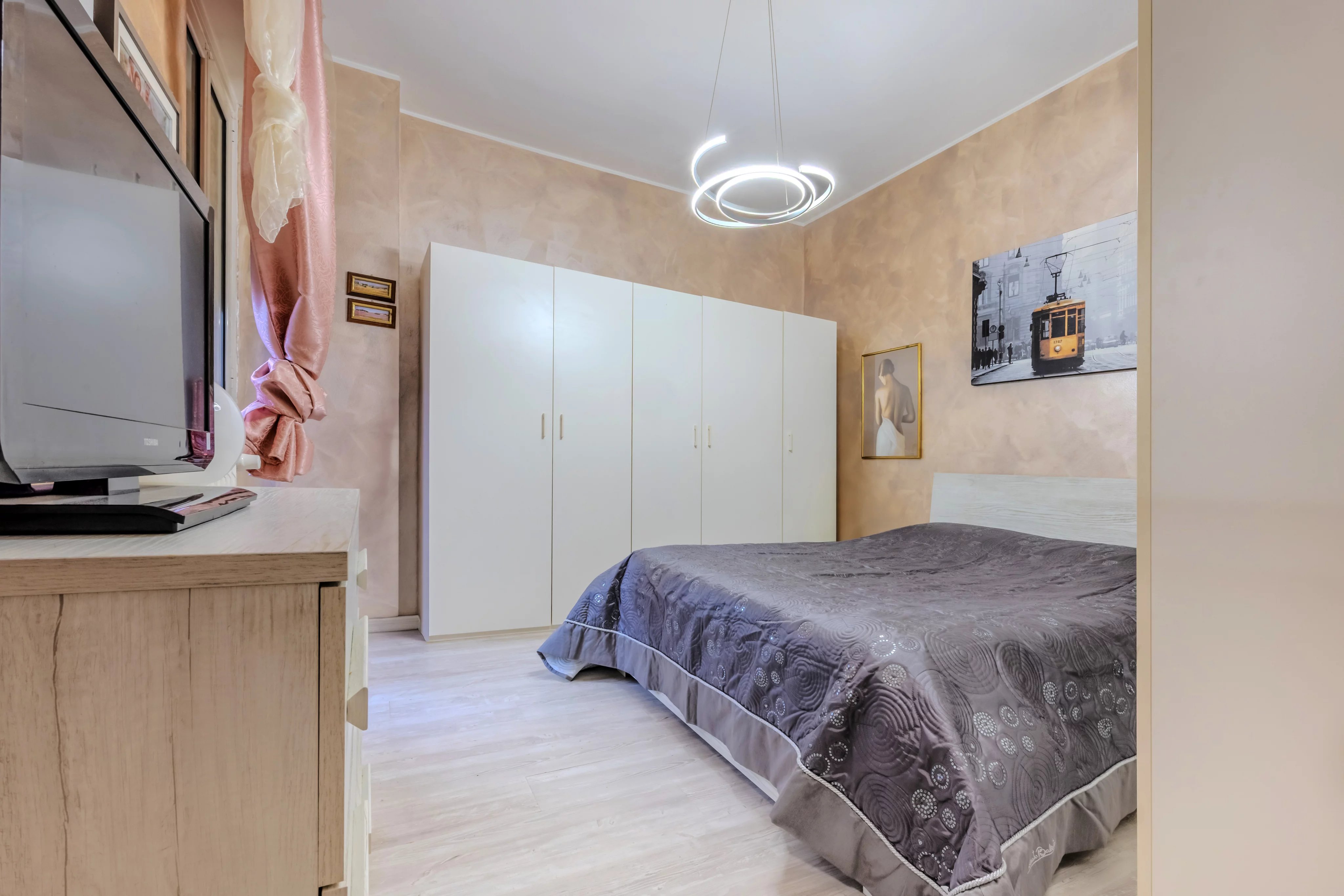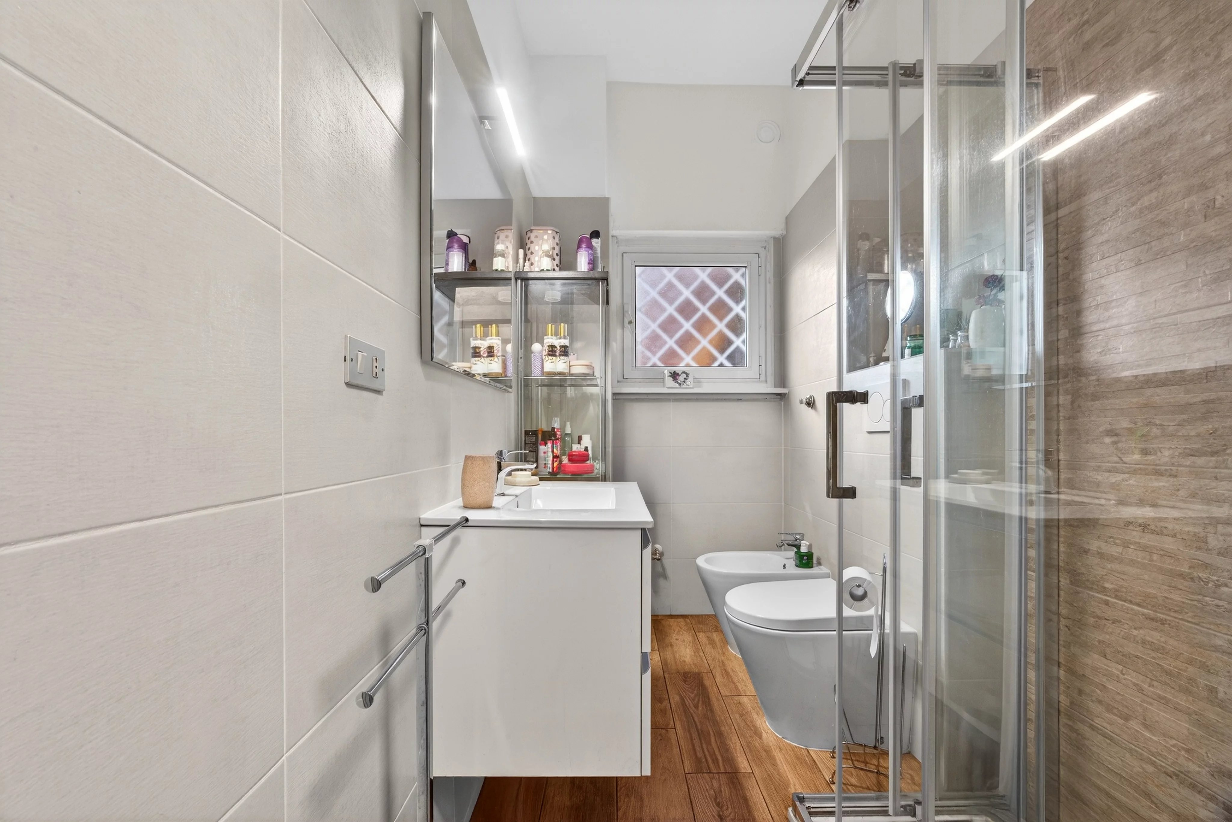 La camera da letto è ben proporzionata e silenziosa, mentre il bagno, completamente rinnovato, presenta finiture moderne e materiali di qualità.