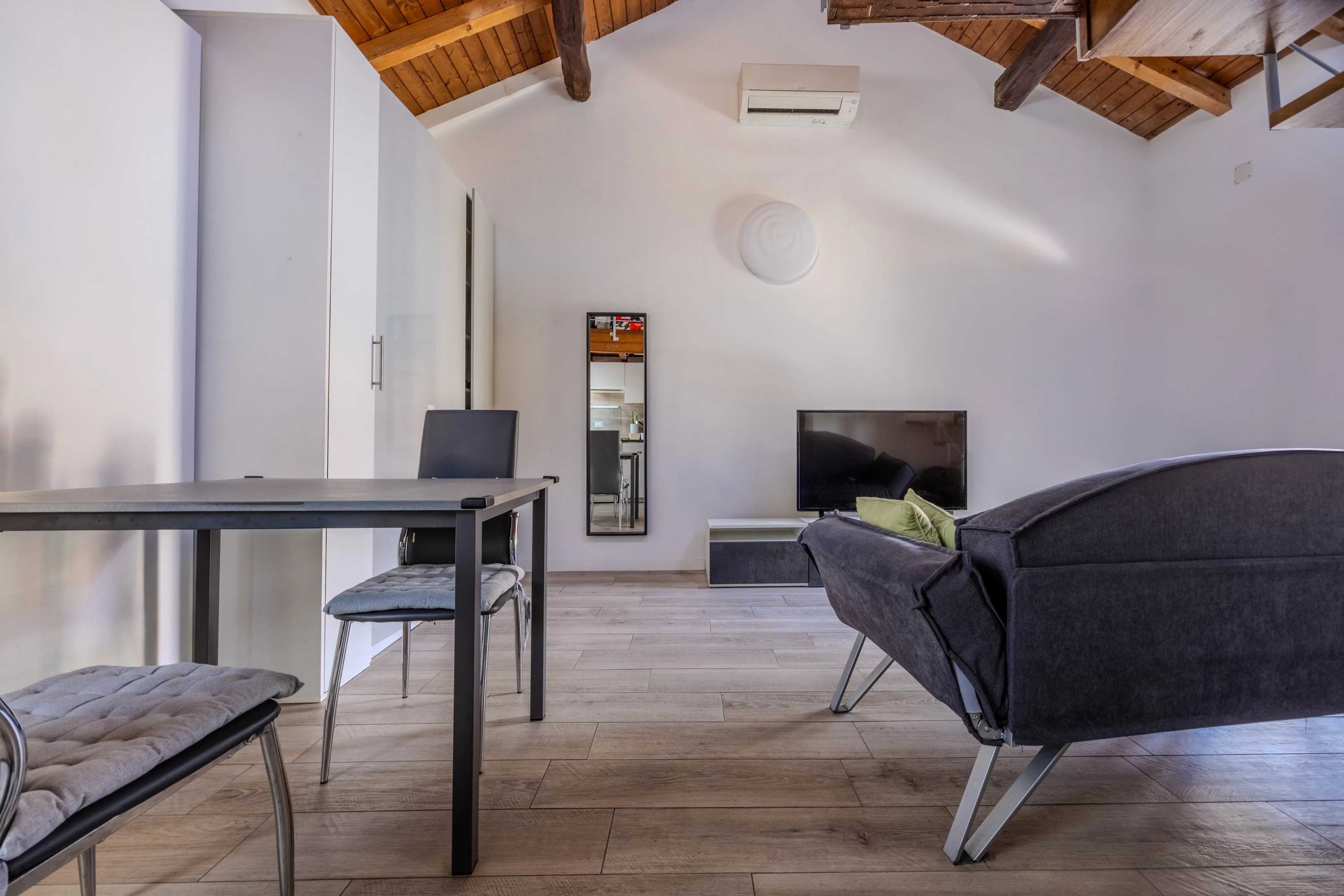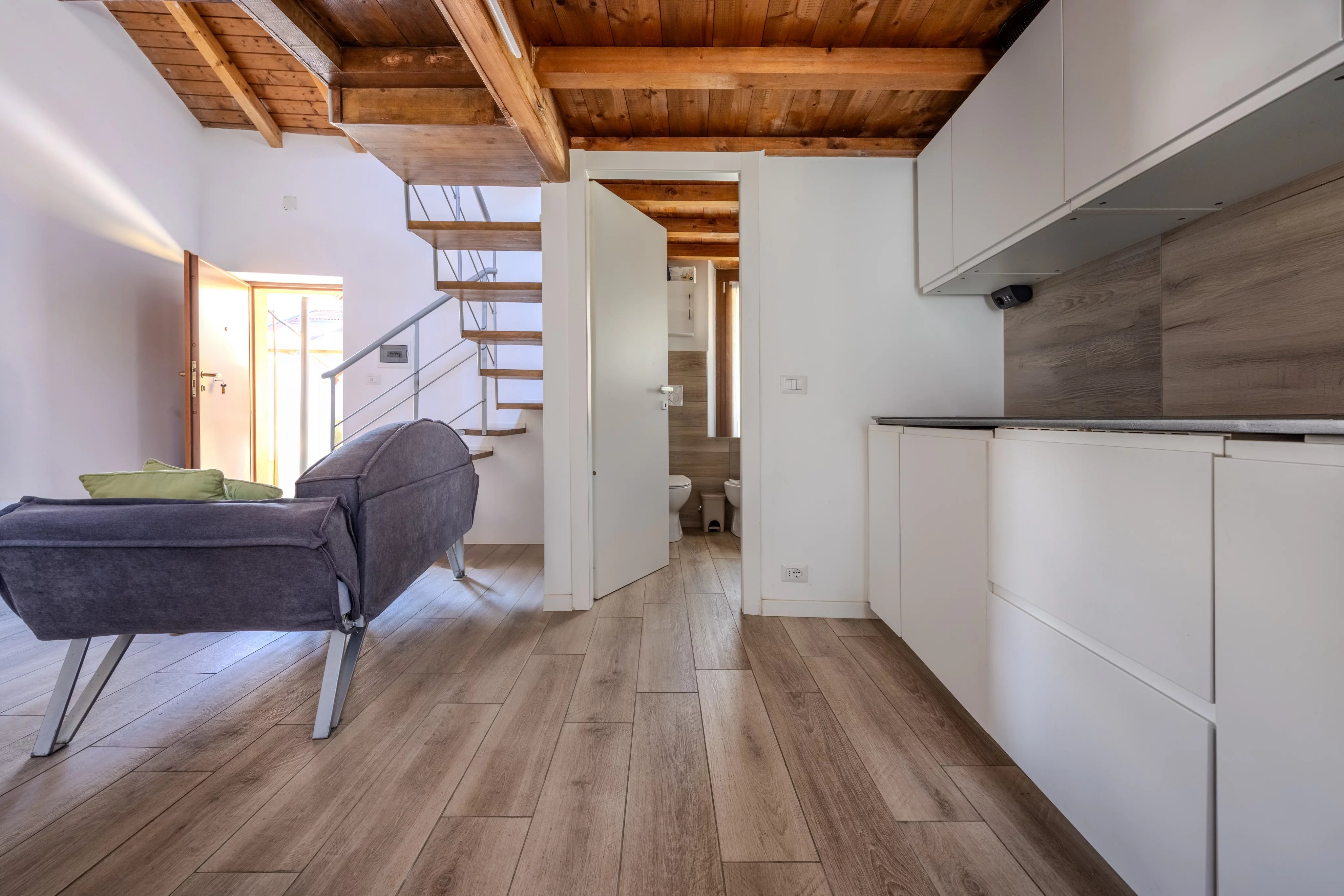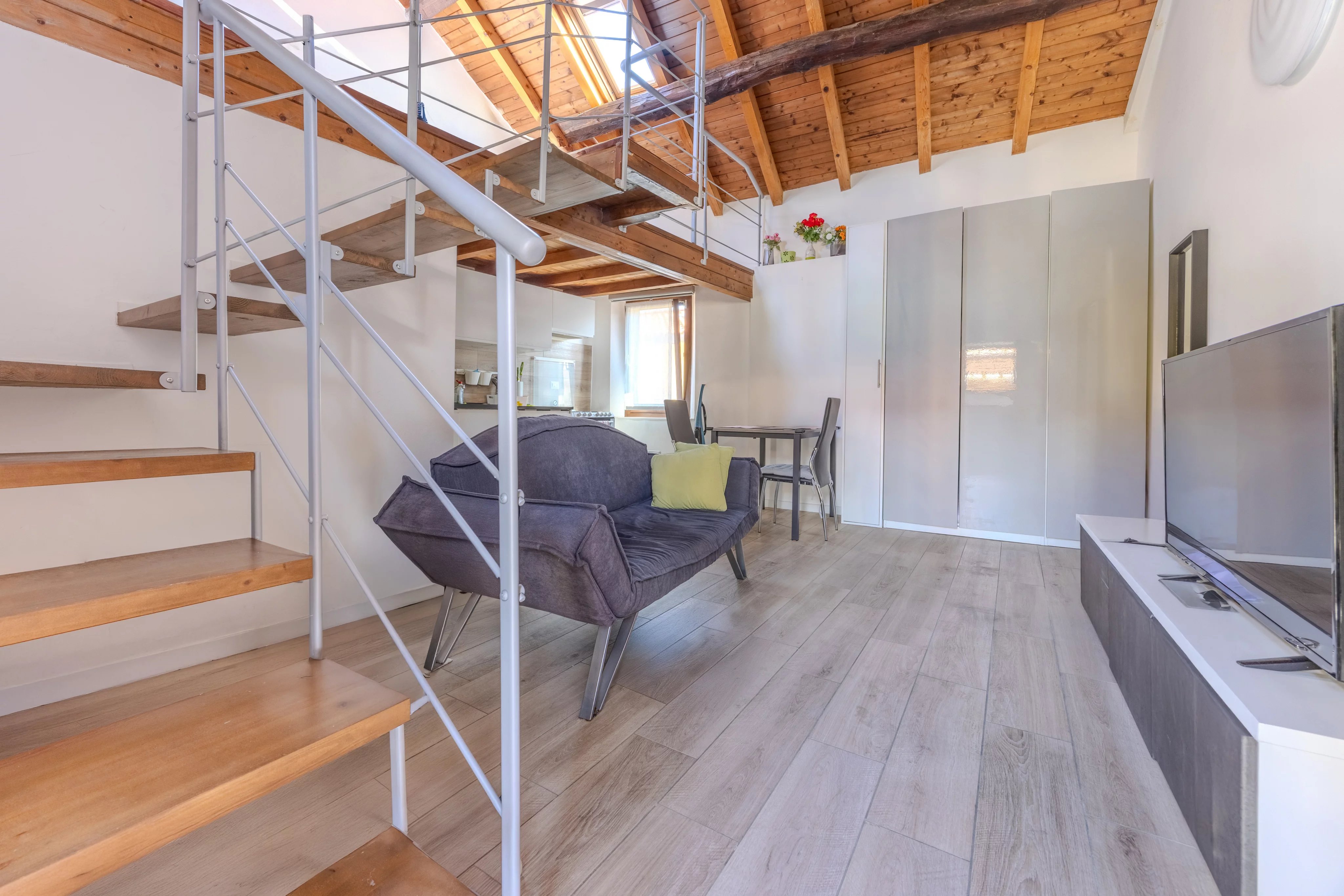 L'appartamento è stato recentemente e completamente ristrutturato, unendo il fascino tradizionale della corte con il comfort e il design moderno. L'ingresso si apre su un ambiente luminoso e accogliente. La zona giorno, compatta ma funzionale, ospita un moderno angolo cottura completamente attrezzato e una zona living ideale per rilassarsi o ricevere ospiti. Il vero punto di forza è il soppalco, accessibile tramite una scala. Questo spazio, ben studiato e sicuro, è dedicato alla zona notte, offrendo più privacy; questa zona è spaziosa da poter posizionare un letto matrimoniale e sfruttando al massimo l'altezza del soffitto. L'appartamento viene venduto completamente arredato. LIBERO SUBITO.