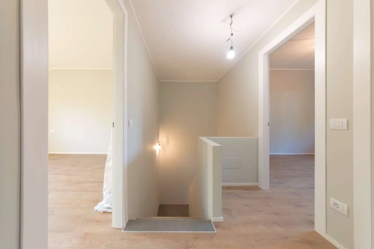 La zona notte, posta al piano primo, è organizzata con una spaziosa camera matrimoniale con bagno privato, altre due camere con un ulteriore servizio.