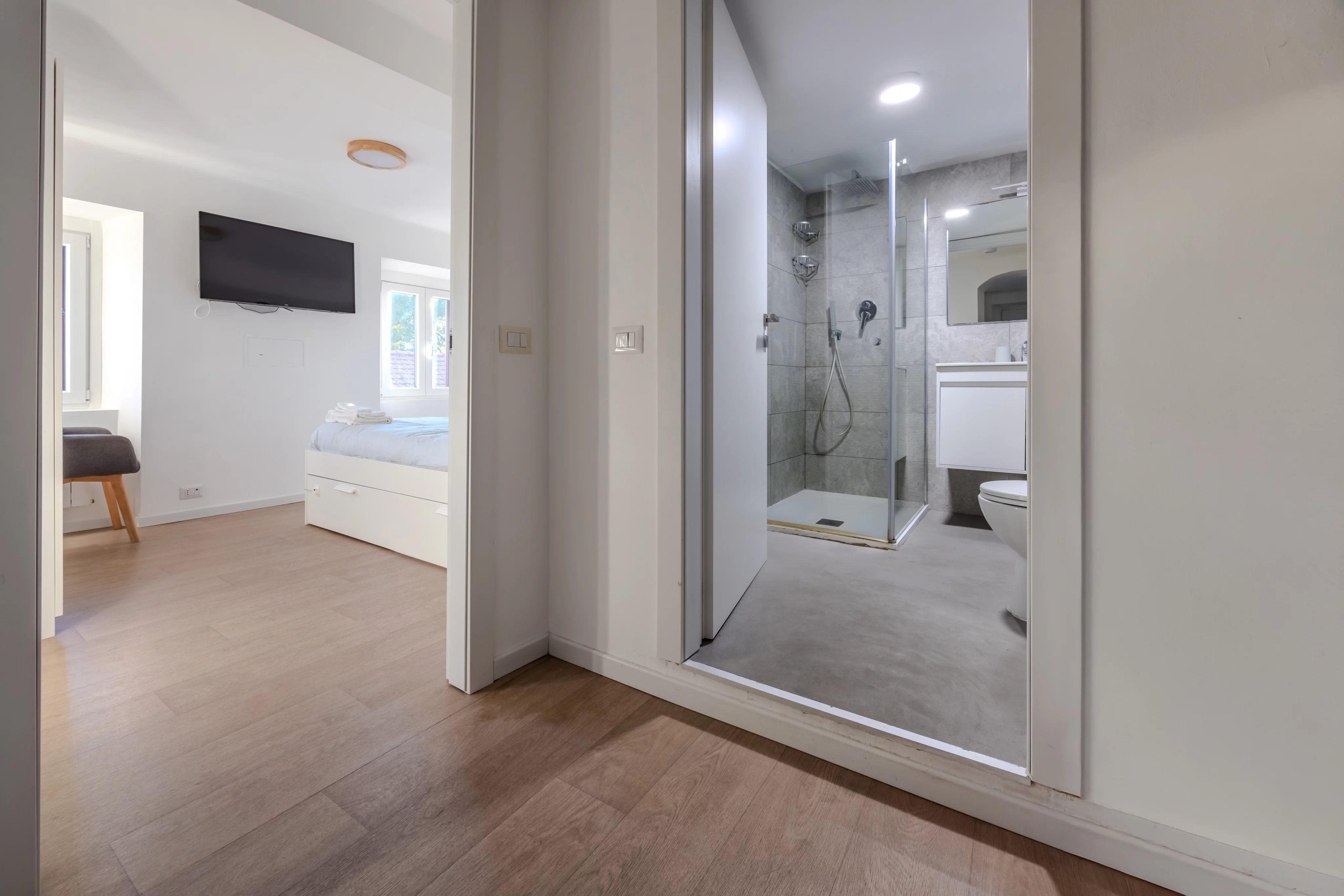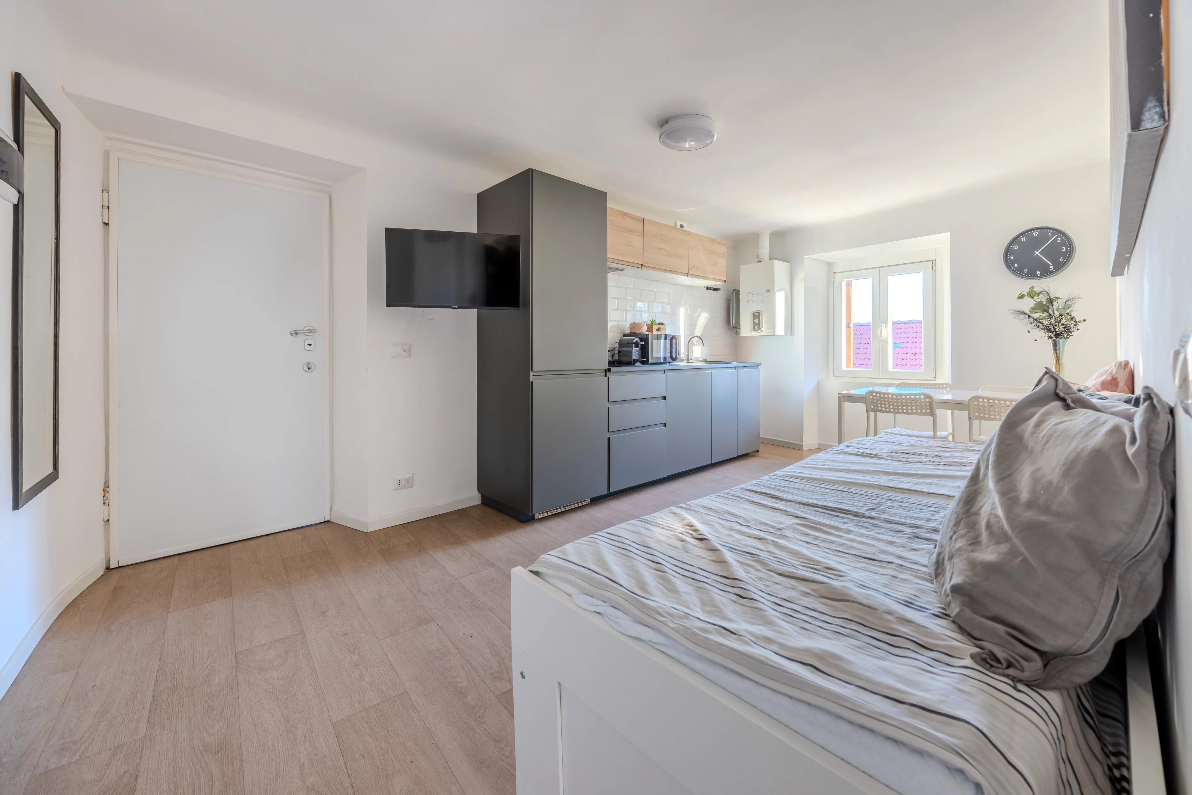 Internamente è composto da ingresso, soggiorno con cucina a vista, camera da letto matrimoniale e bagno.