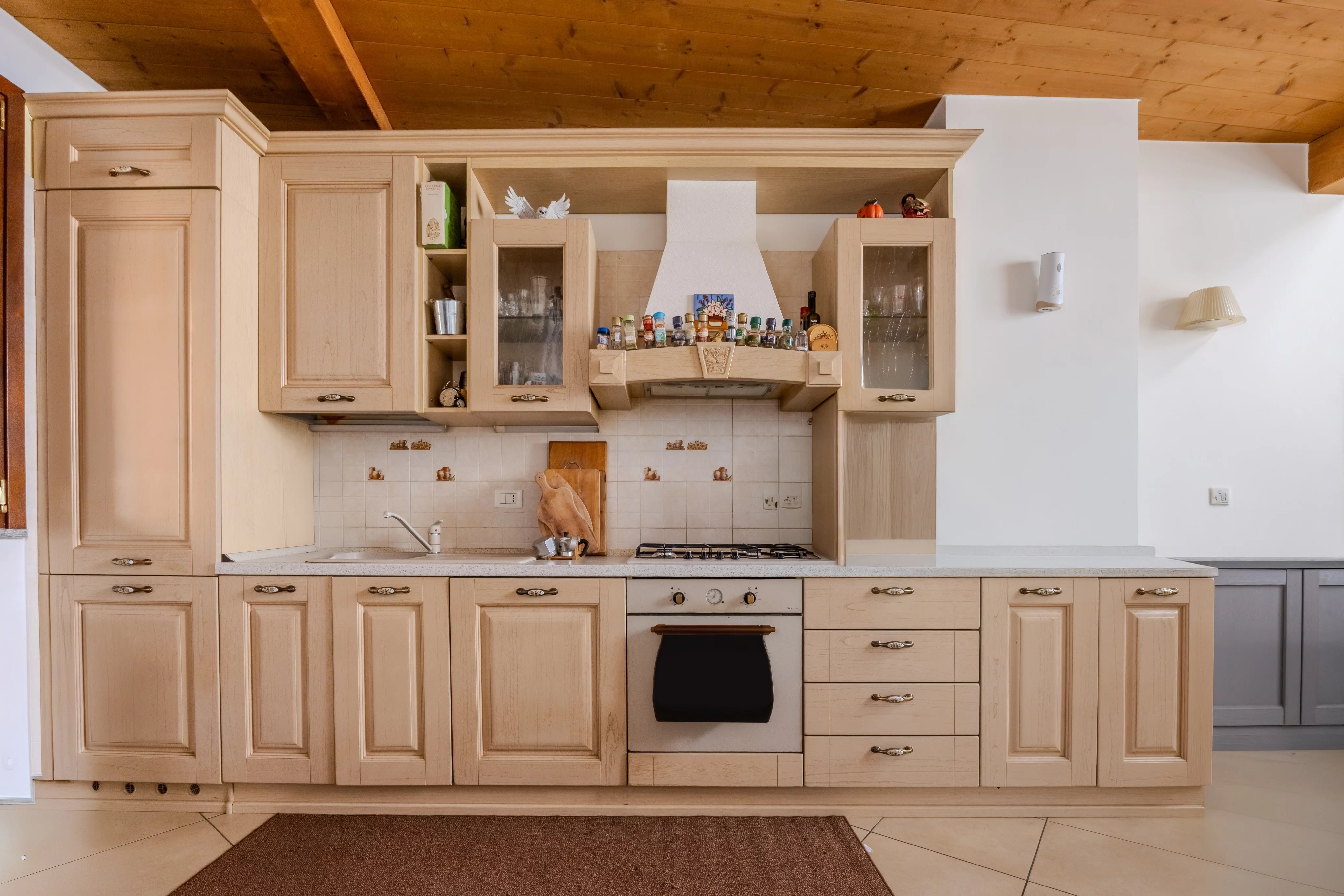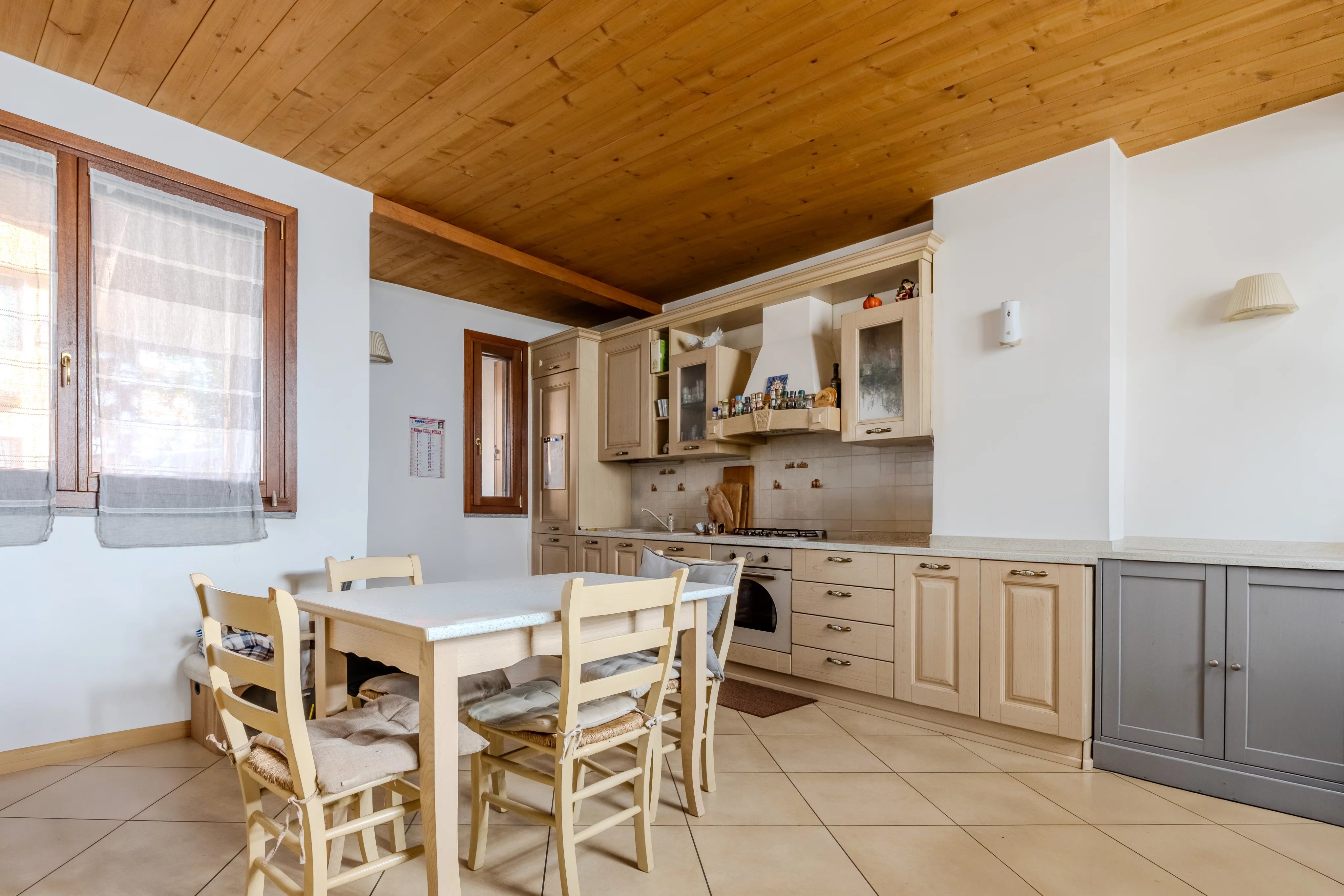 Al piano terra un'accogliente zona giorno con cucina a vista.