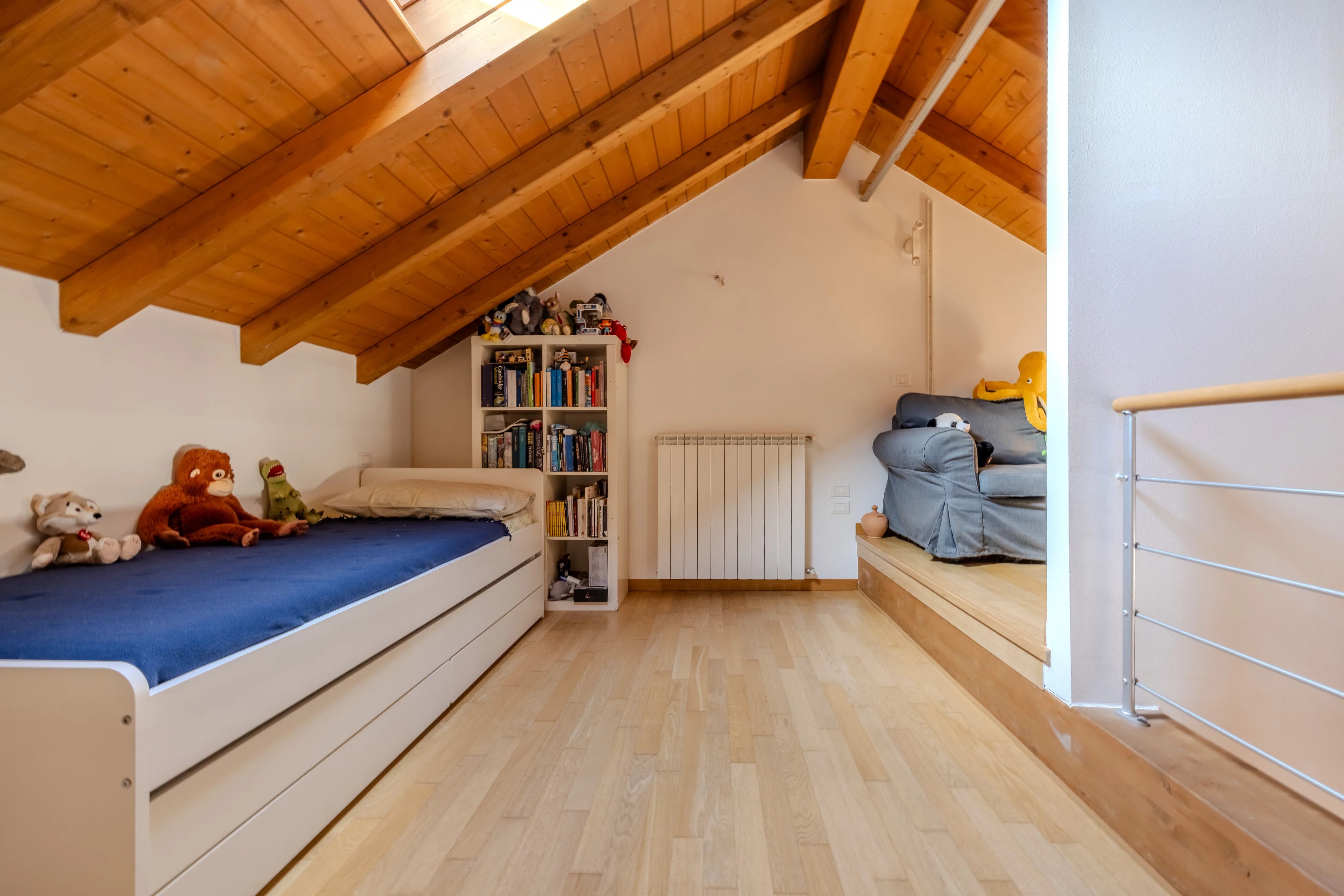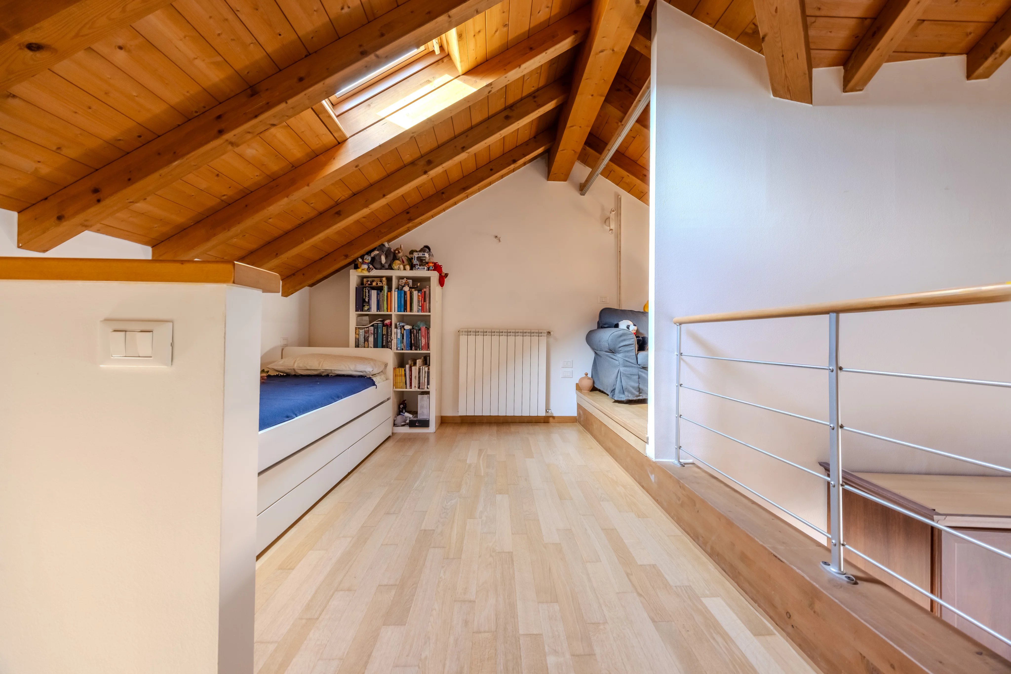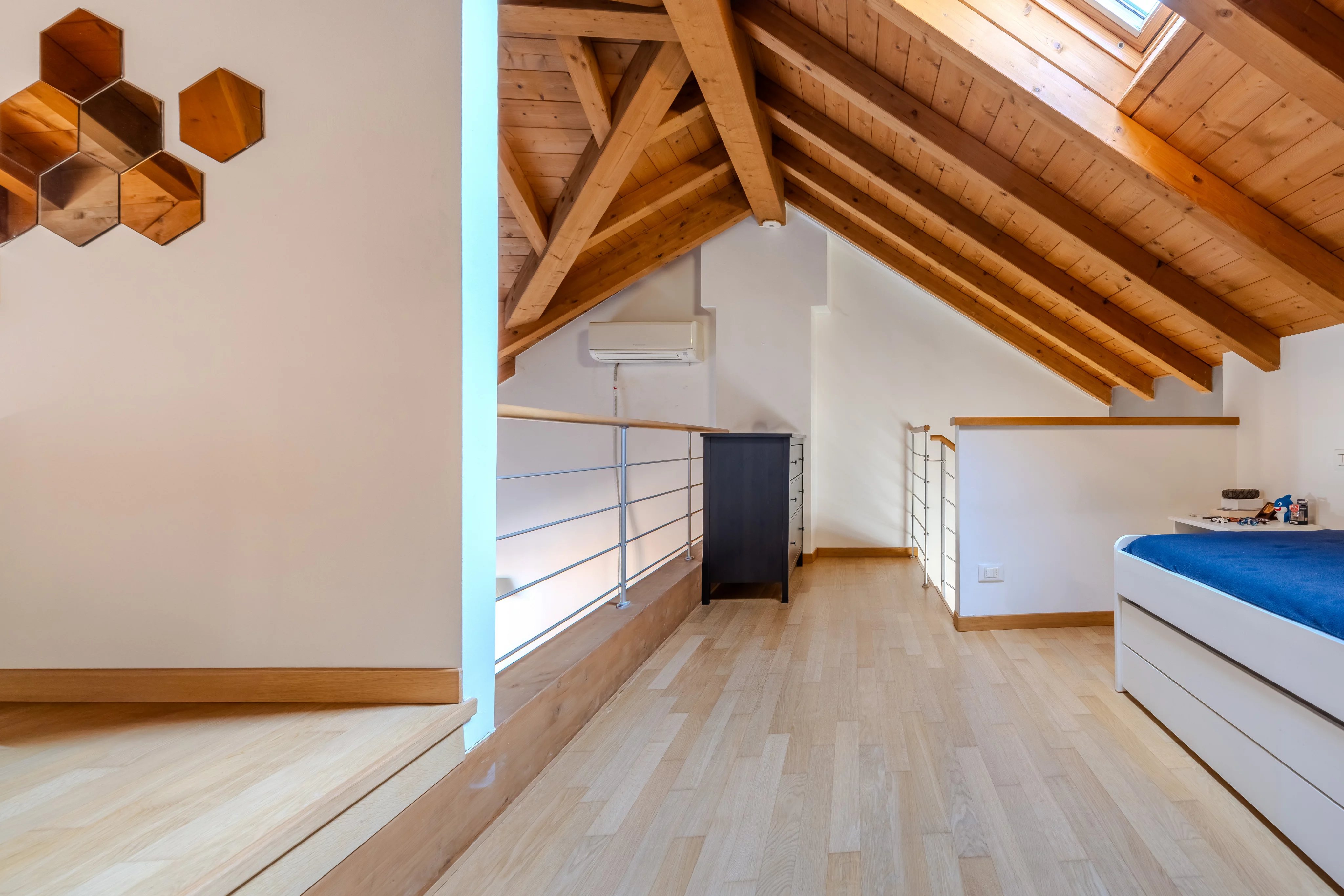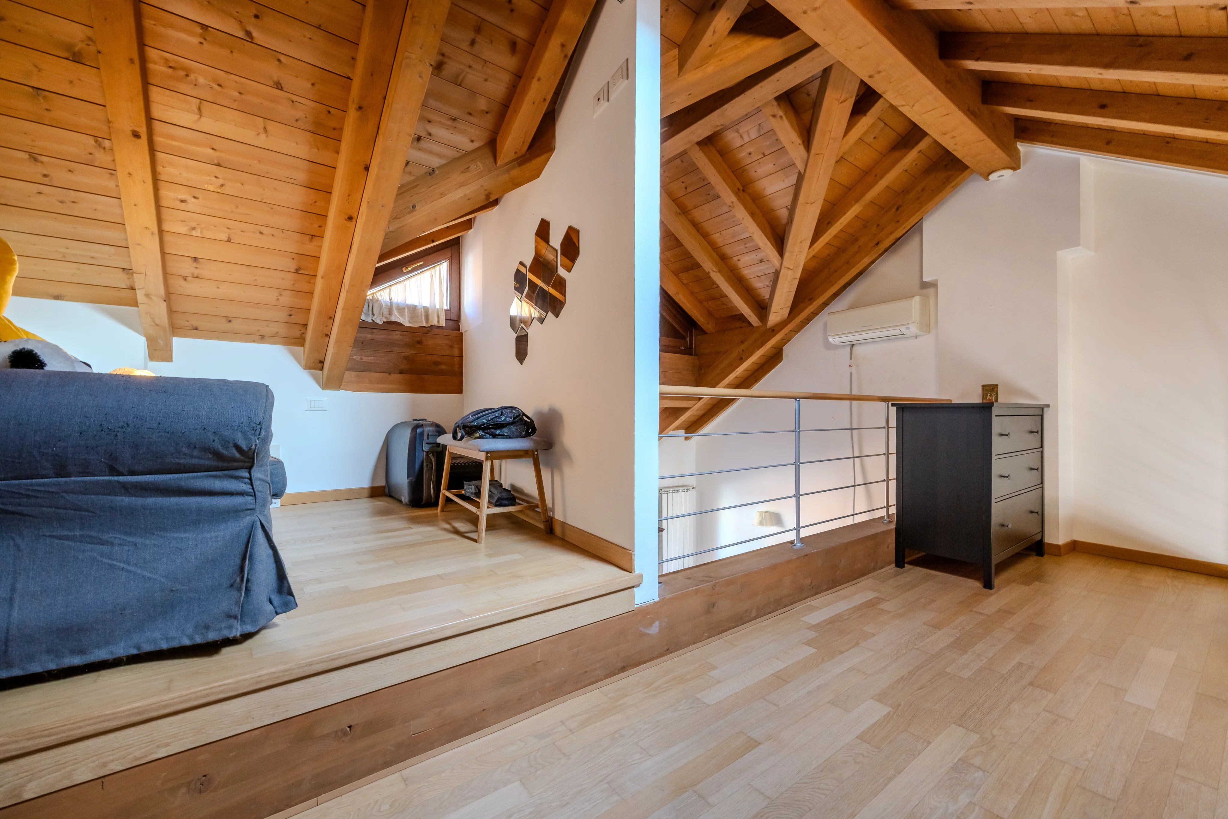 Tramite un'ulteriore scala si accede al suggestivo soppalco a sbalzo con affaccio sulla camera. Questo spazio versatile è perfetto per essere adibito a seconda camera o studio a seconda delle vostre esigenze.