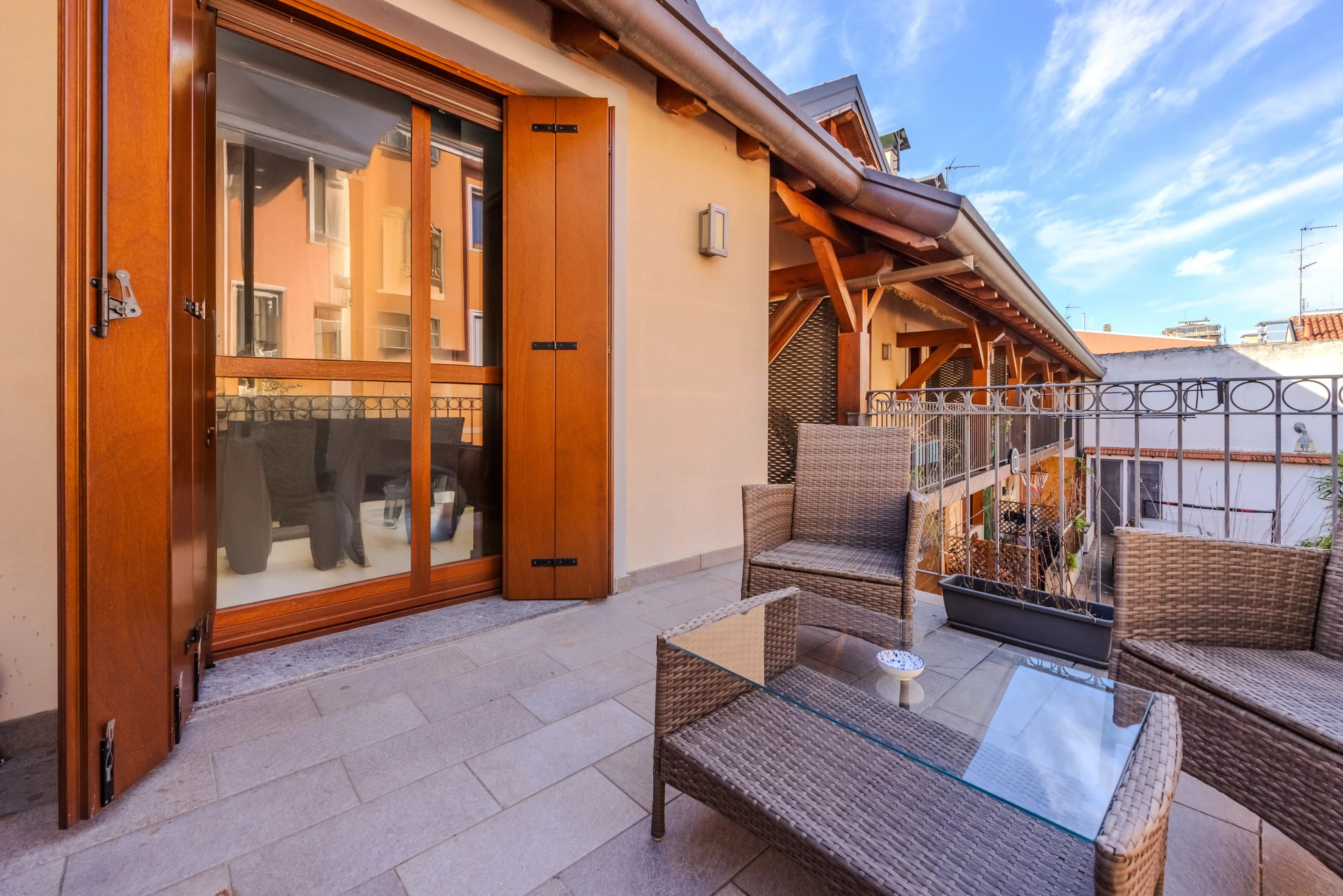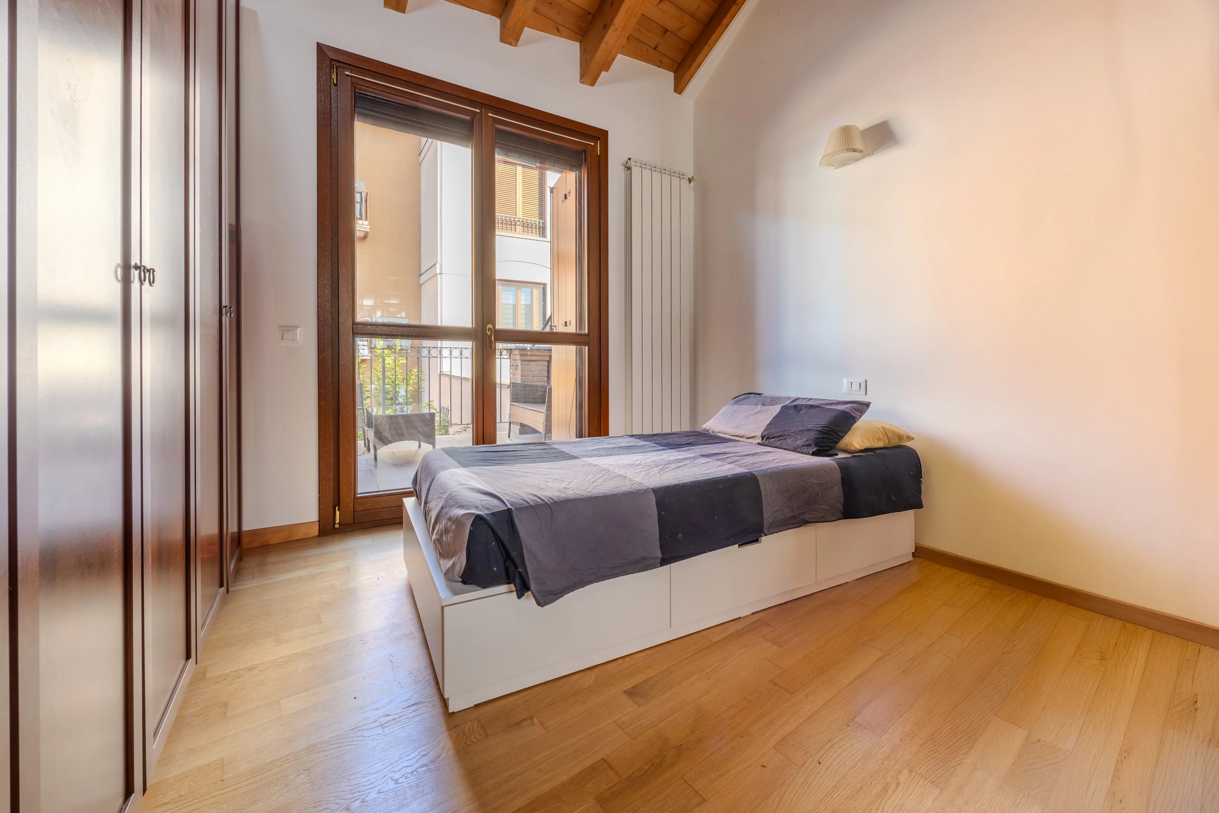 Una scala interna conduce al primo piano, interamente dedicato alla zona notte: qui troviamo la luminosa camera matrimoniale e il bagno. Il vero gioiello è lo splendido terrazzo a livello, ideale per colazioni all'aperto o momenti di relax.