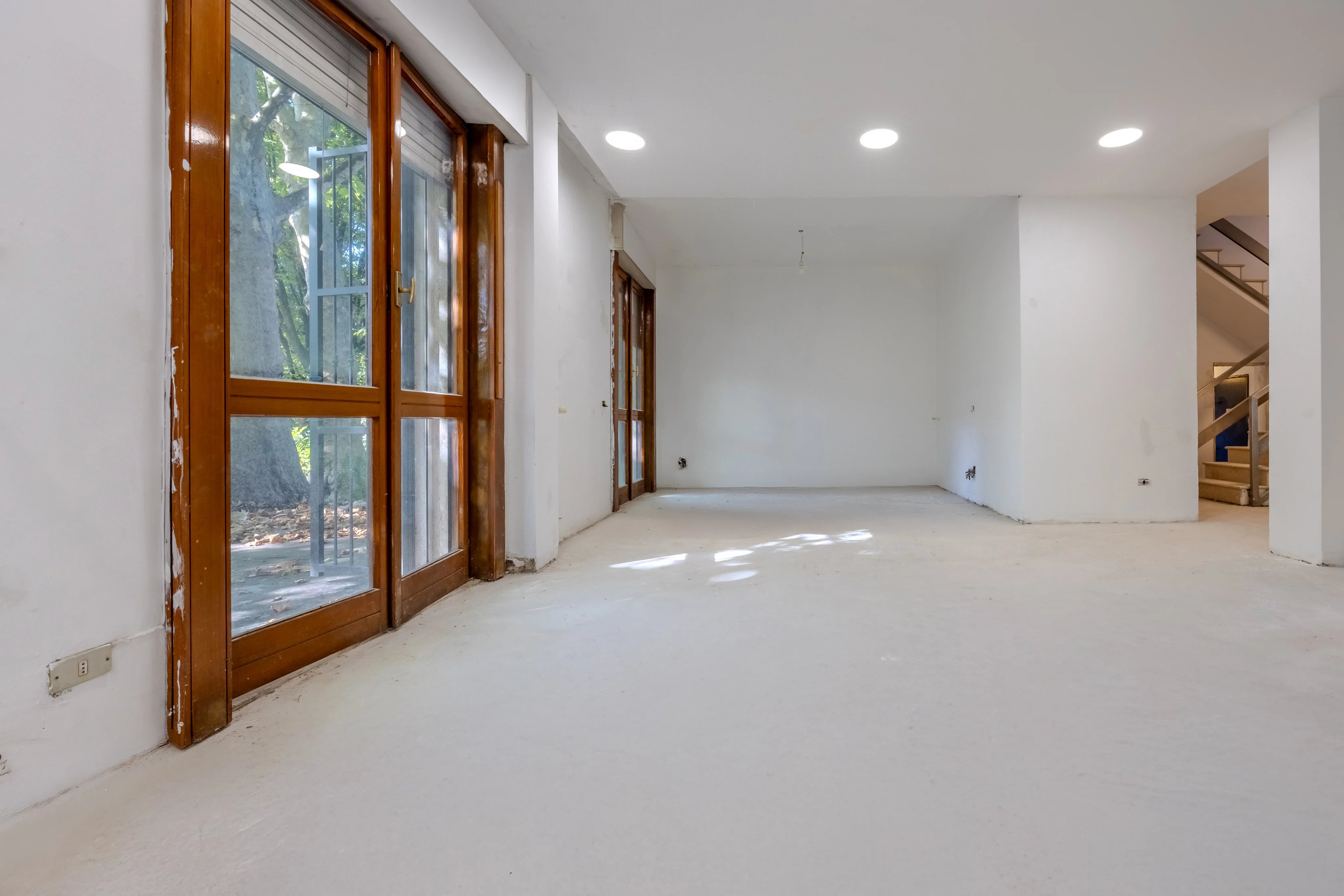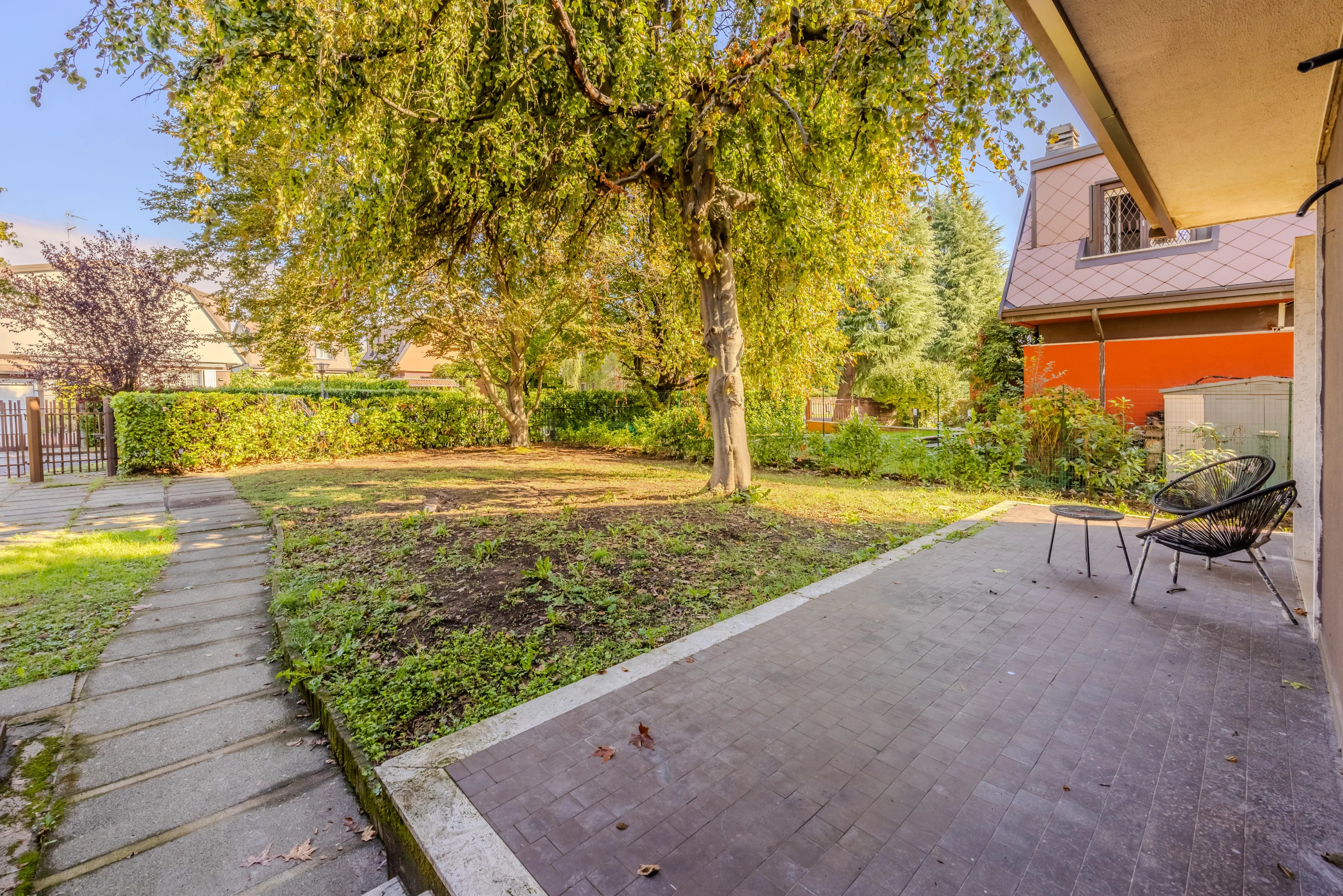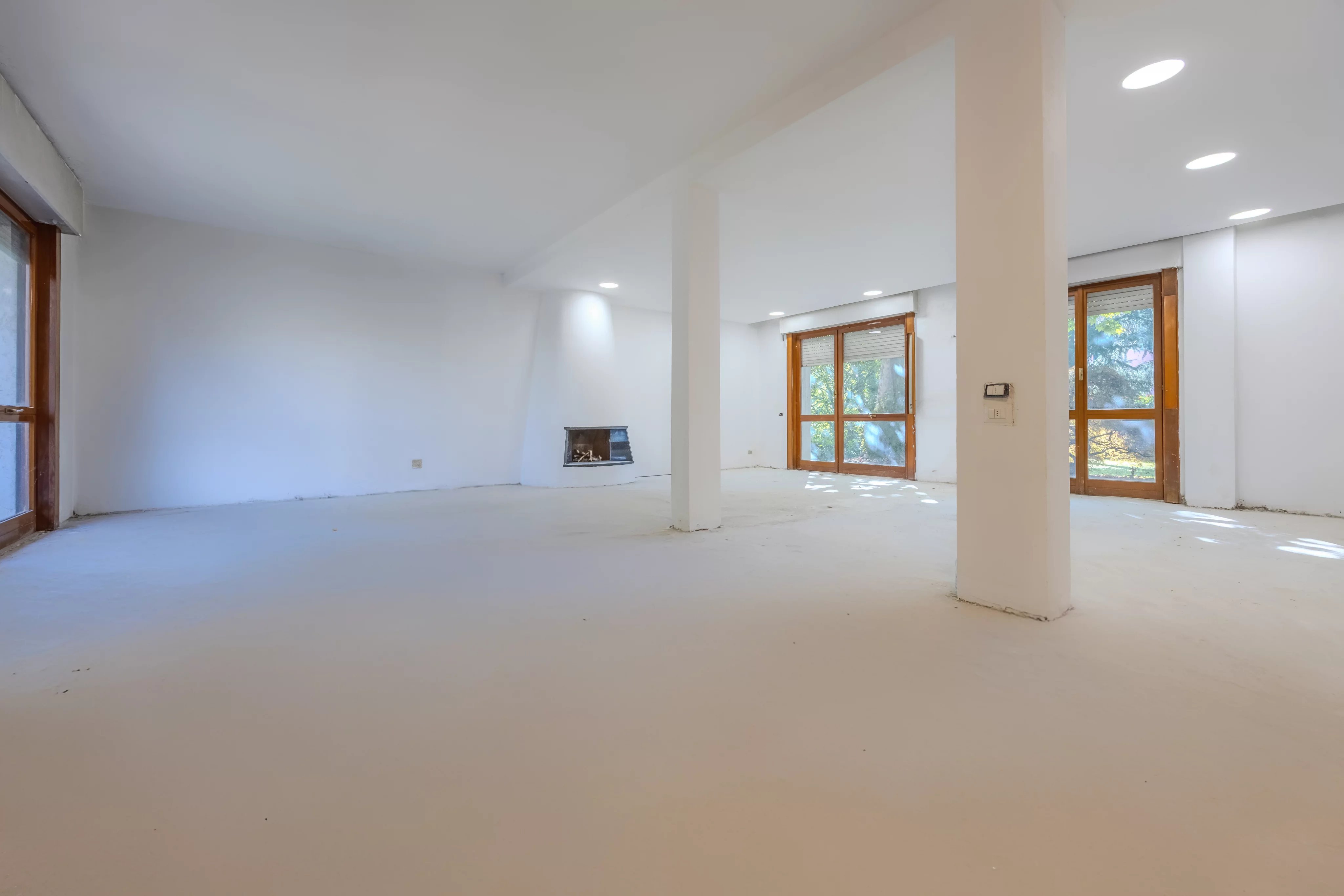 La proprietà, da rifinire e personalizzare secondo il proprio stile, si sviluppa su un lotto di 1.400 mq, con un ampio giardino frontale che accoglie numerosi posti auto, e un elegante parco privato sul retro, esposto a sud. Le piante ad alto fusto garantiscono privacy, luce naturale e un’atmosfera esclusiva e rilassante.