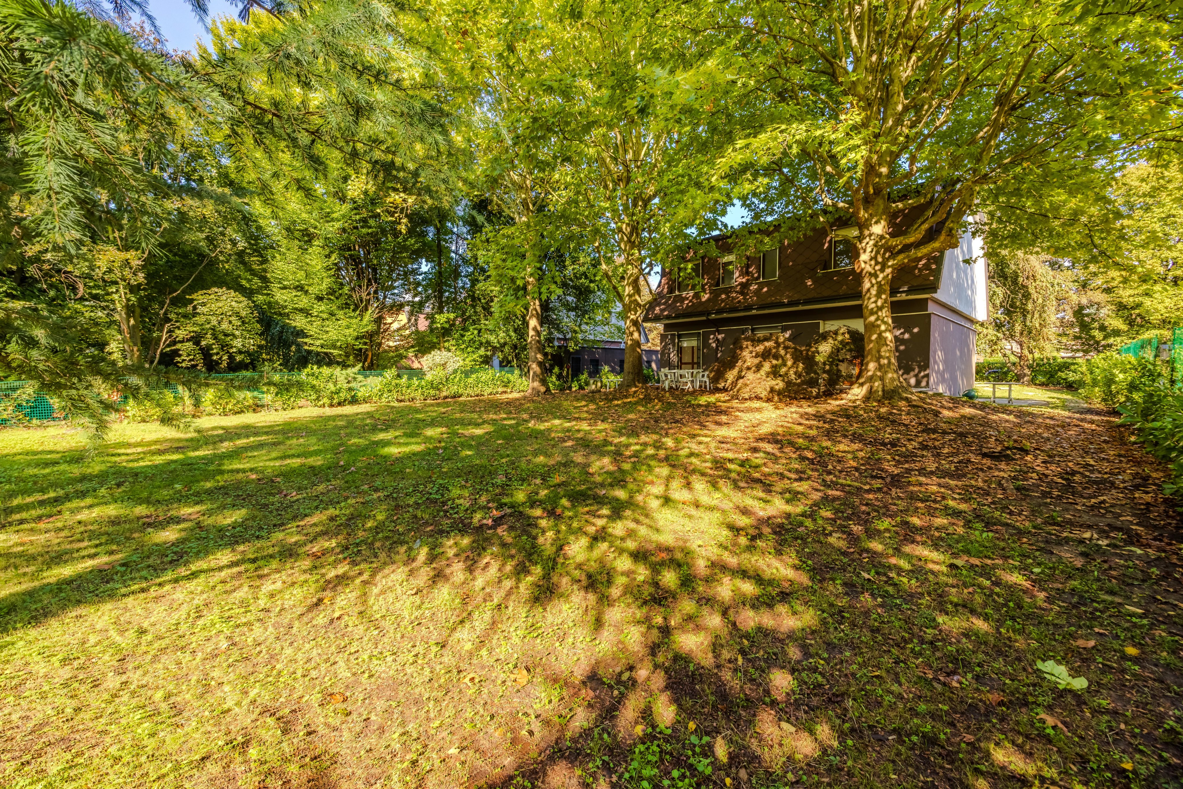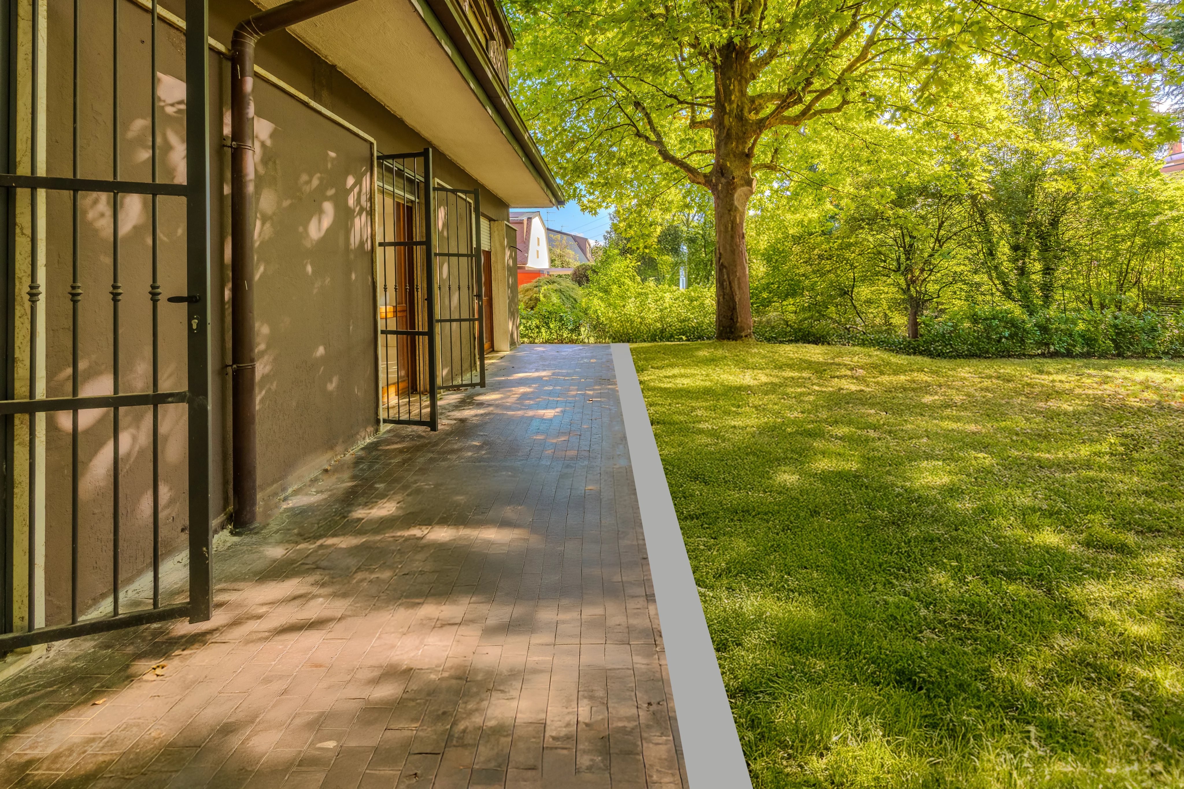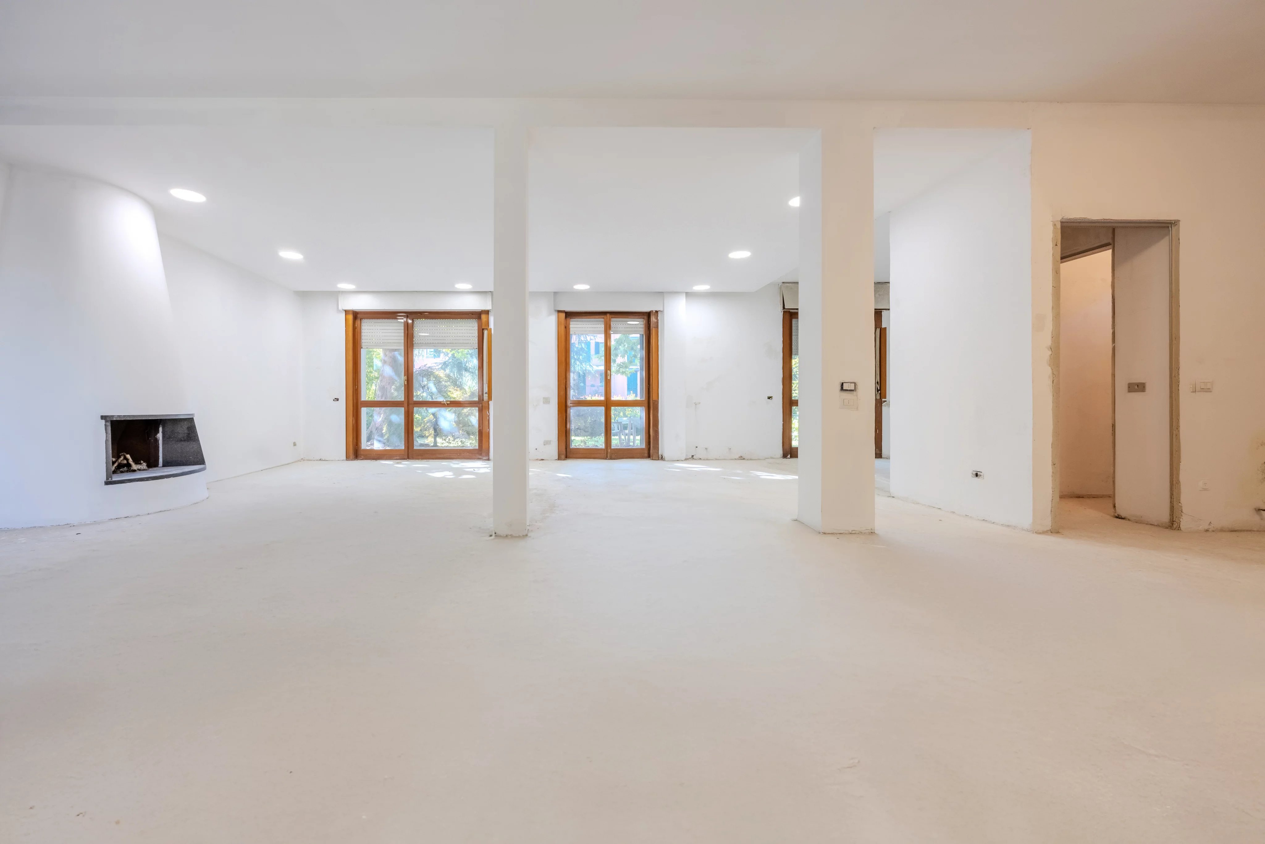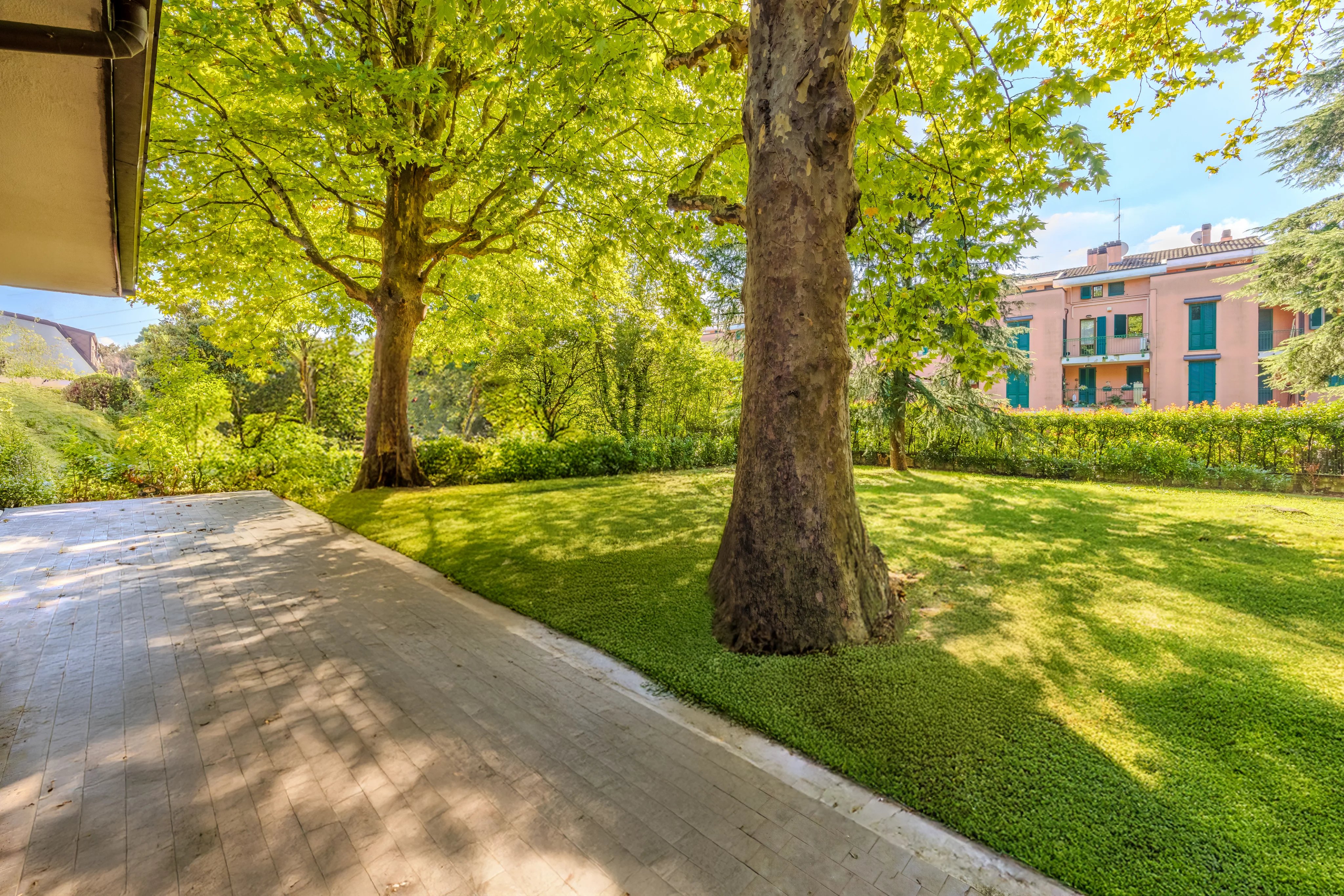 La proprietà, da rifinire e personalizzare secondo il proprio stile, si sviluppa su un lotto di 1.400 mq, con un ampio giardino frontale che accoglie numerosi posti auto, e un elegante parco privato sul retro, esposto a sud. Le piante ad alto fusto garantiscono privacy, luce naturale e un’atmosfera esclusiva e rilassante.