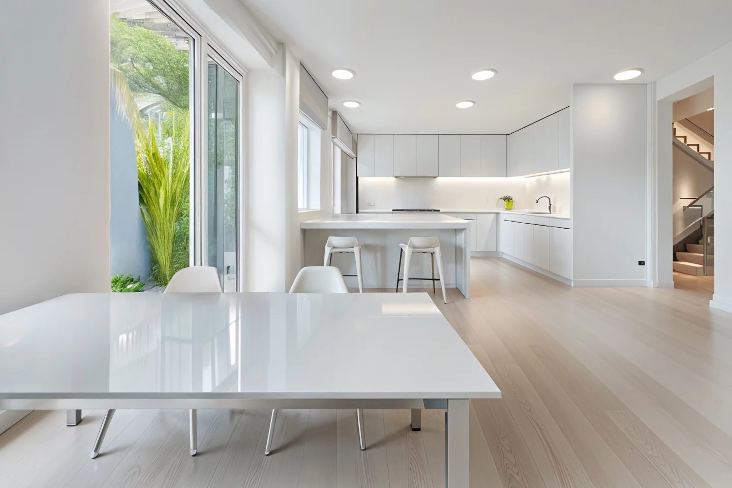 Al piano terra si trova un salone triplo open space dall’effetto scenografico, con cucina americana a vista e bagno di servizio. La zona notte, situata al piano superiore, comprende quattro camere da letto e due bagni finestrati, tra cui una suite padronale dotata di bagno privato e cabina armadio. Completano la proprietà un box doppio e una comoda lavanderia.