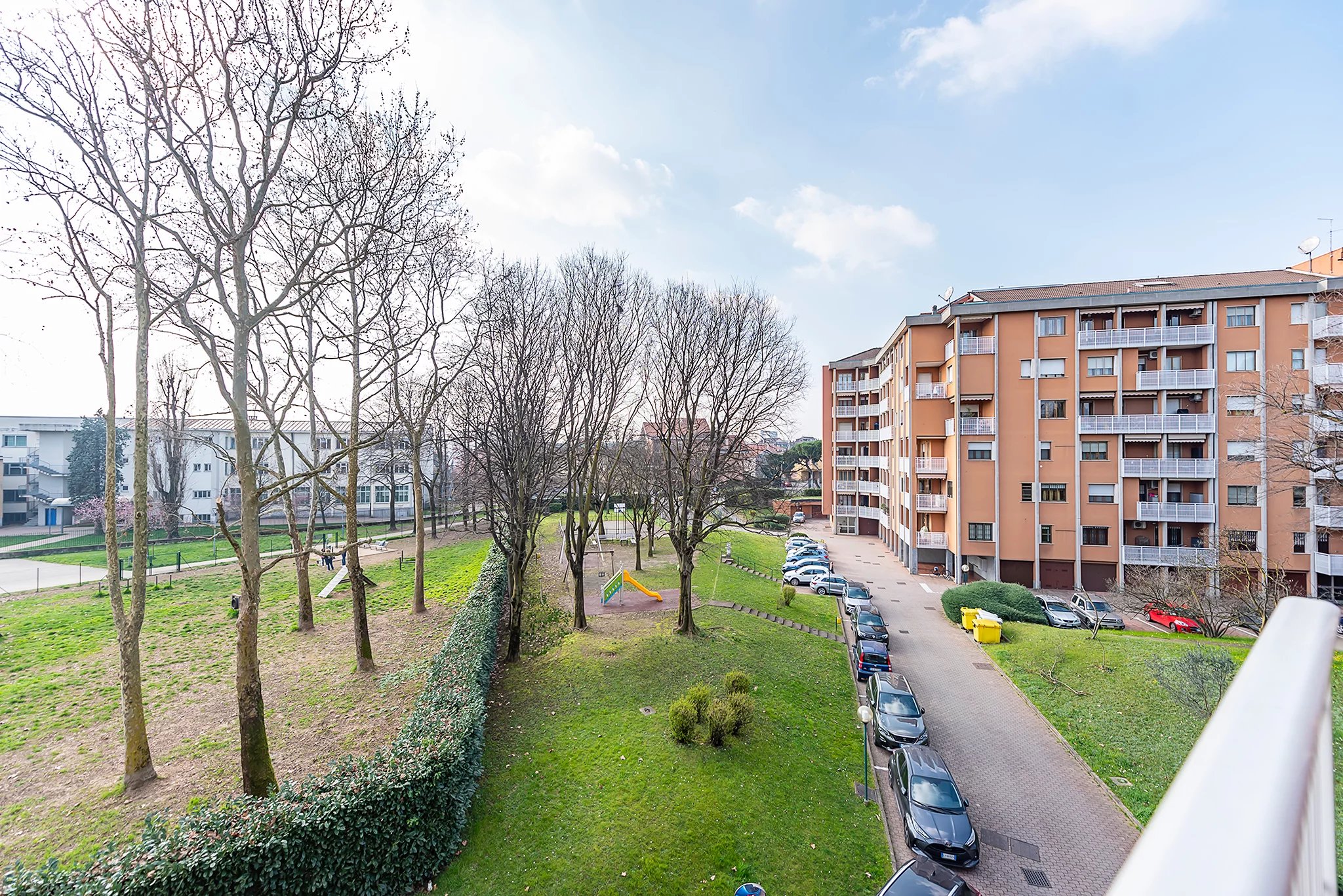 Il complesso è arricchito da parco condominiale, area giochi per bambini, campo da calcio e tennis e una comoda zona attrezzata per pranzi e momenti conviviali all’aperto.
