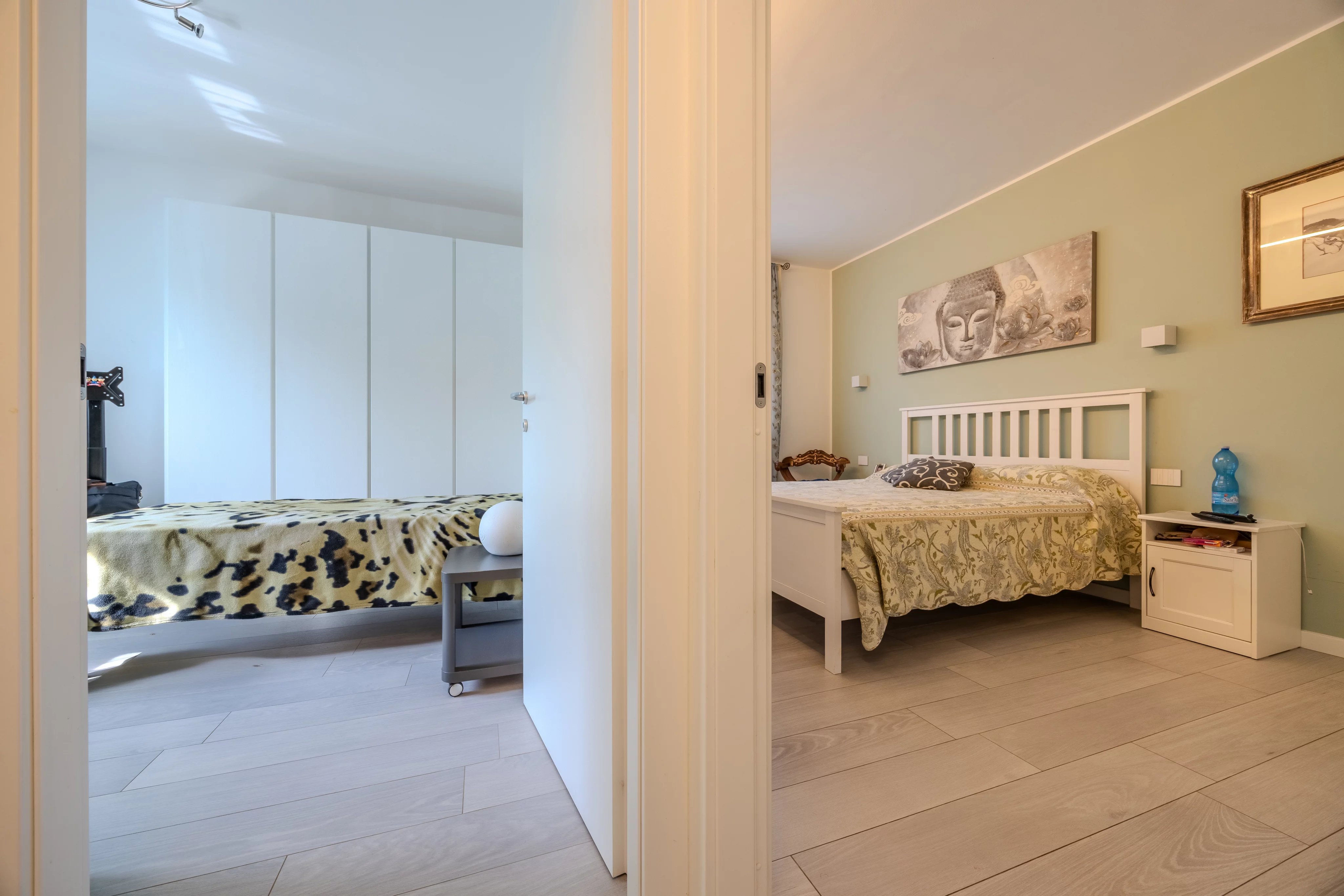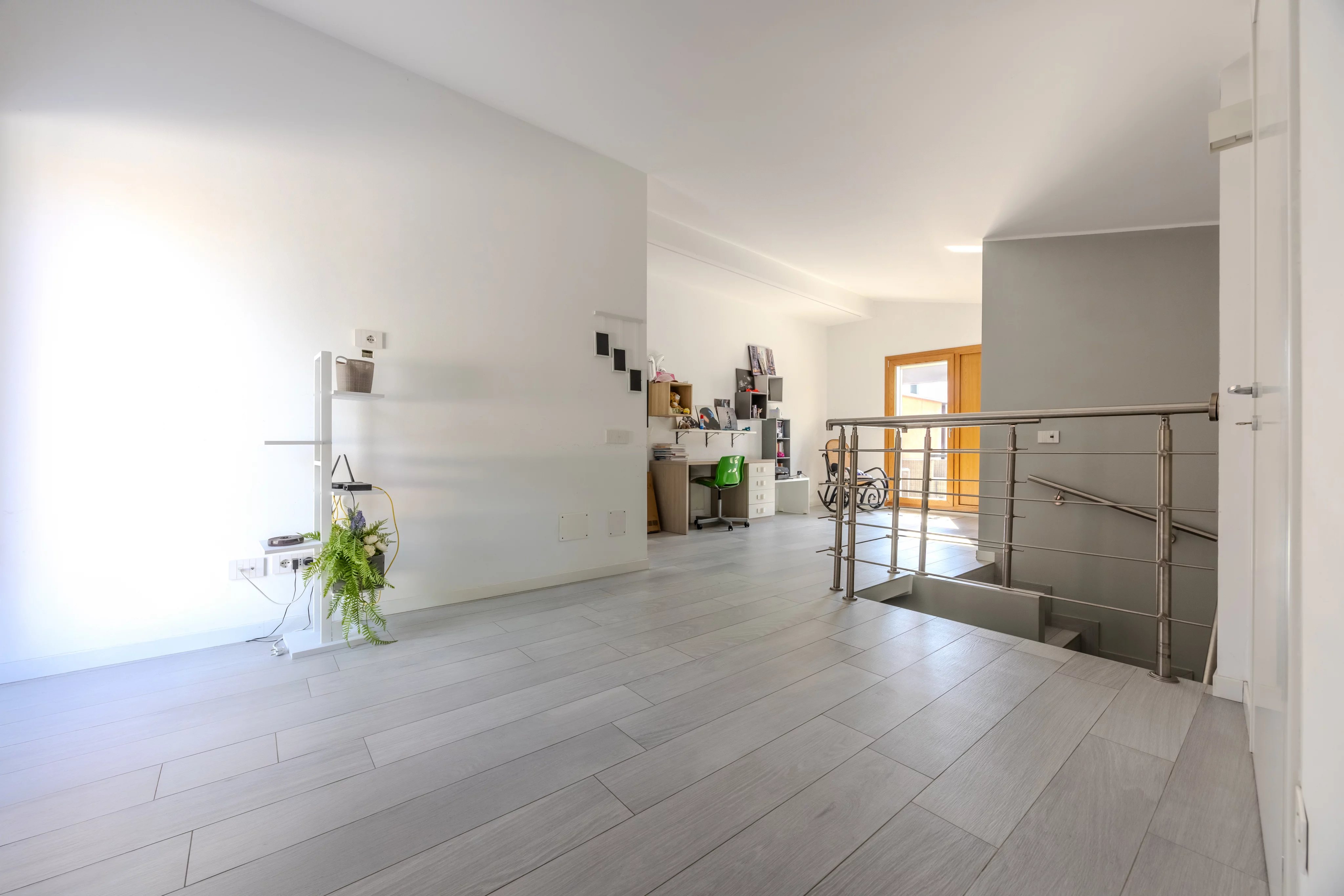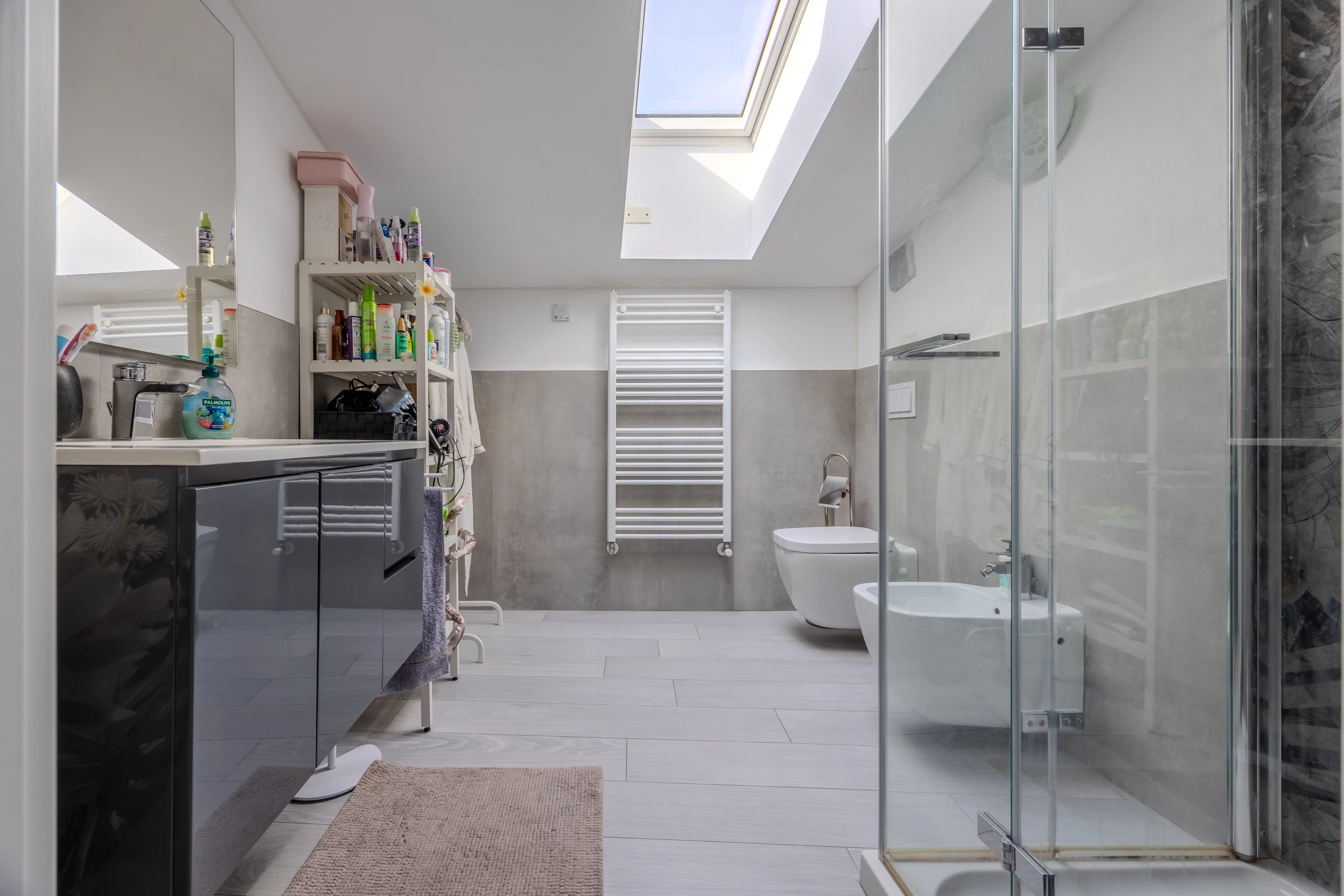 Una comoda scala in muratura conduce al piano mansardato, dove troviamo un secondo bagno, un locale lavanderia e un’ampia zona open space con accesso a due splendidi terrazzi di generose dimensioni, ideale per realizzare una terza camera, uno studio o una zona relax.