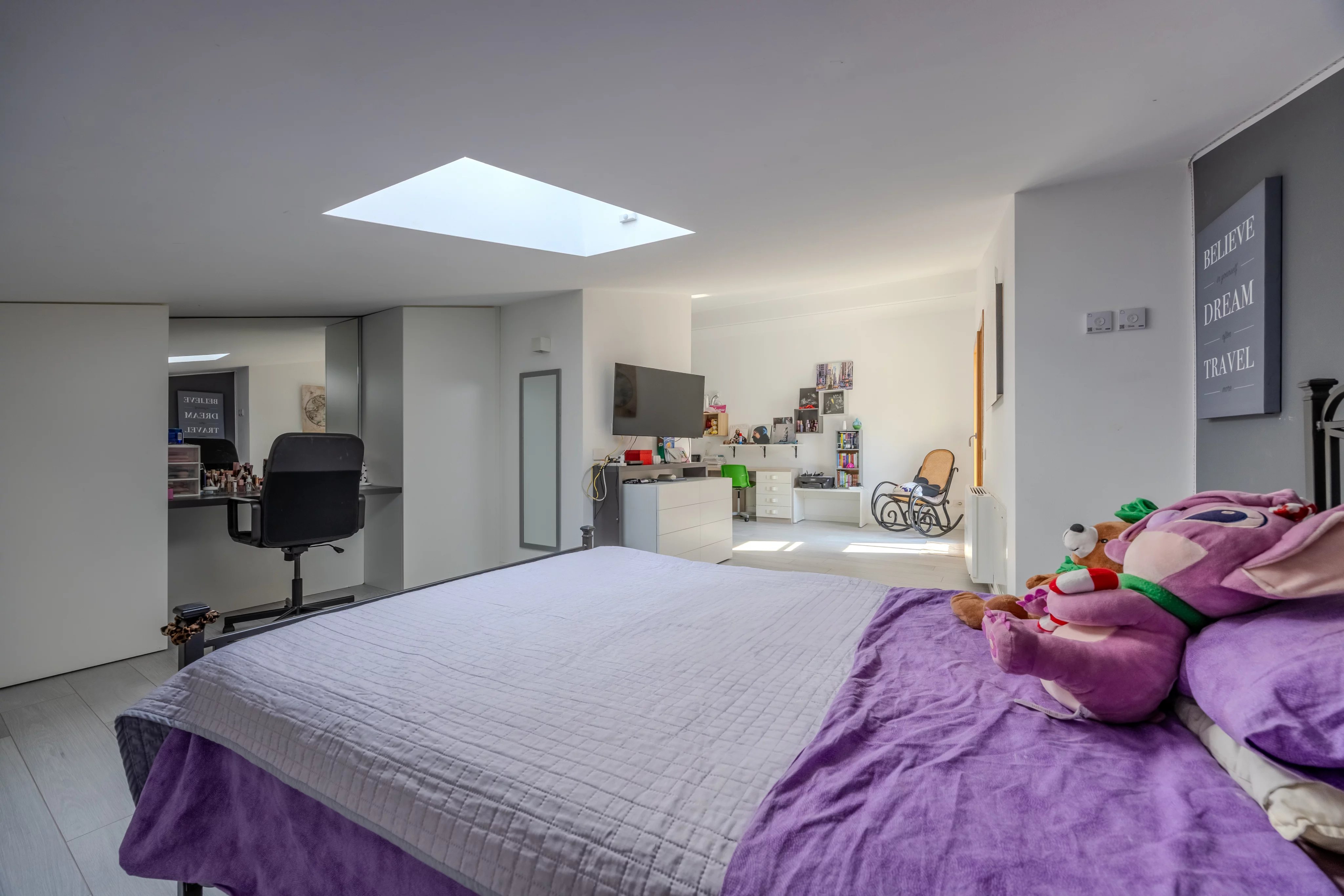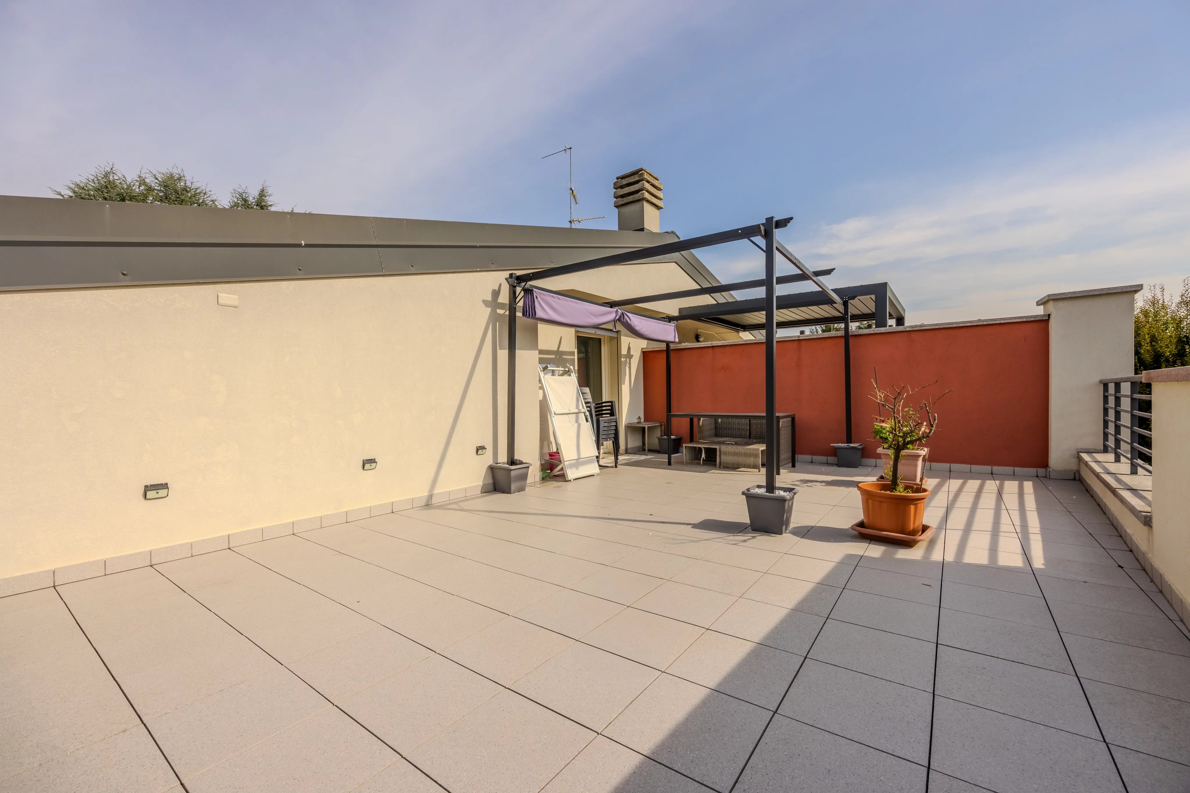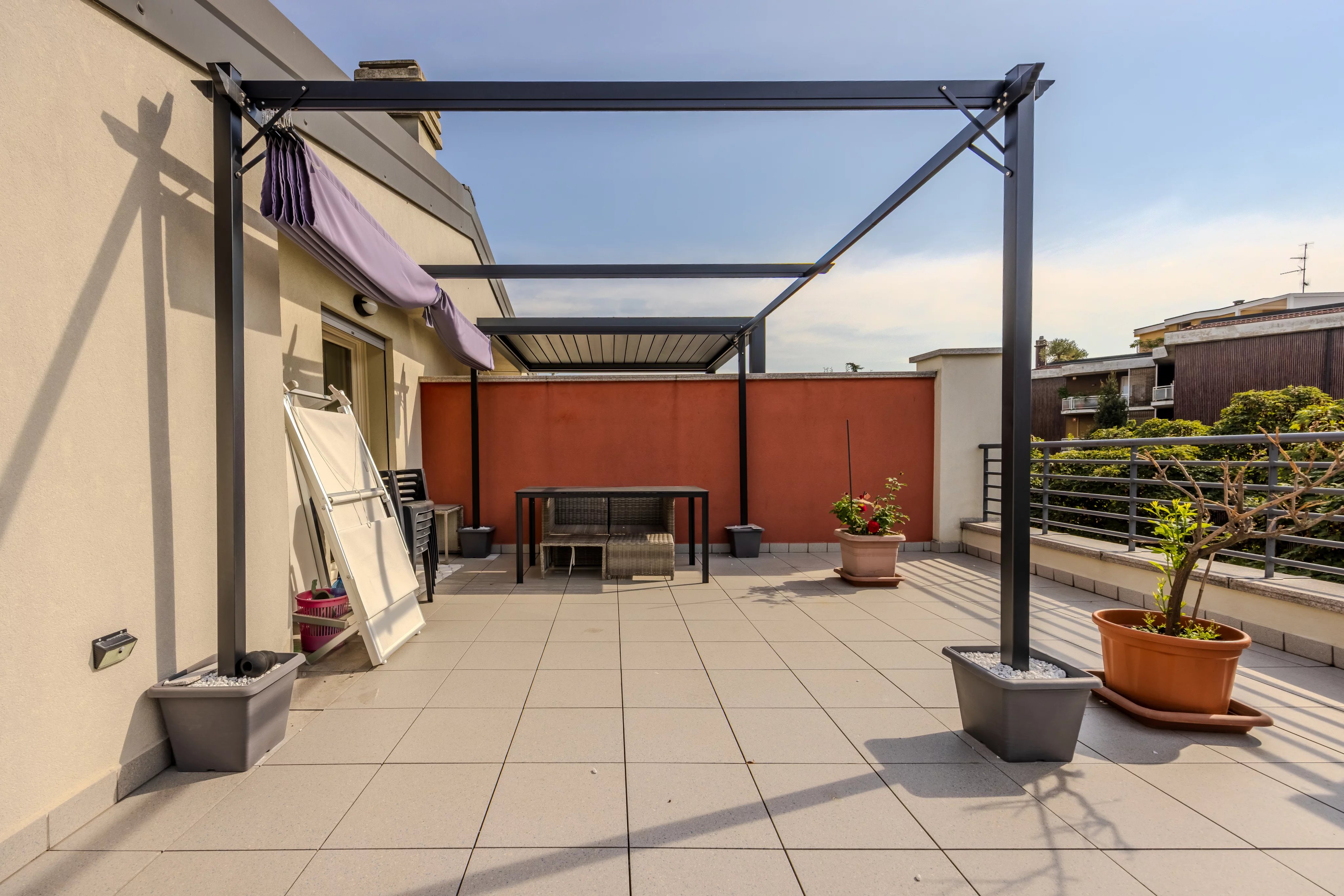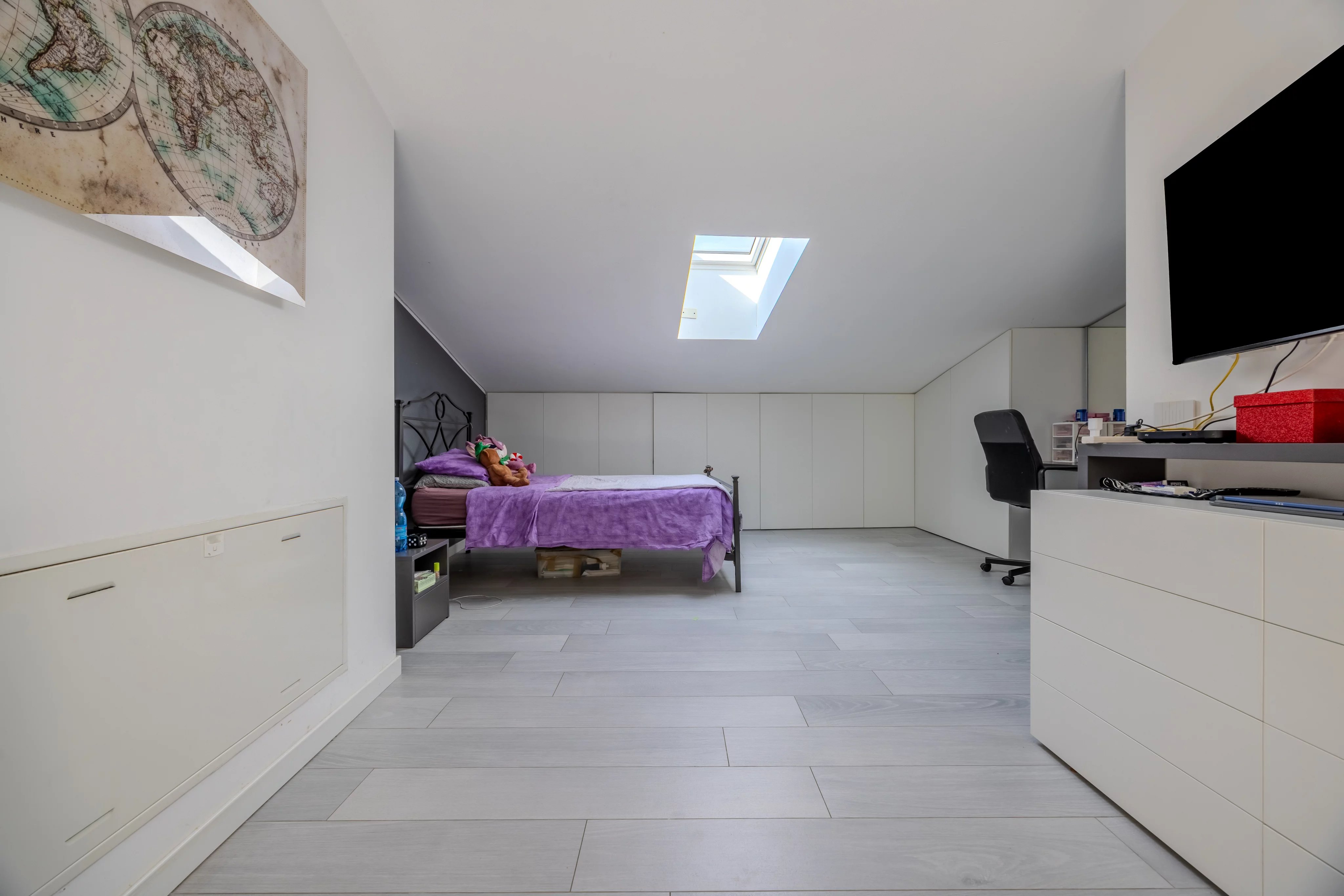 Una comoda scala in muratura conduce al piano mansardato, dove troviamo un secondo bagno, un locale lavanderia e un’ampia zona open space con accesso a due splendidi terrazzi di generose dimensioni, ideale per realizzare una terza camera, uno studio o una zona relax.