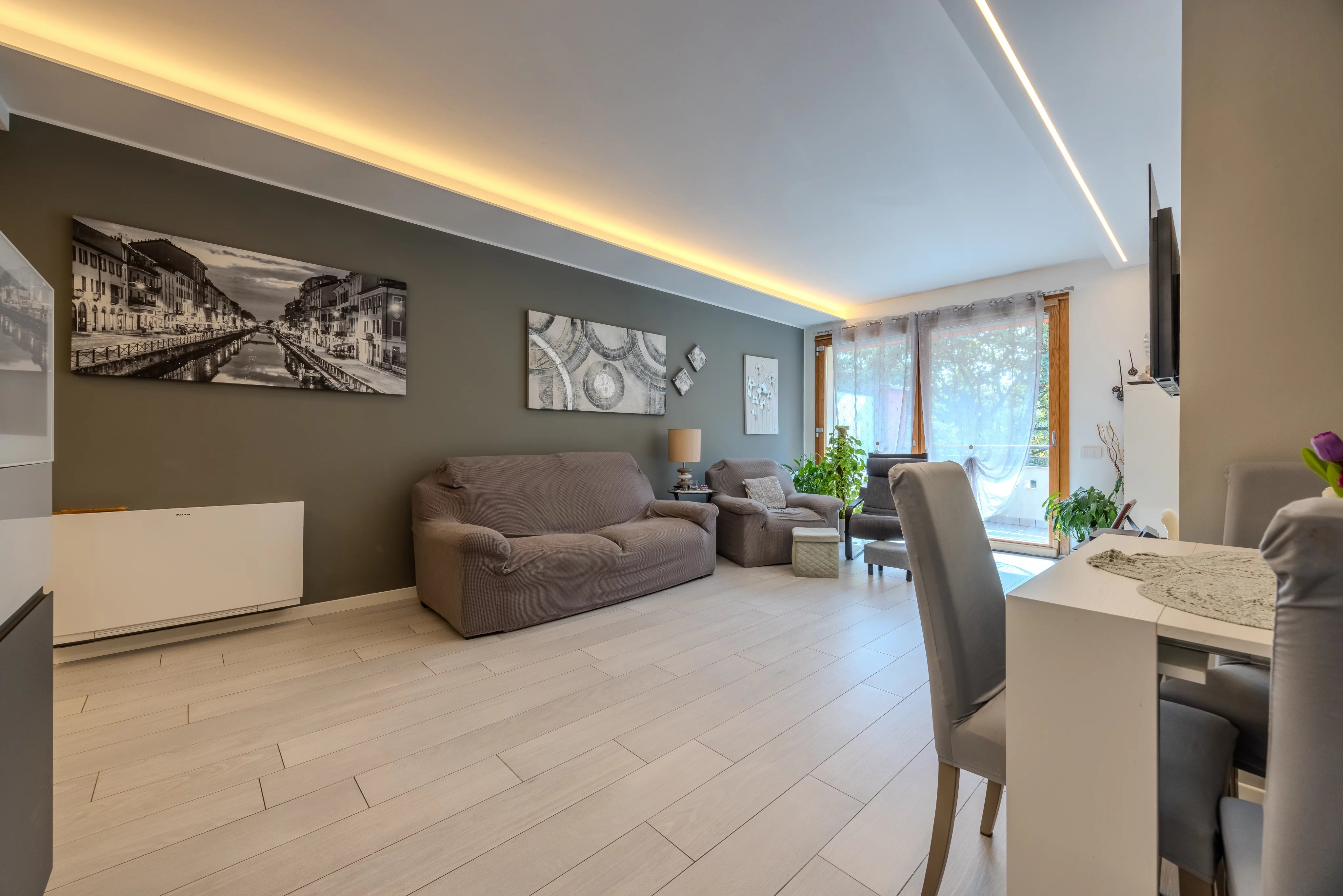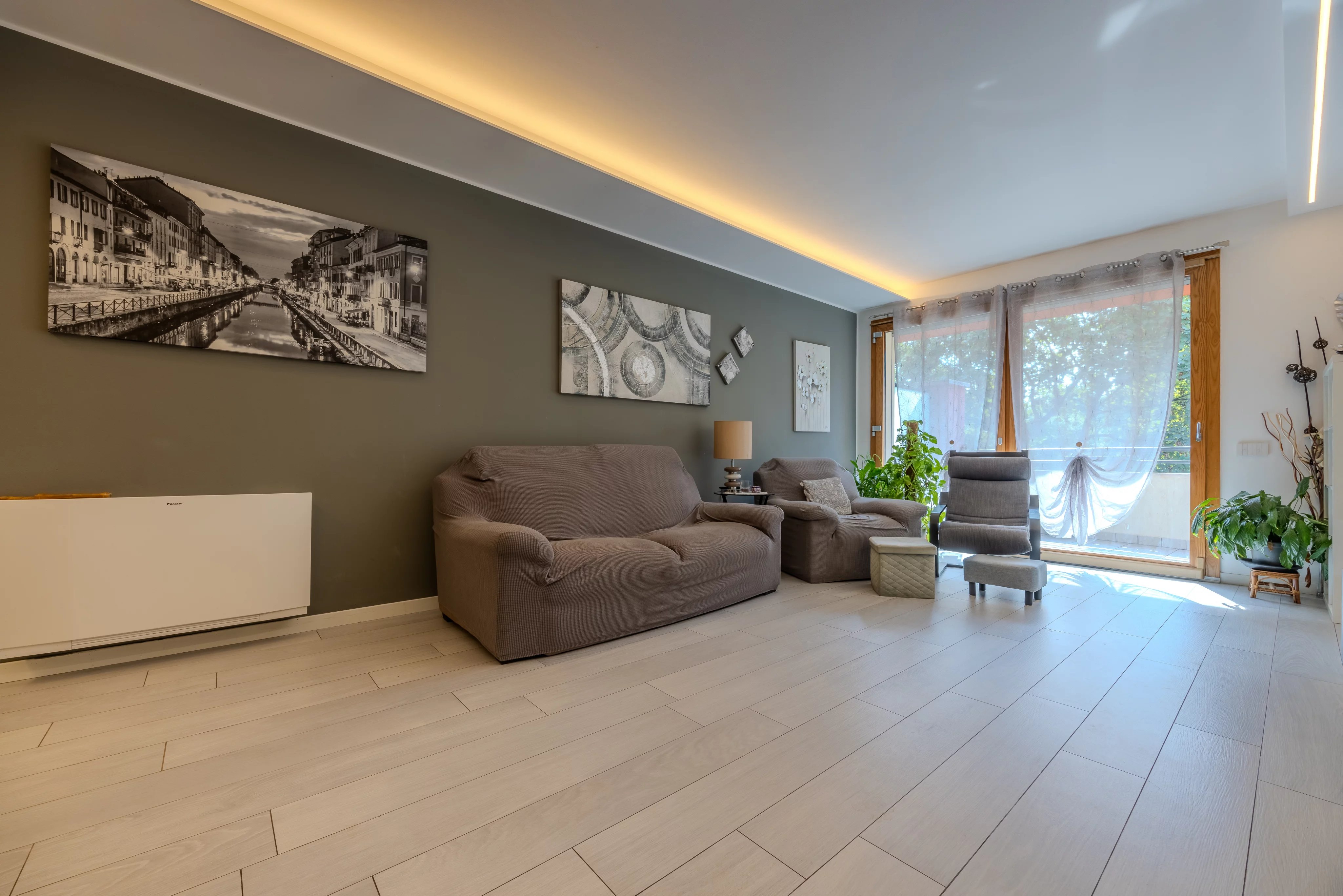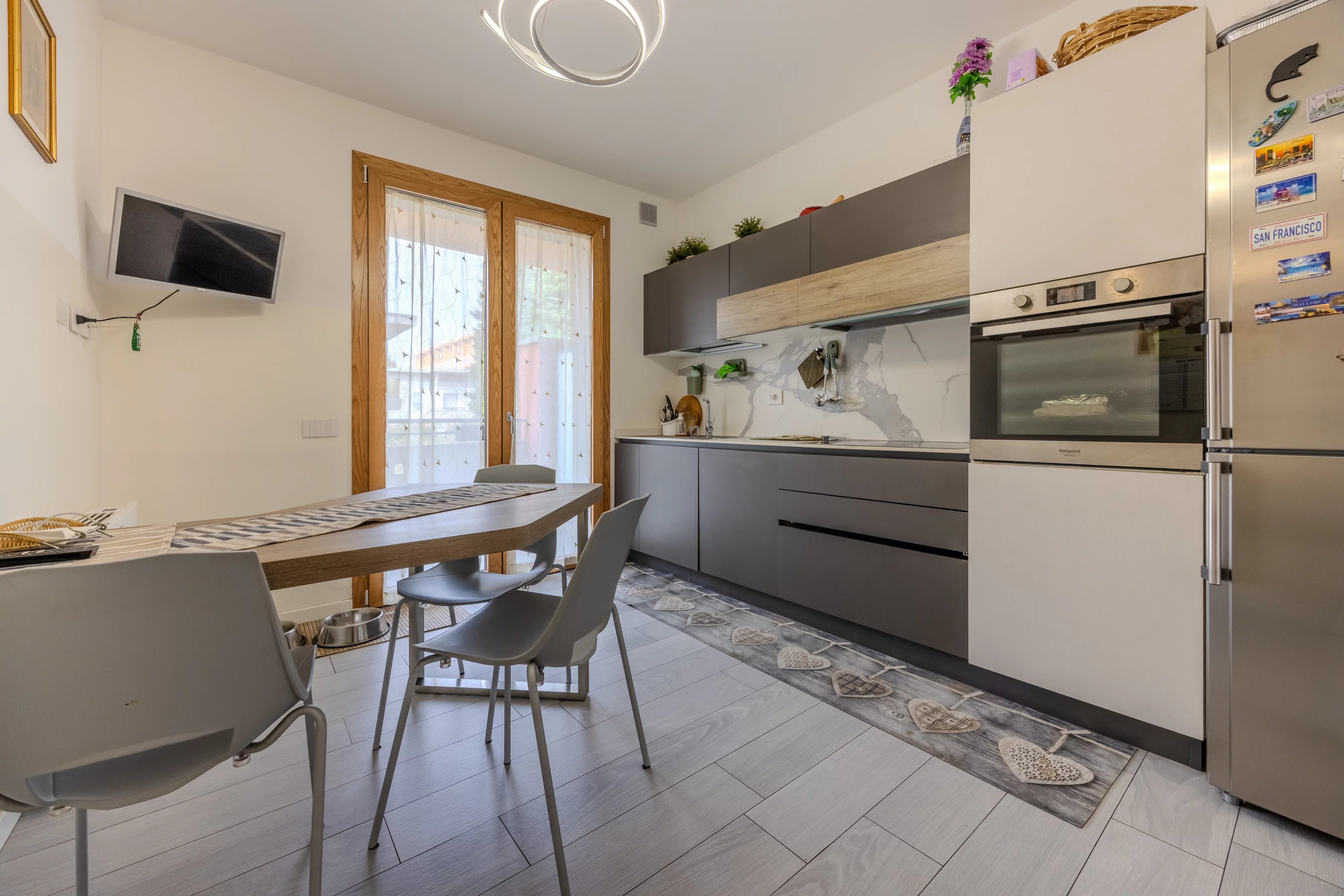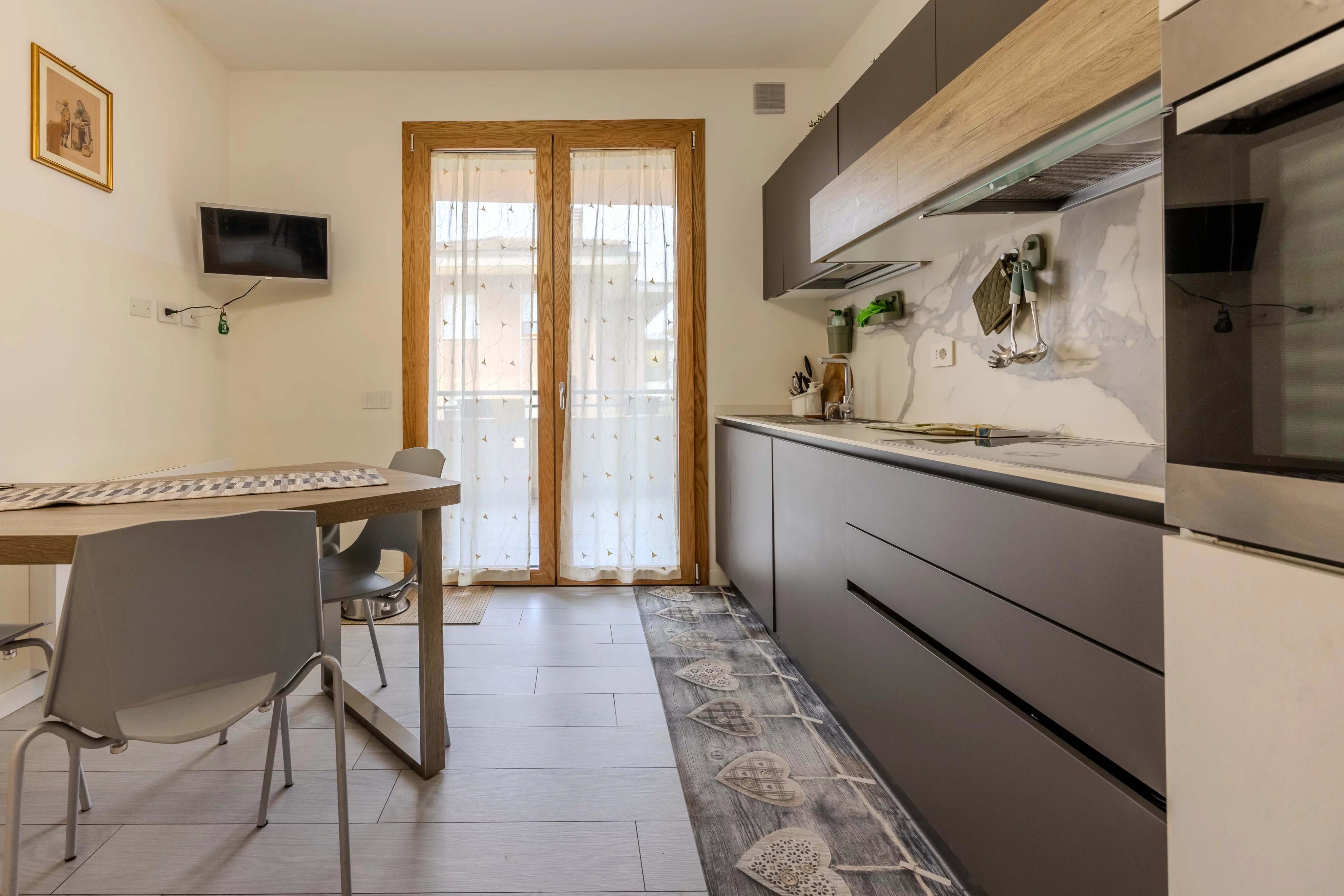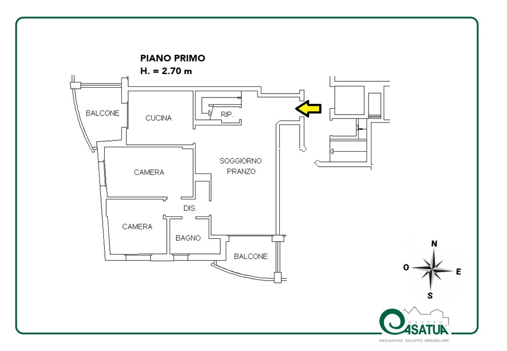 L’immobile, luminoso e rifinito con cura, si sviluppa al primo piano con un ampio soggiorno, cucina abitabile, due camere da letto, un bagno finestrato e due terrazzini vivibili.