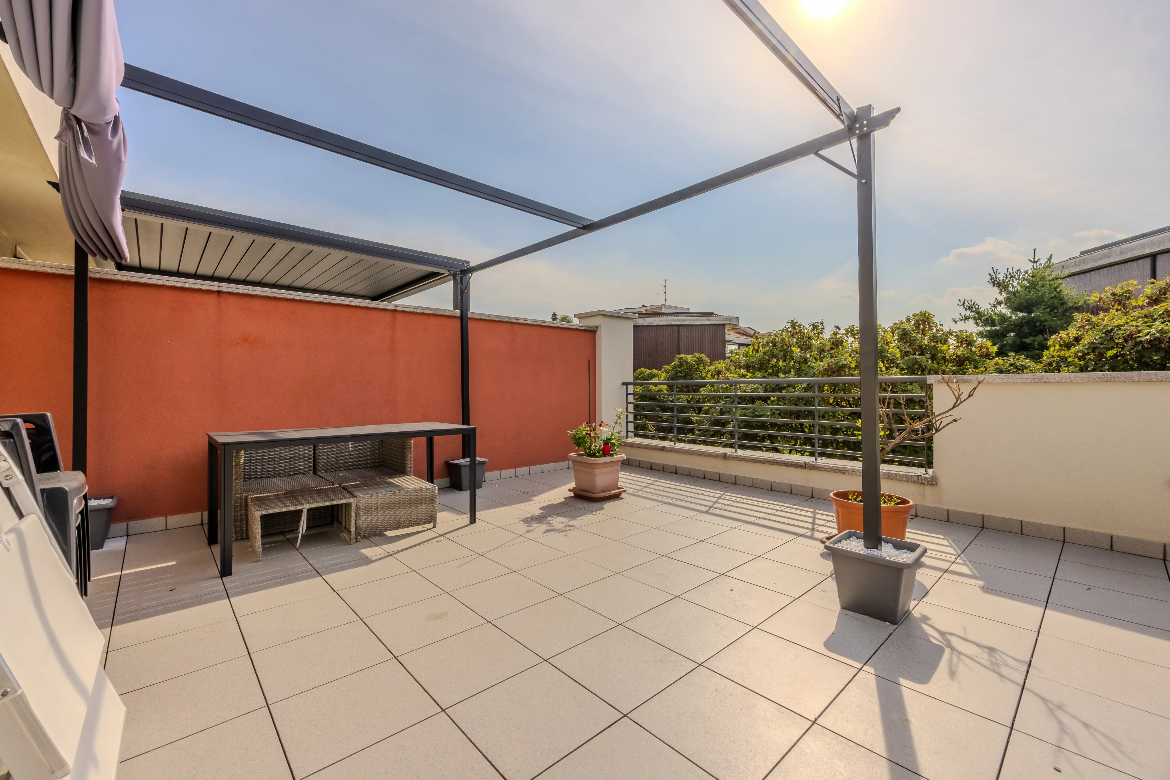 In esclusiva, proponiamo la vendita di un prestigioso attico su due livelli, situato all’interno di un elegante e recente contesto del 2013, in classe energetica A1.