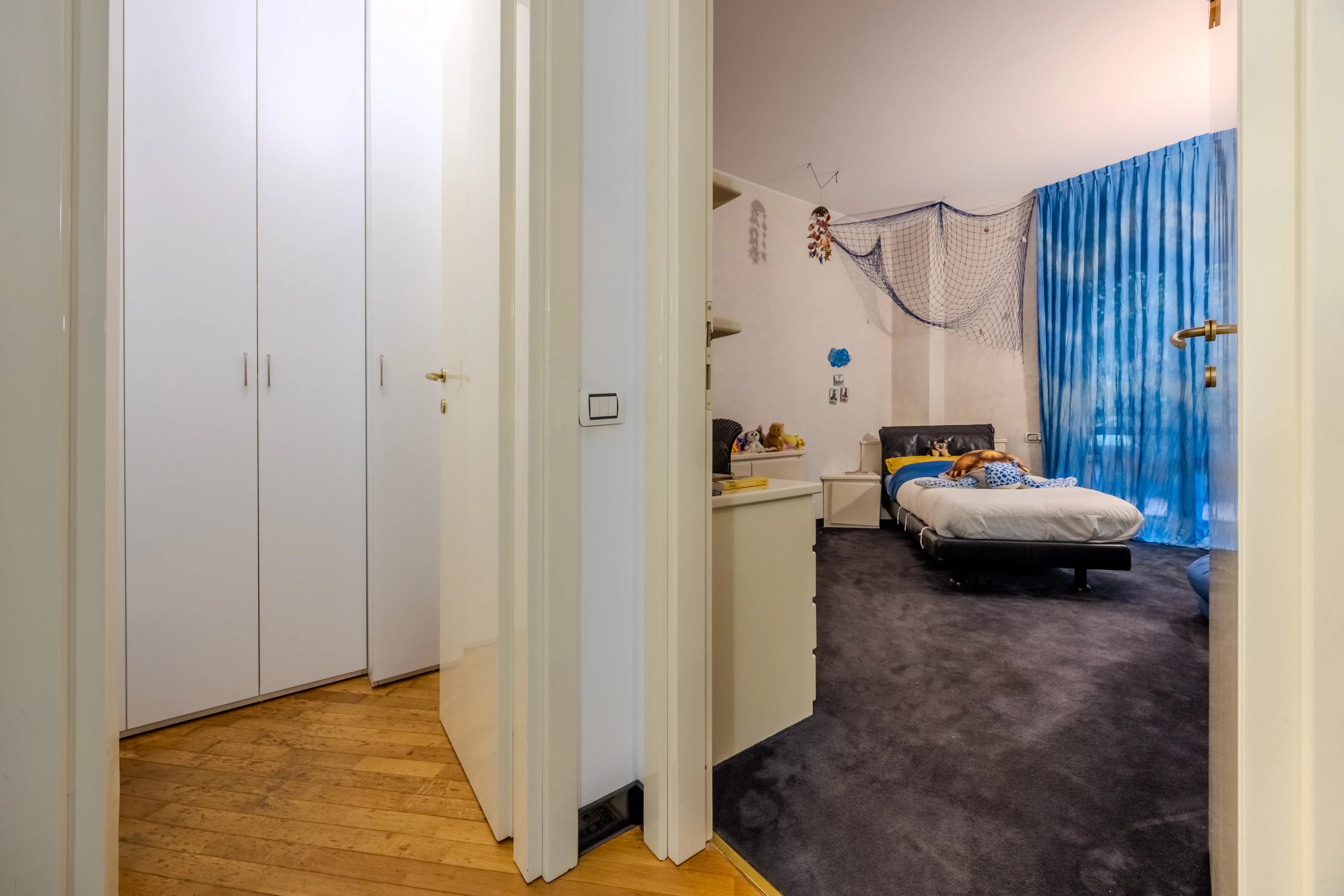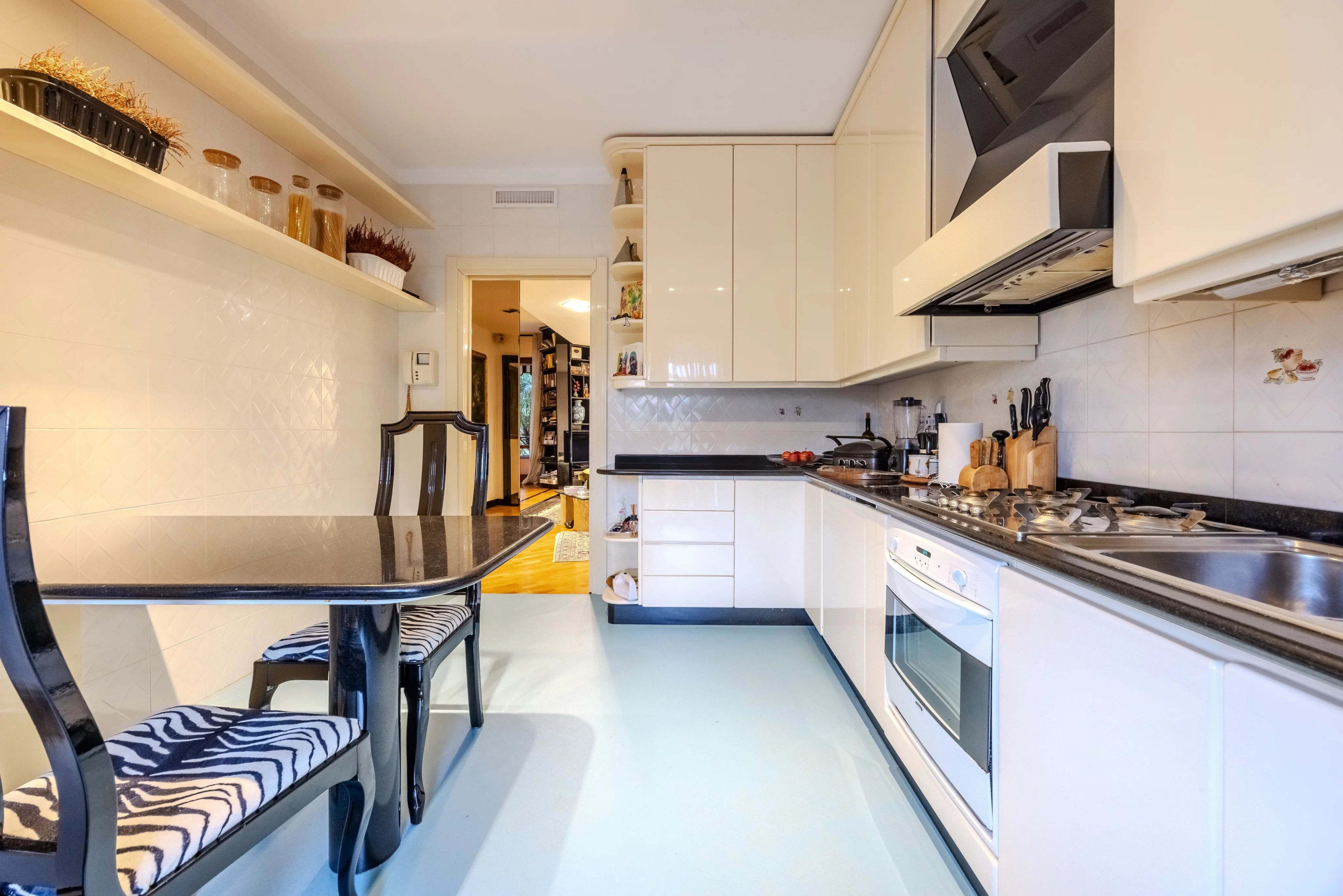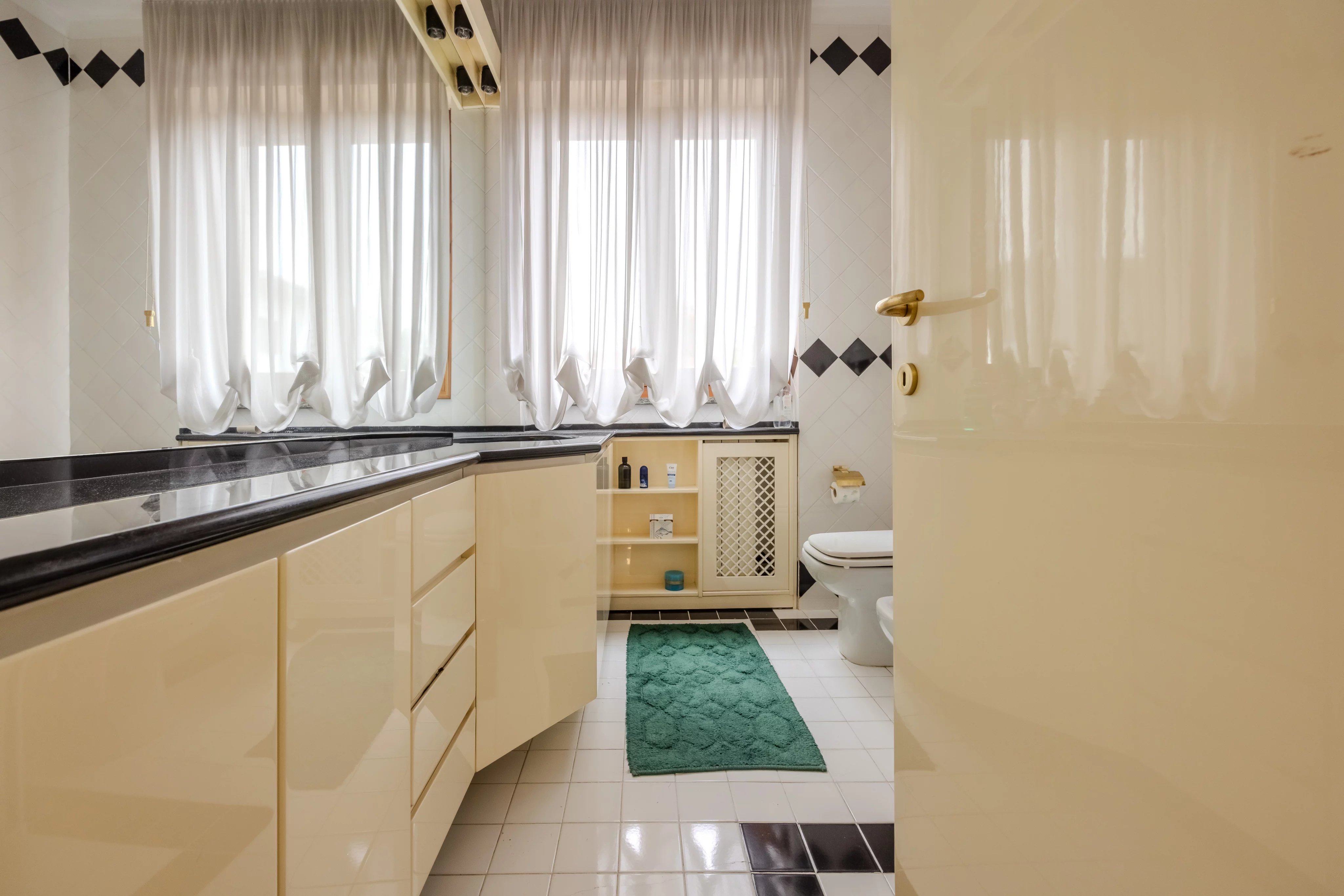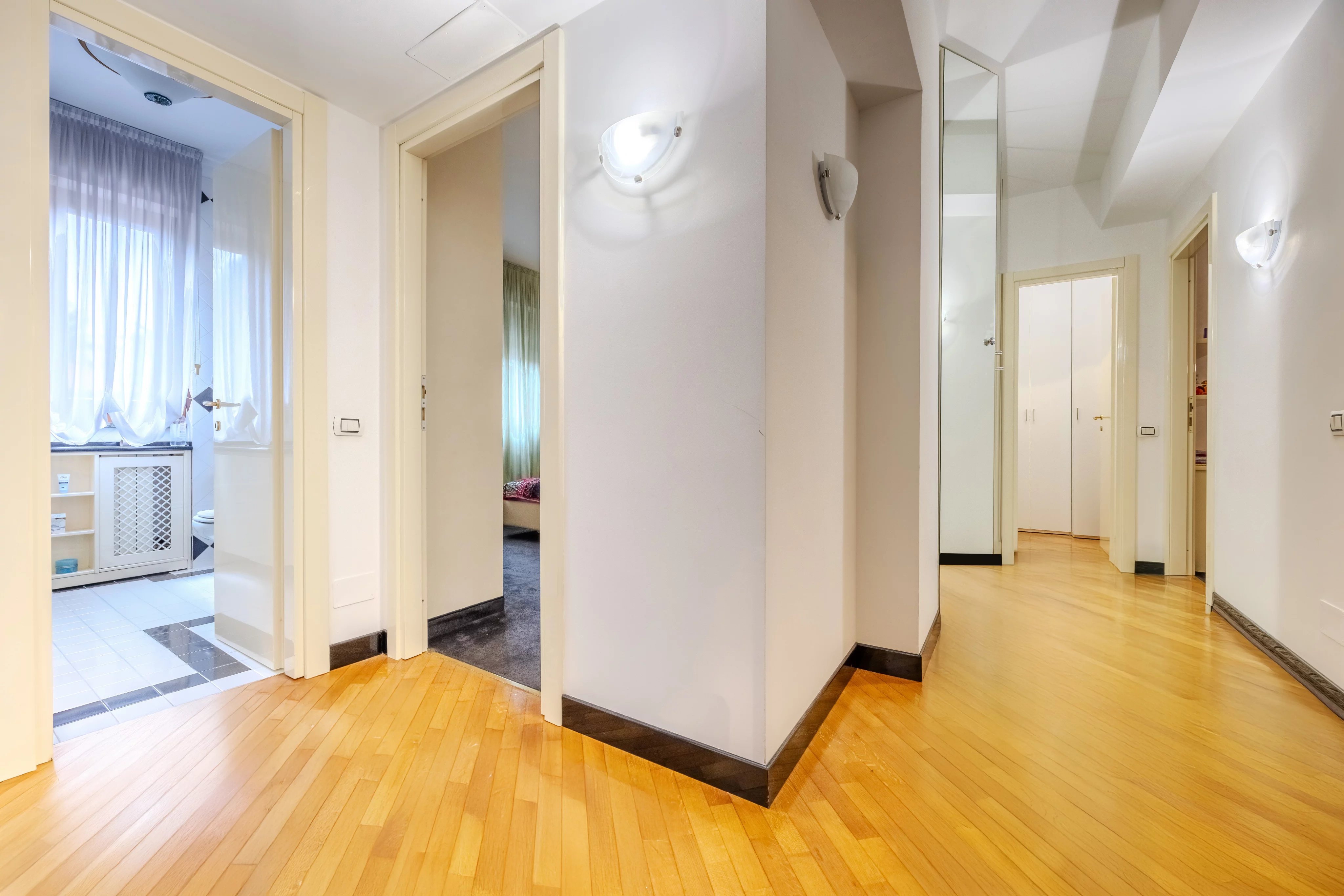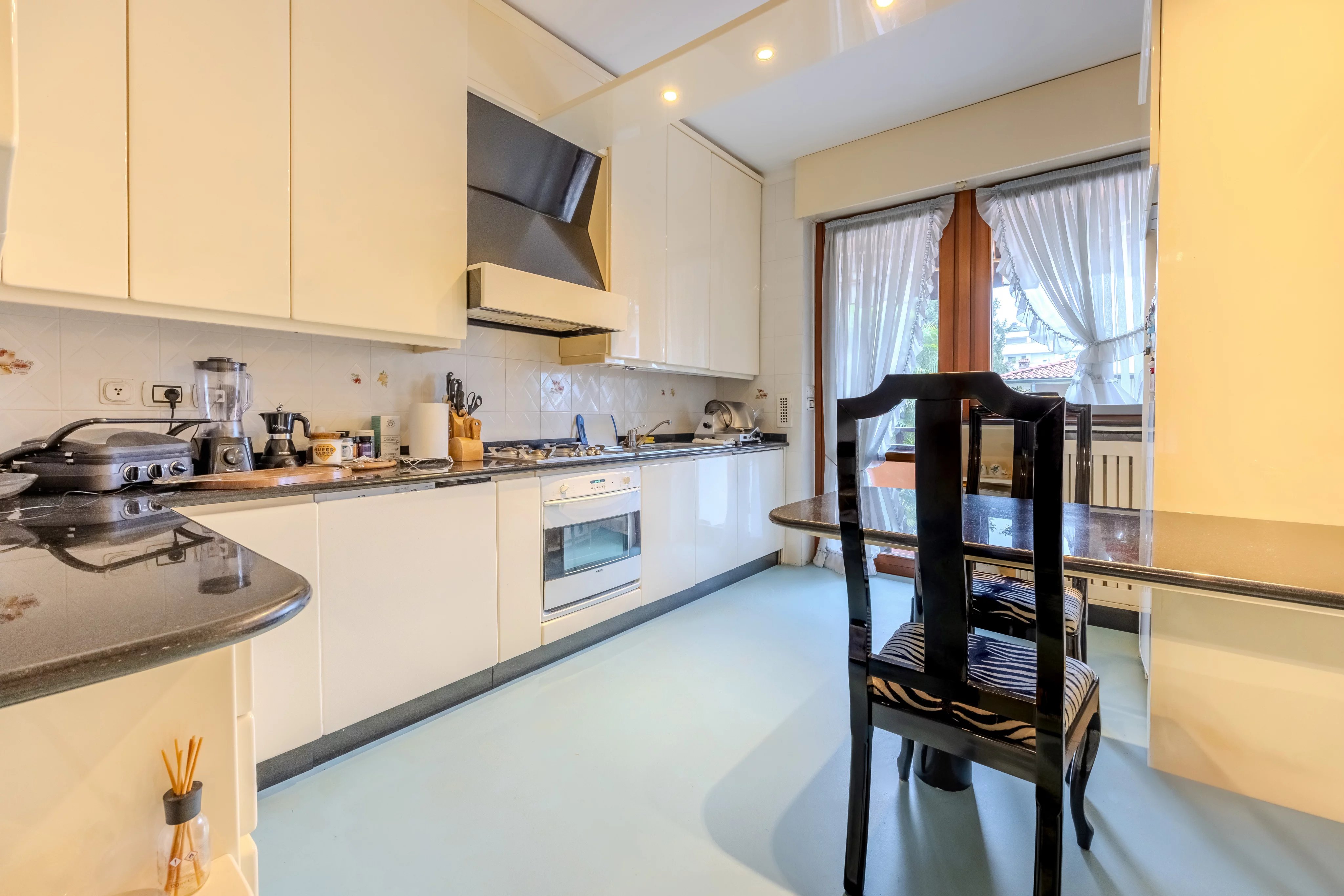 L'immobile è composto da un salone doppio con accesso diretto al terrazzo immerso nella tranquillità del parco condominiale, ampia cucina abitabile con comodo balcone di servizio, zona notte con tre spaziose camere da letto, doppi servizi entrambi finestrati e un pratico ripostiglio.