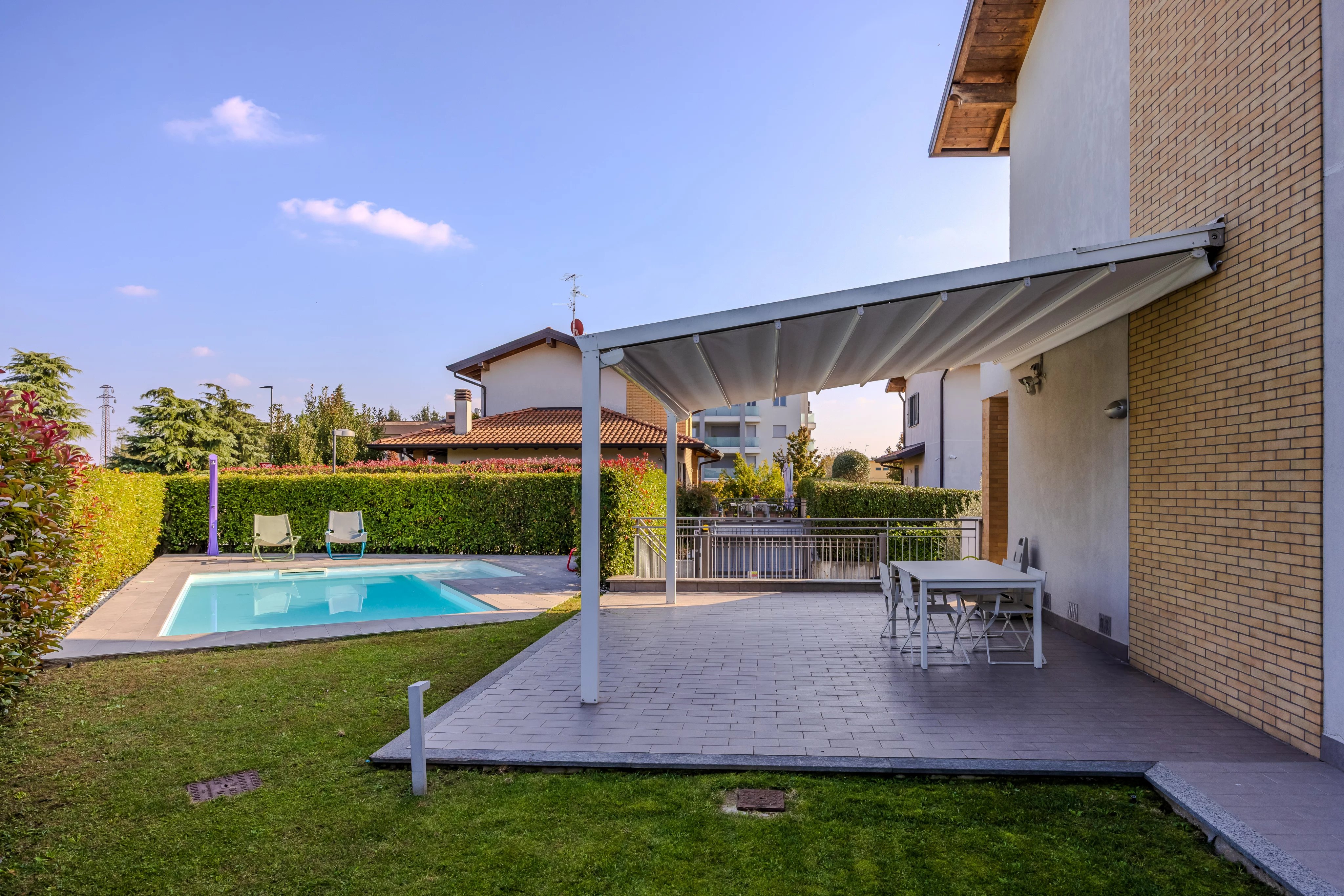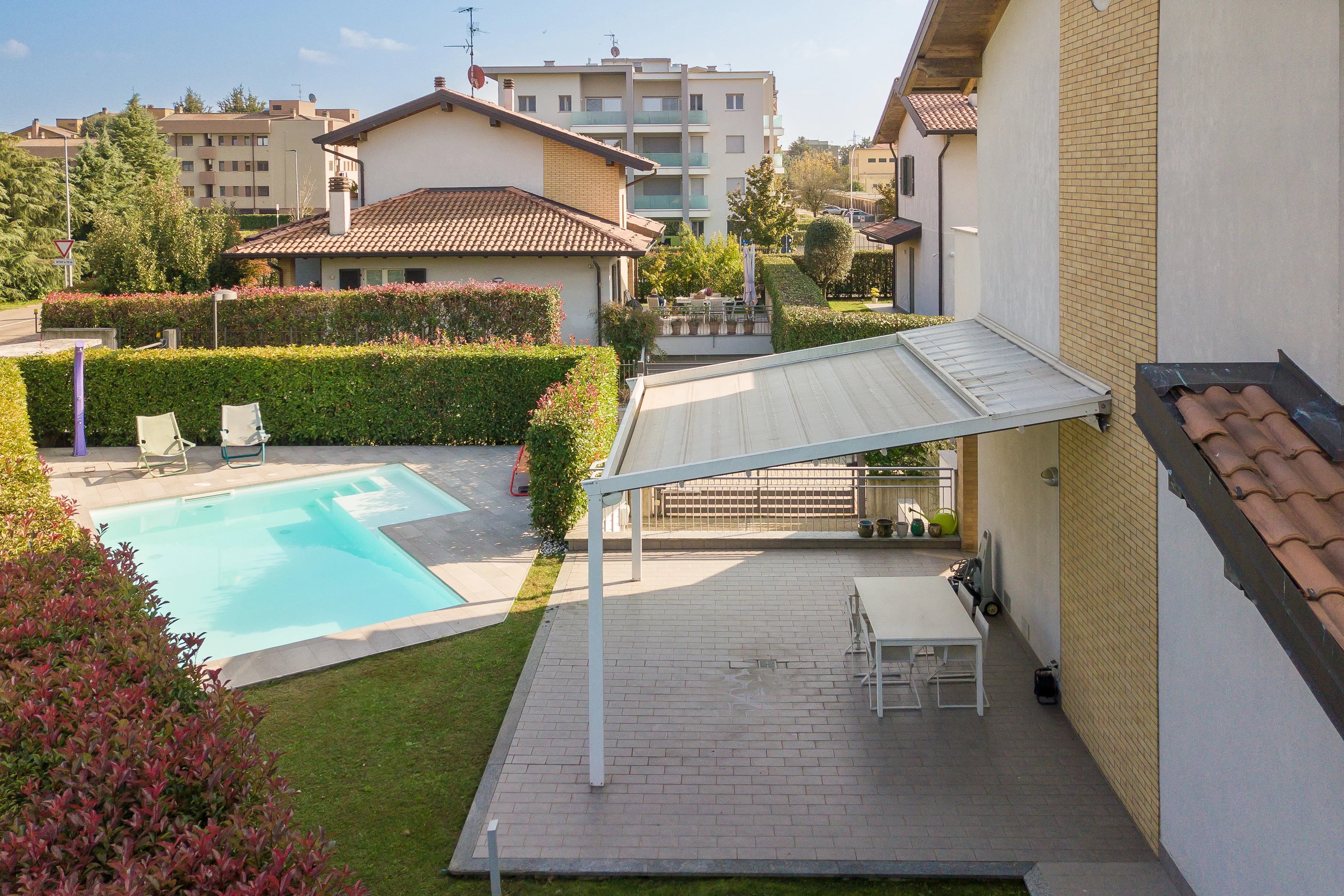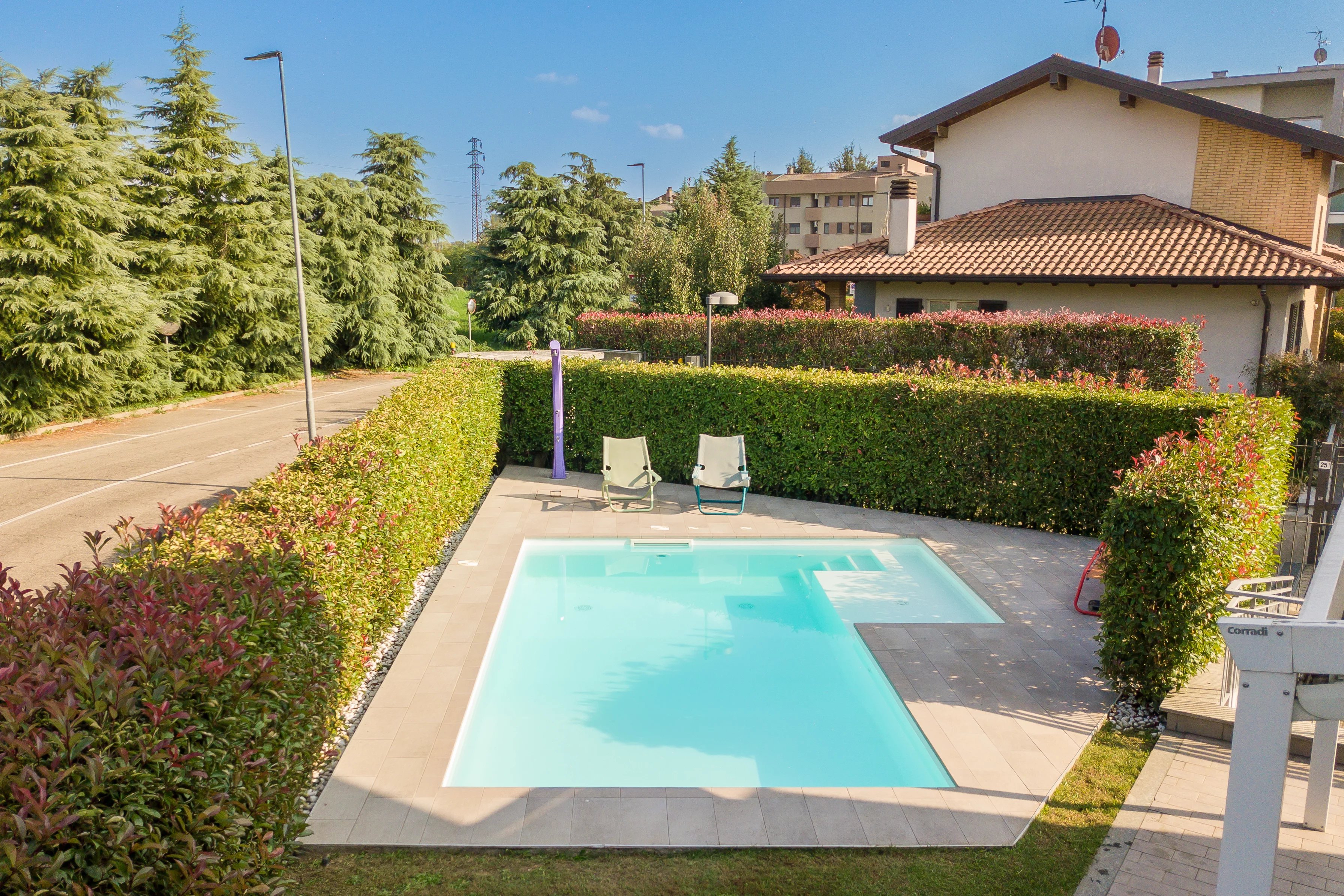 Il punto forte di questa proprietà è l'esterno. I 270 mq di giardino privato sono un'oasi verde, dominata da una splendida PISCINA che promette indimenticabili momenti di relax e divertimento estivo.