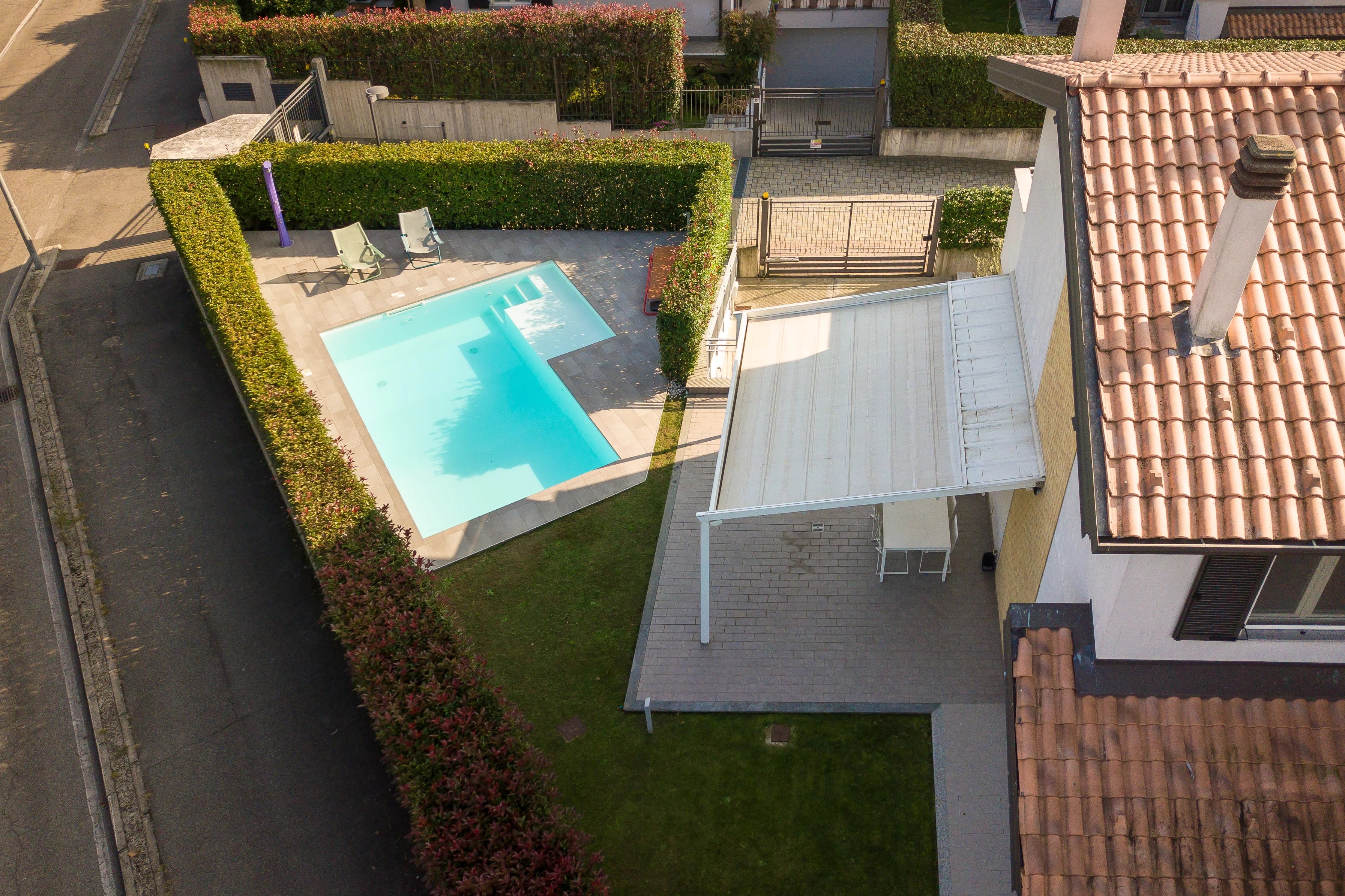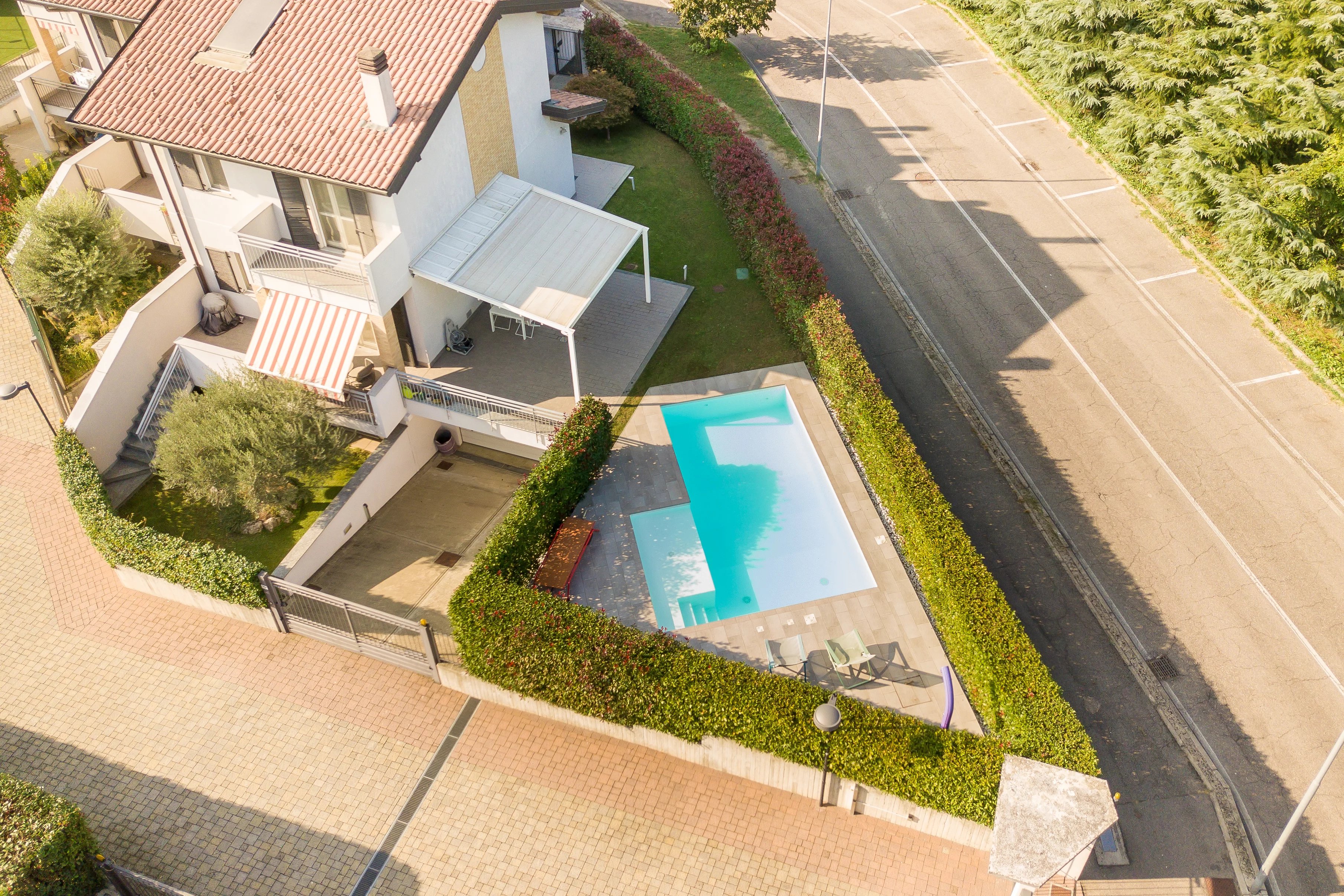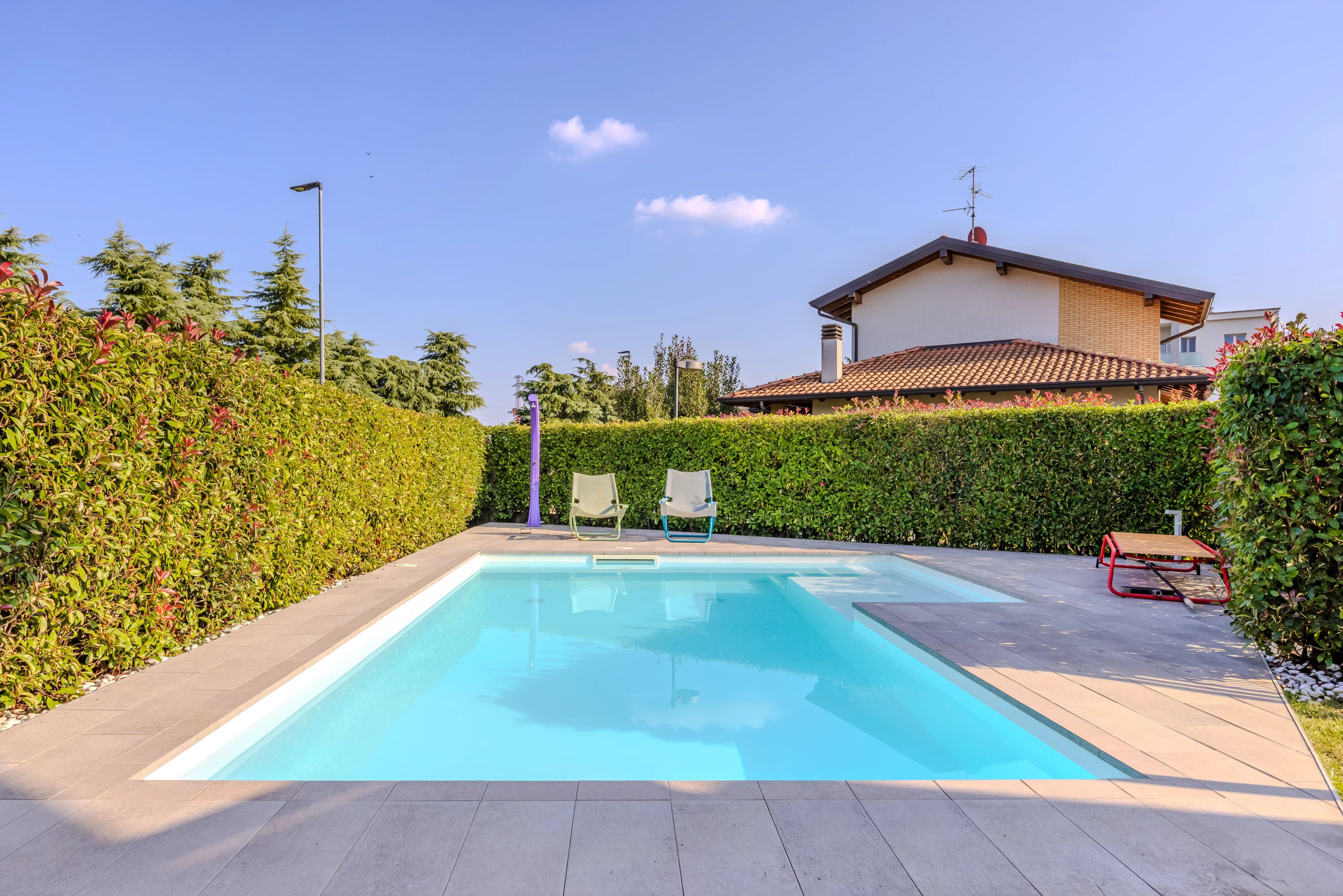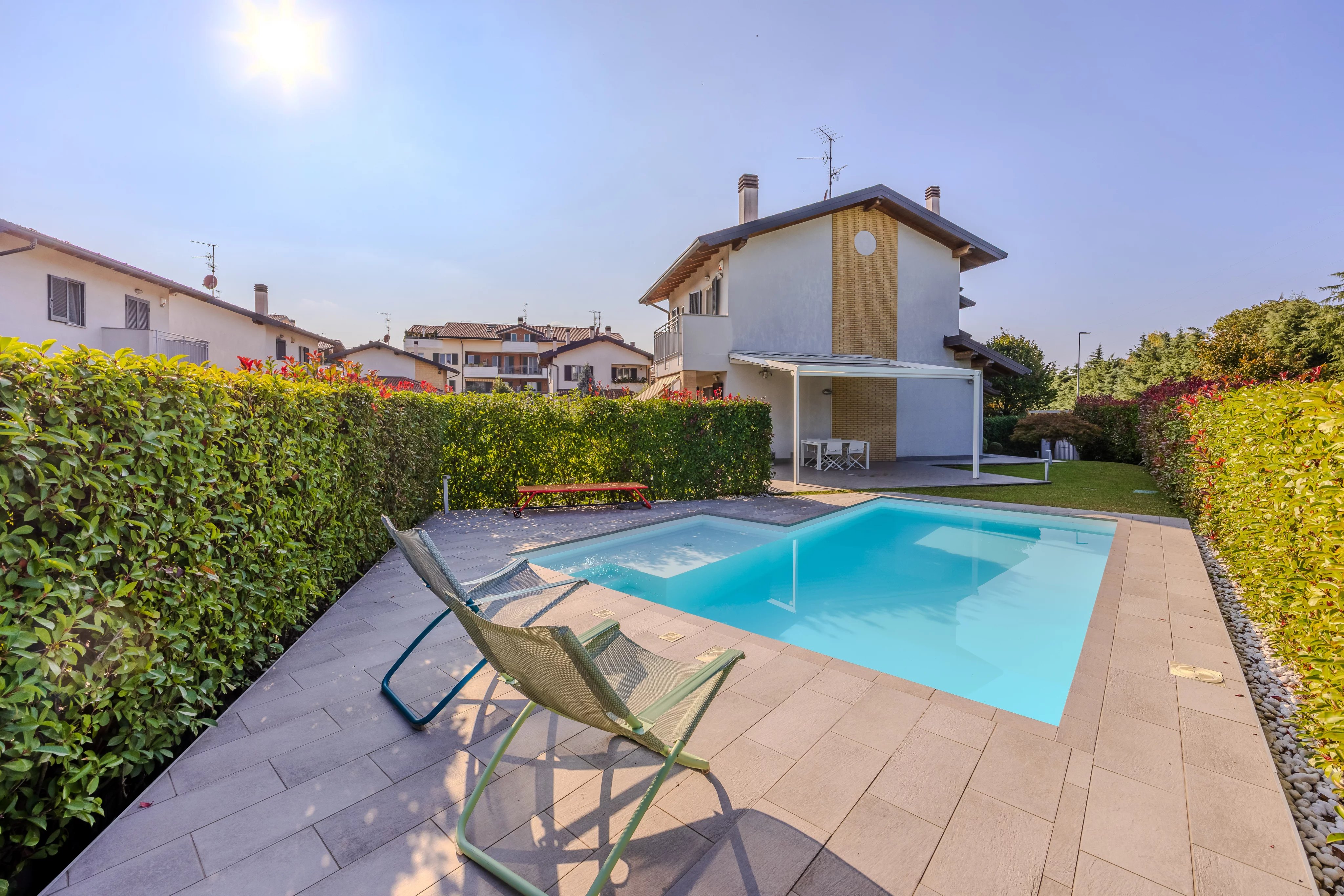 Il punto forte di questa proprietà è l'esterno. I 270 mq di giardino privato sono un'oasi verde, dominata da una splendida PISCINA che promette indimenticabili momenti di relax e divertimento estivo.