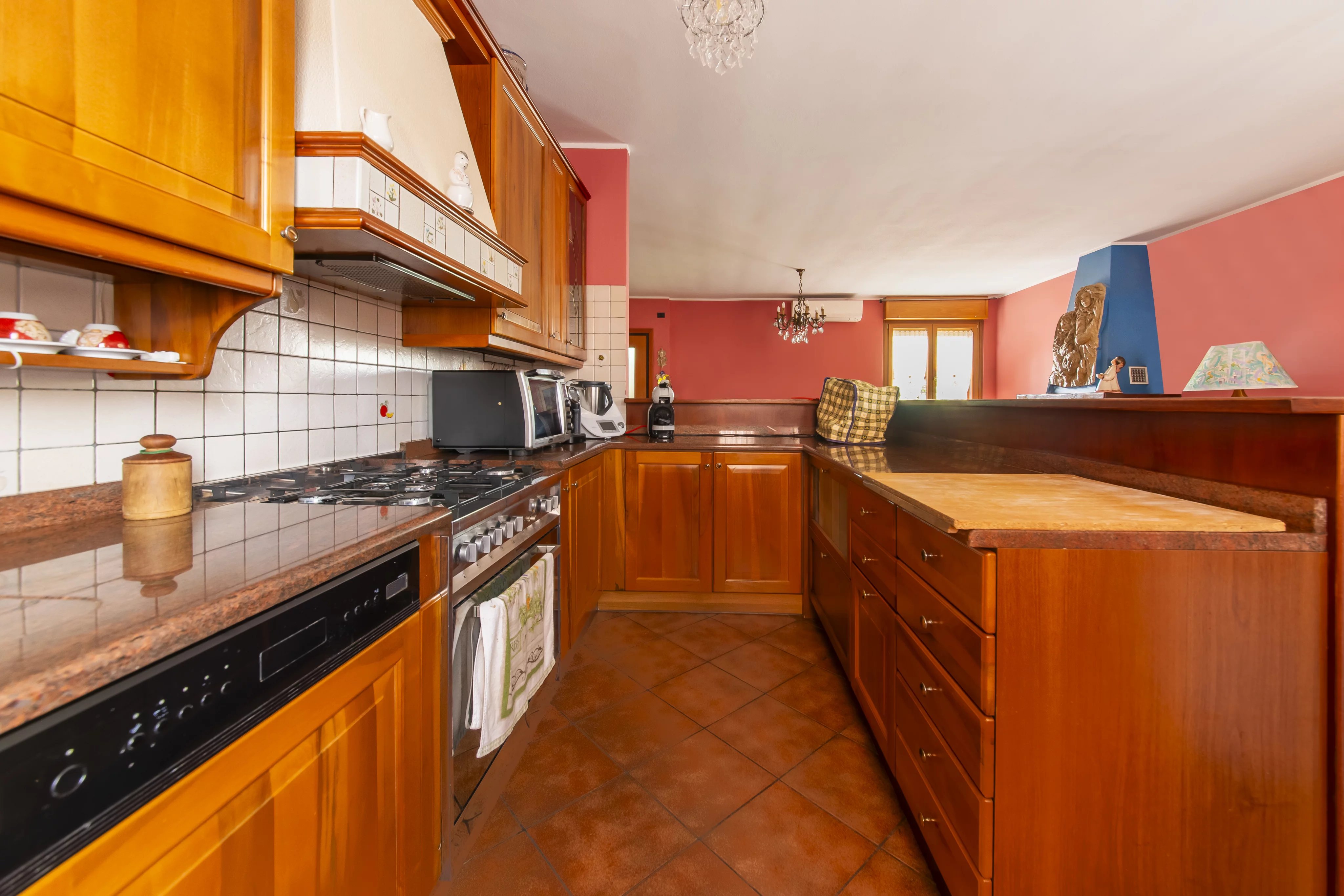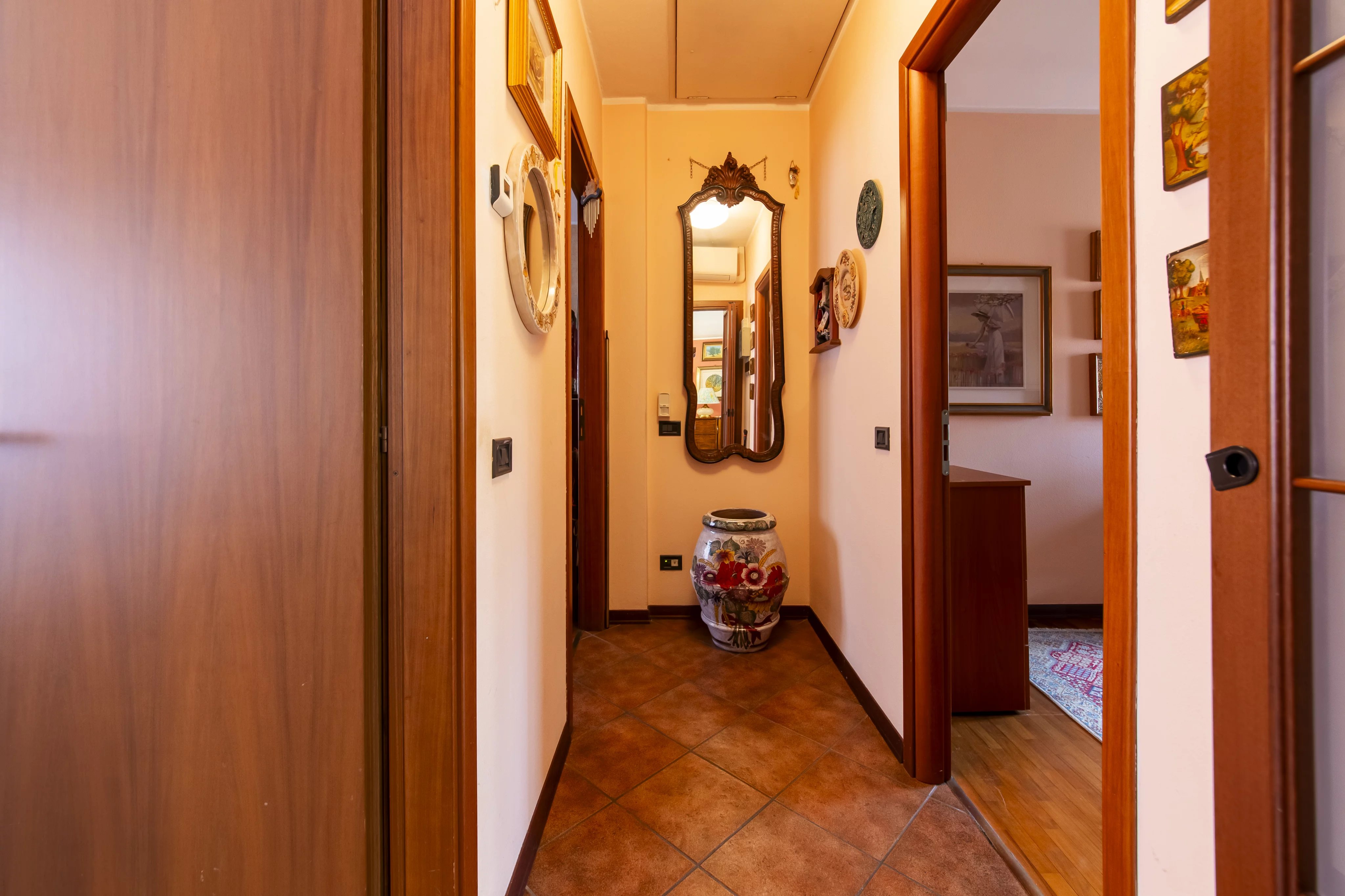 L’appartamento si presenta in ottimo stato di manutenzione e offre dotazioni di qualità come infissi in alluminio esterno e legno interno con doppio vetro, tapparelle elettriche, zanzariere, aria condizionata e pavimentazione in ceramica effetto cotto nella zona living.