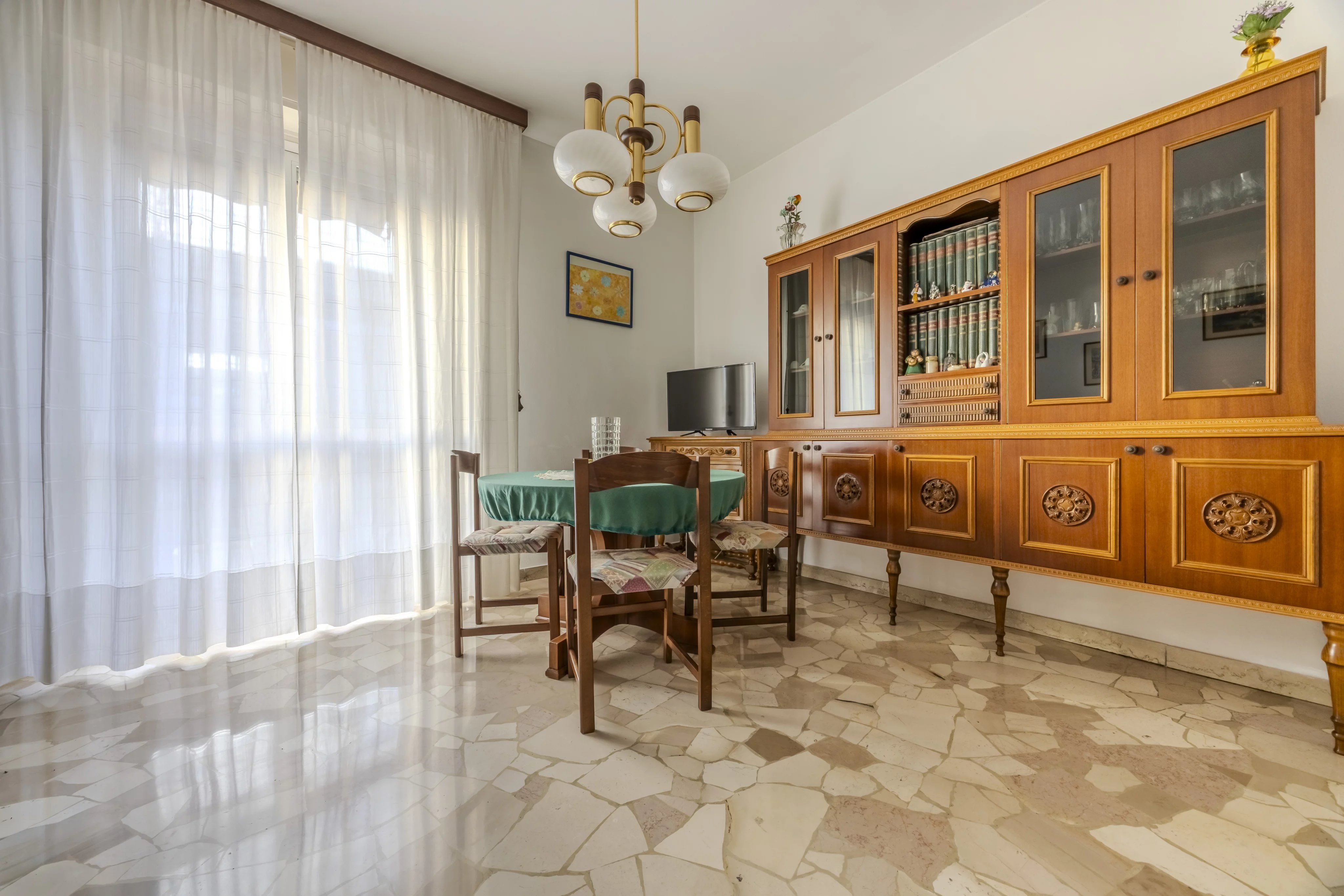 L’immobile si presenta in ordine nel suo stato di manutenzione, con pavimentazione in marmo e infissi in alluminio con doppio vetro.