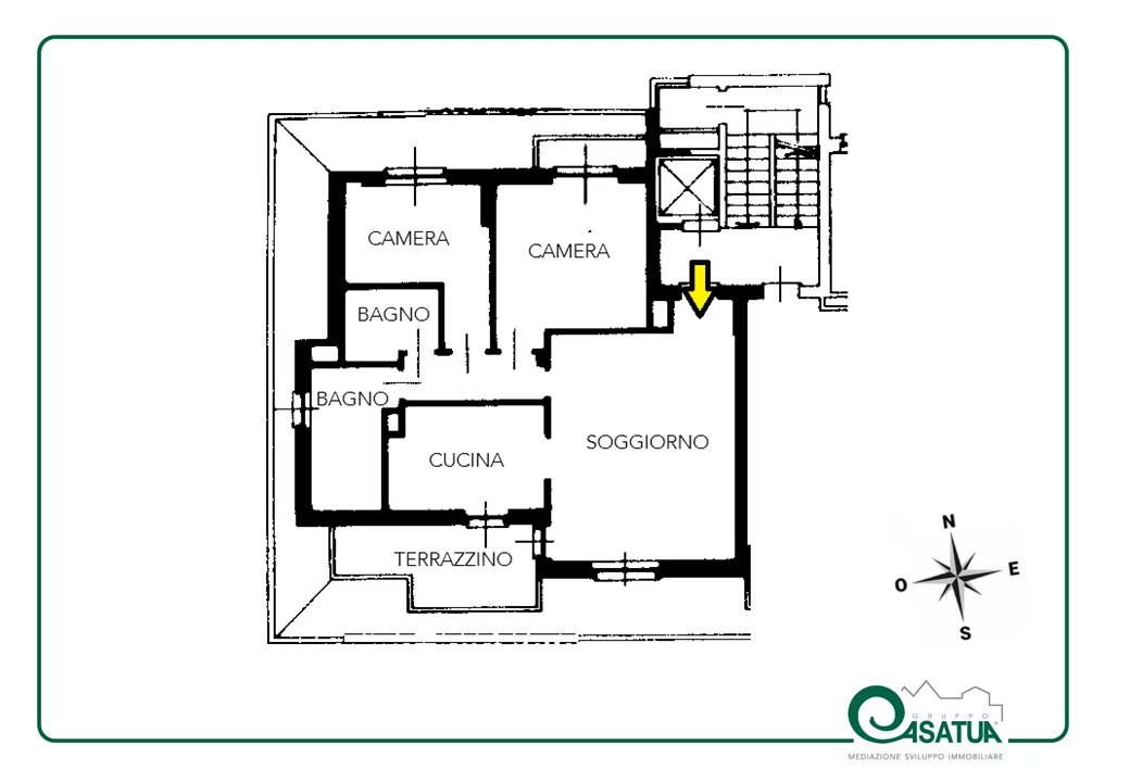 L'appartamento, è composto da zona giorno con ingresso sul soggiorno, cucina abitabile con accesso al terrazzino. La zona notte è composta da due camere da letto e doppi servizi.