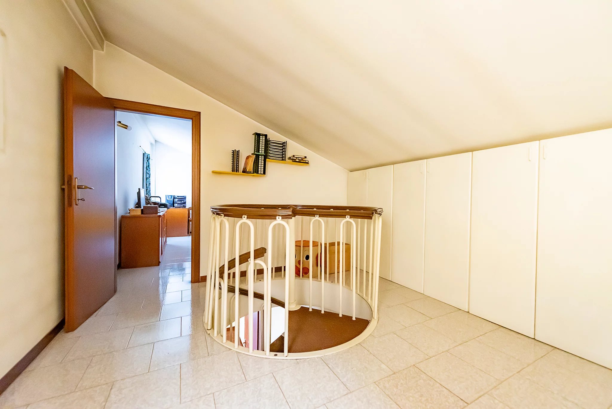 La villa si sviluppa su quattro livelli. Al piano terra si trova un ampio soggiorno molto luminoso, una cucina abitabile, un bagno e l’accesso diretto al giardino privato angolare di circa 120 mq, perfetto per momenti di relax o convivialità all’aperto. Al primo piano è presente la zona notte con tre camere da letto di generose dimensioni e un secondo bagno. La mansarda ospita una quarta camera, una zona hobby e un comodo ripostiglio. Il piano interrato è composto da una spaziosa taverna con camino/stufa, un locale angolo cottura/dispensa una lavanderia e box singolo di proprietà.