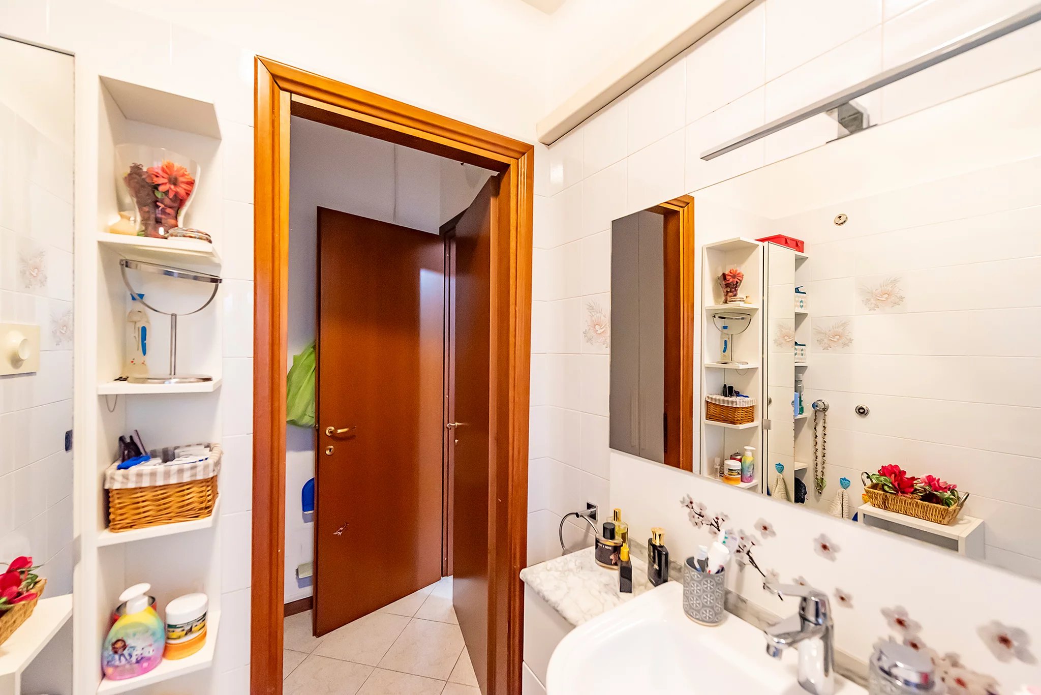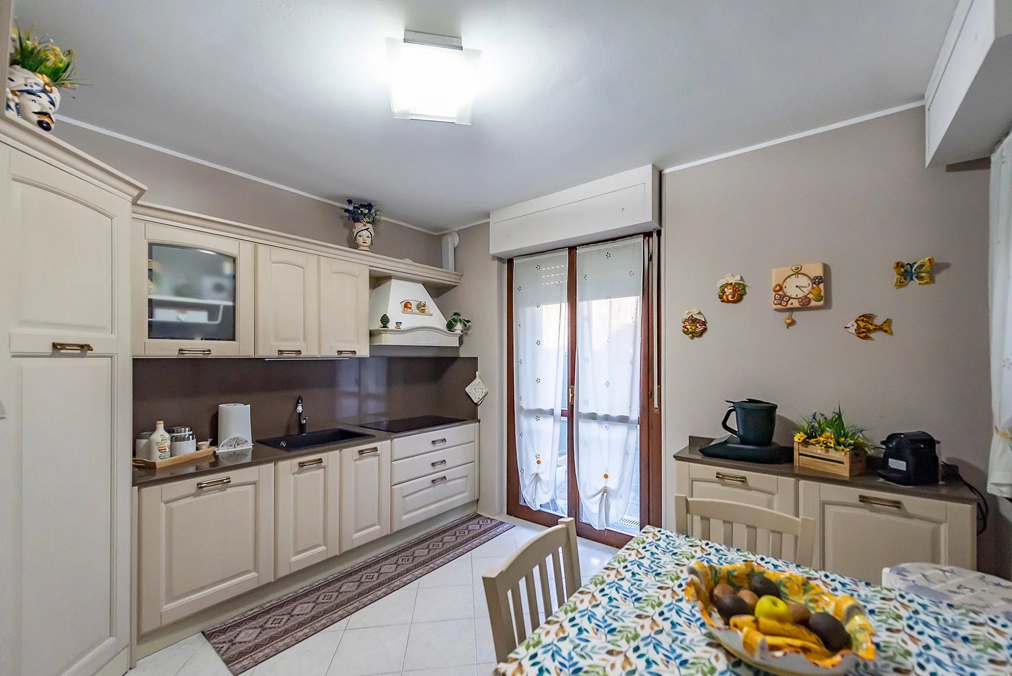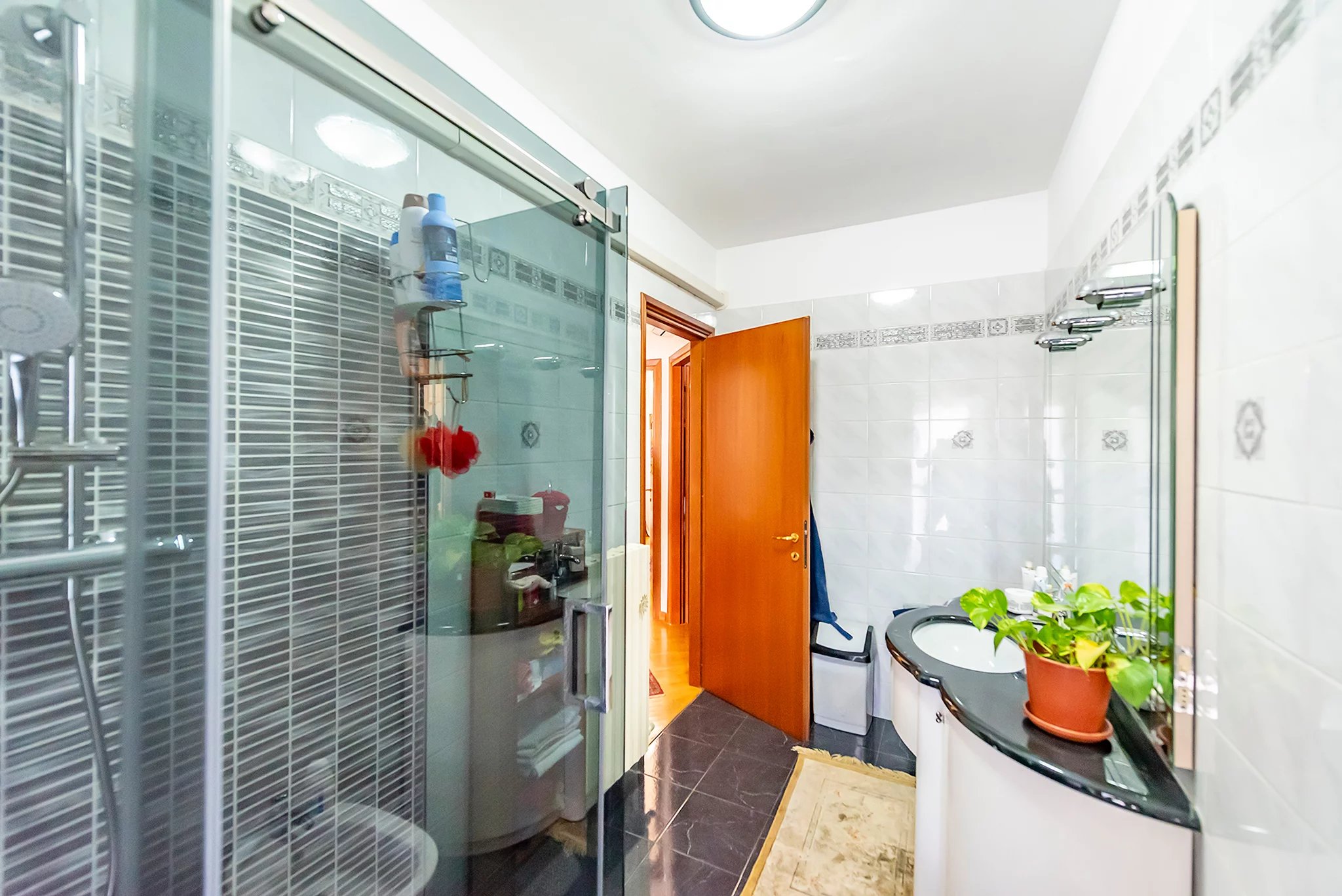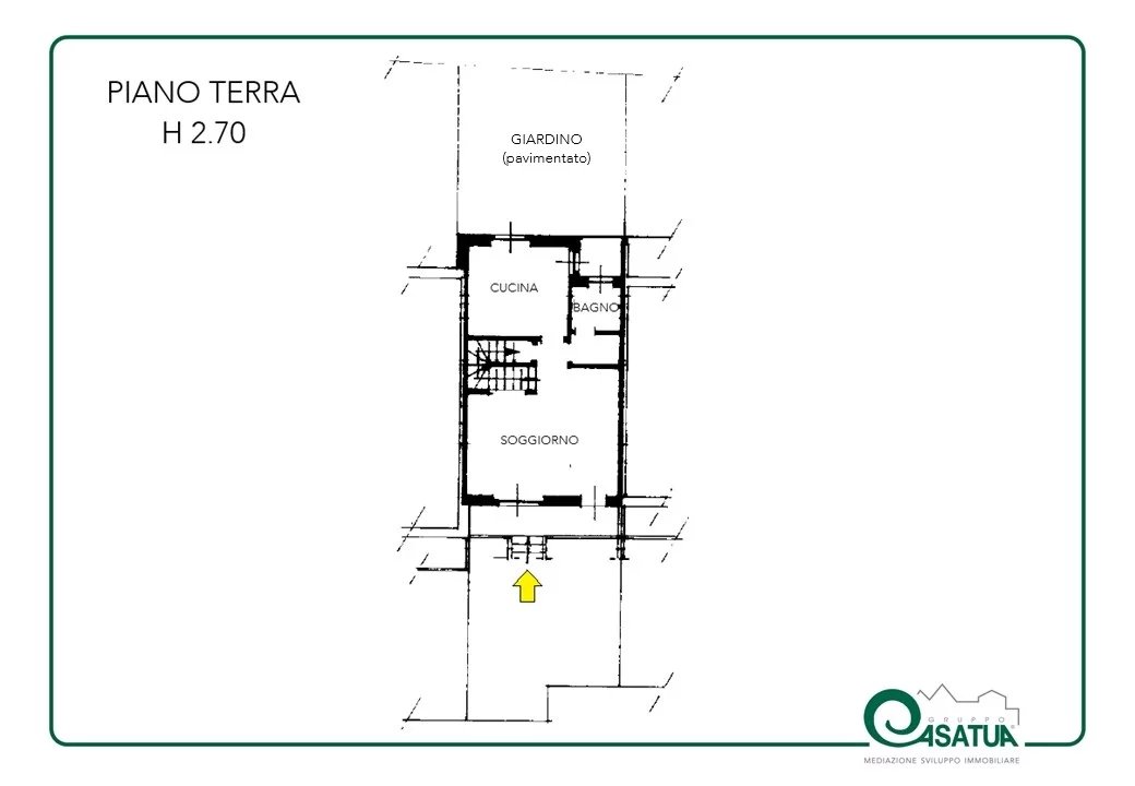 Piano Terra: ampia e luminosa zona giorno con salone, cucina abitabile, bagno, balcone frontale dal quale si accede all’abitazione, un piccolo giardino privato e scivolo che conduce al box. Sul retro, area esterna pavimentata con possibilità di trasformazione in giardino.