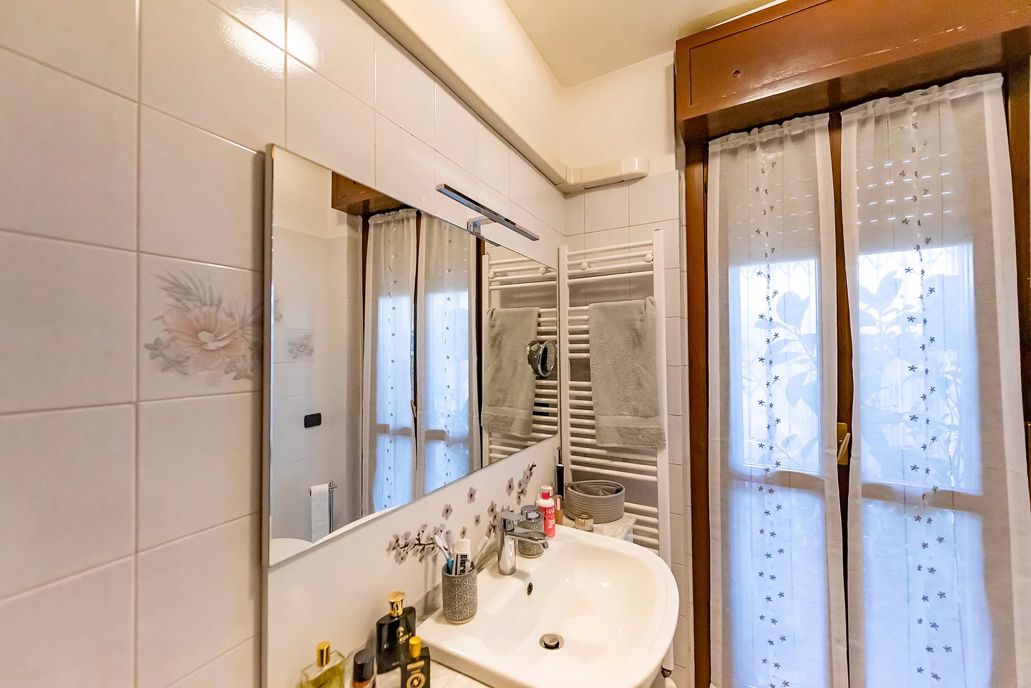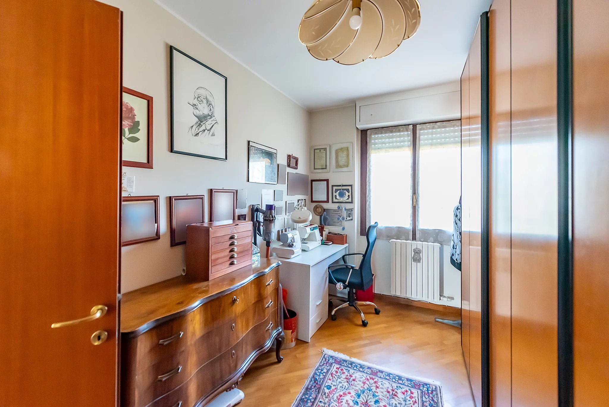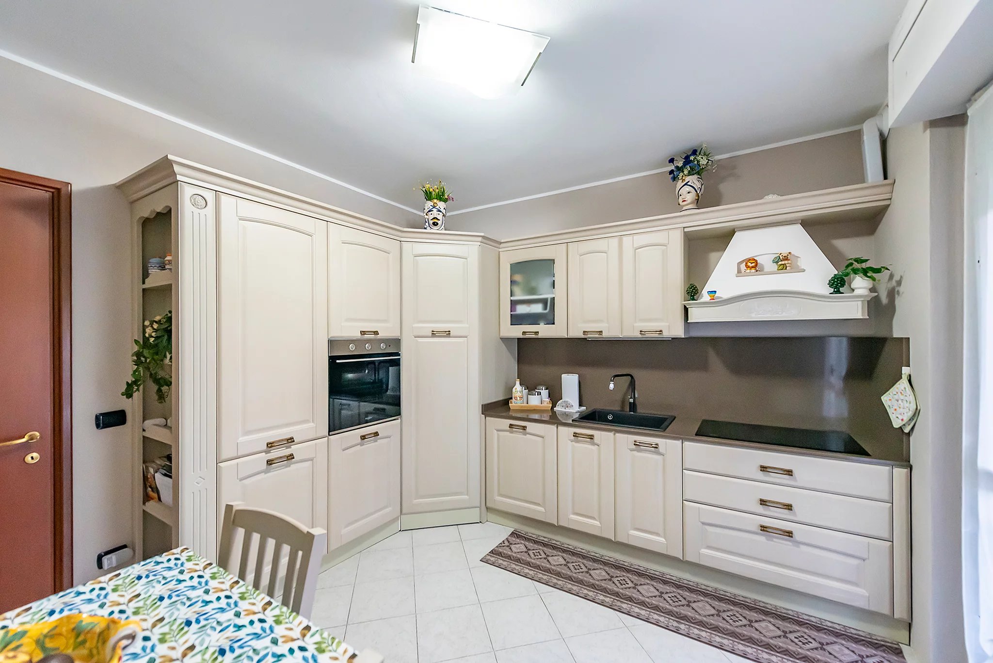 Piano Terra: ampia e luminosa zona giorno con salone, cucina abitabile, bagno, balcone frontale dal quale si accede all’abitazione, un piccolo giardino privato e scivolo che conduce al box. Sul retro, area esterna pavimentata con possibilità di trasformazione in giardino.
