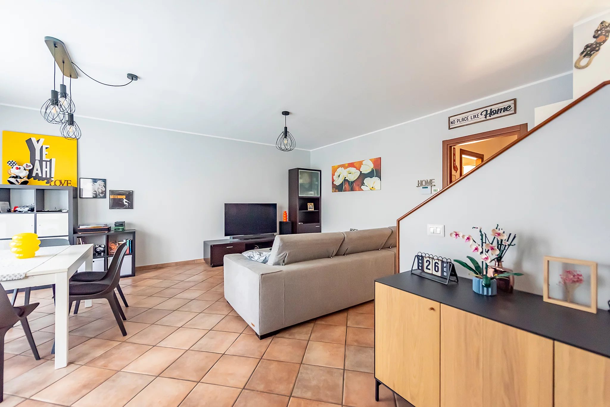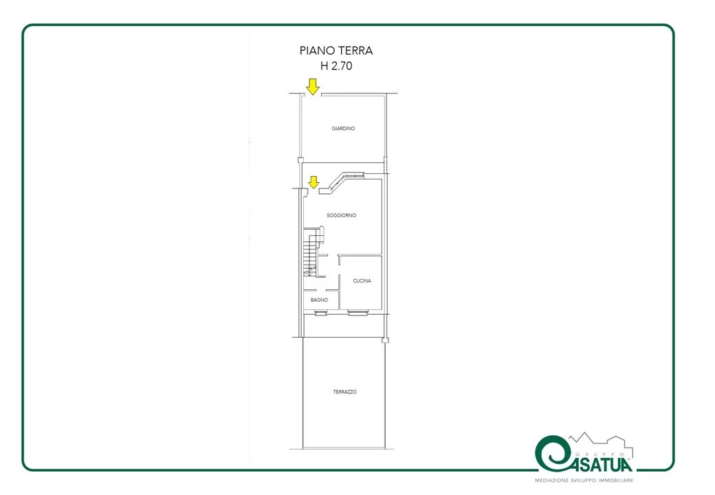 Al piano terreno troviamo un ampio soggiorno luminoso, cucina abitabile arredata, servizio e accesso diretto al giardino frontale con ingresso indipendente.