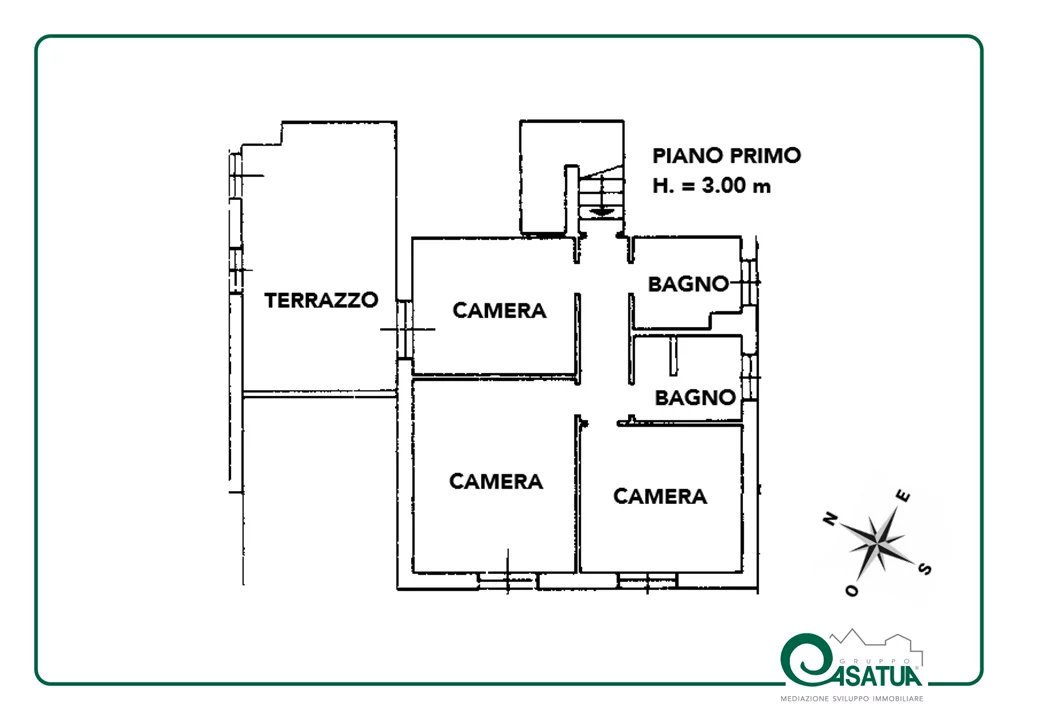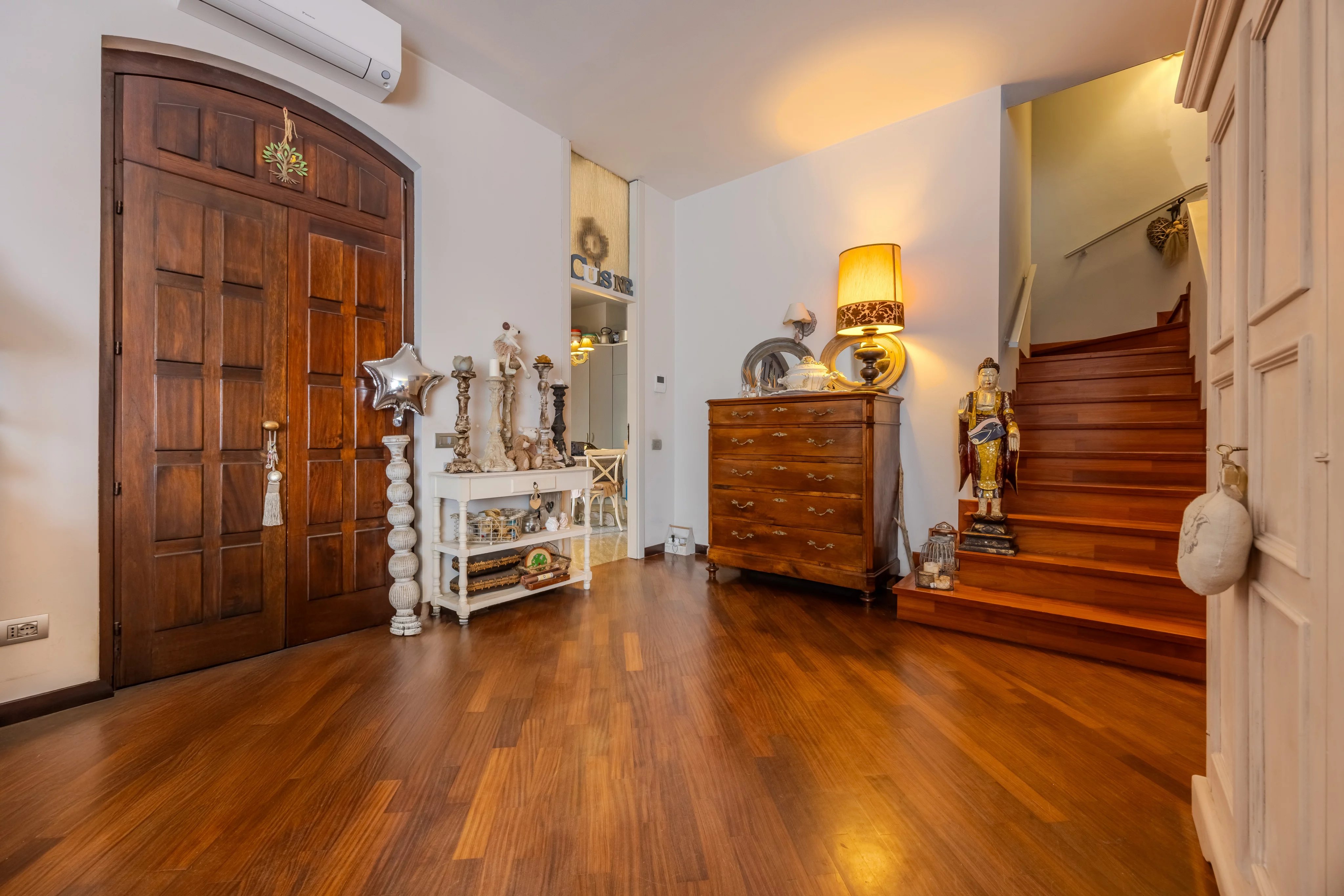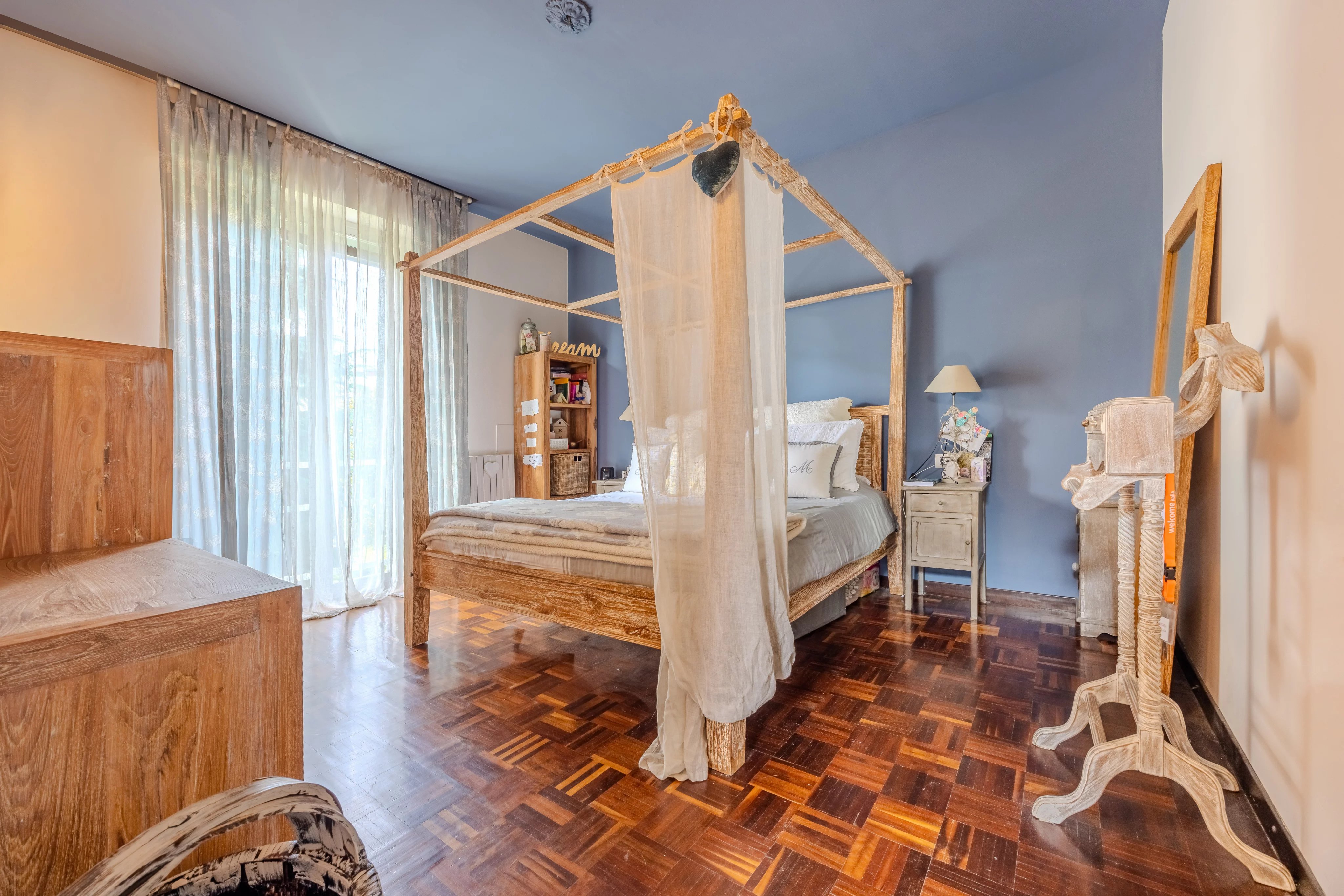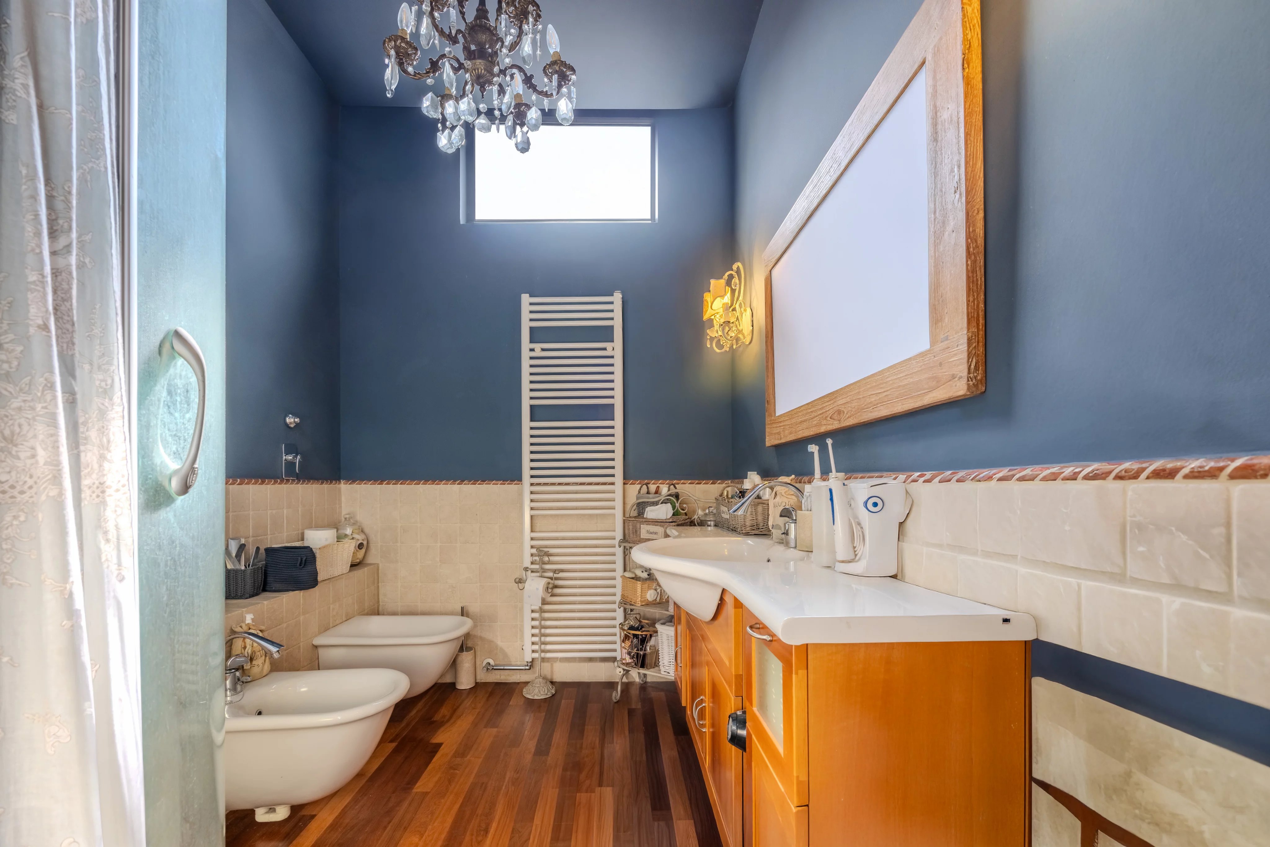 Al piano superiore la zona notte è organizzata con tre ampie camere da letto, doppi servizi ed un terrazzo.