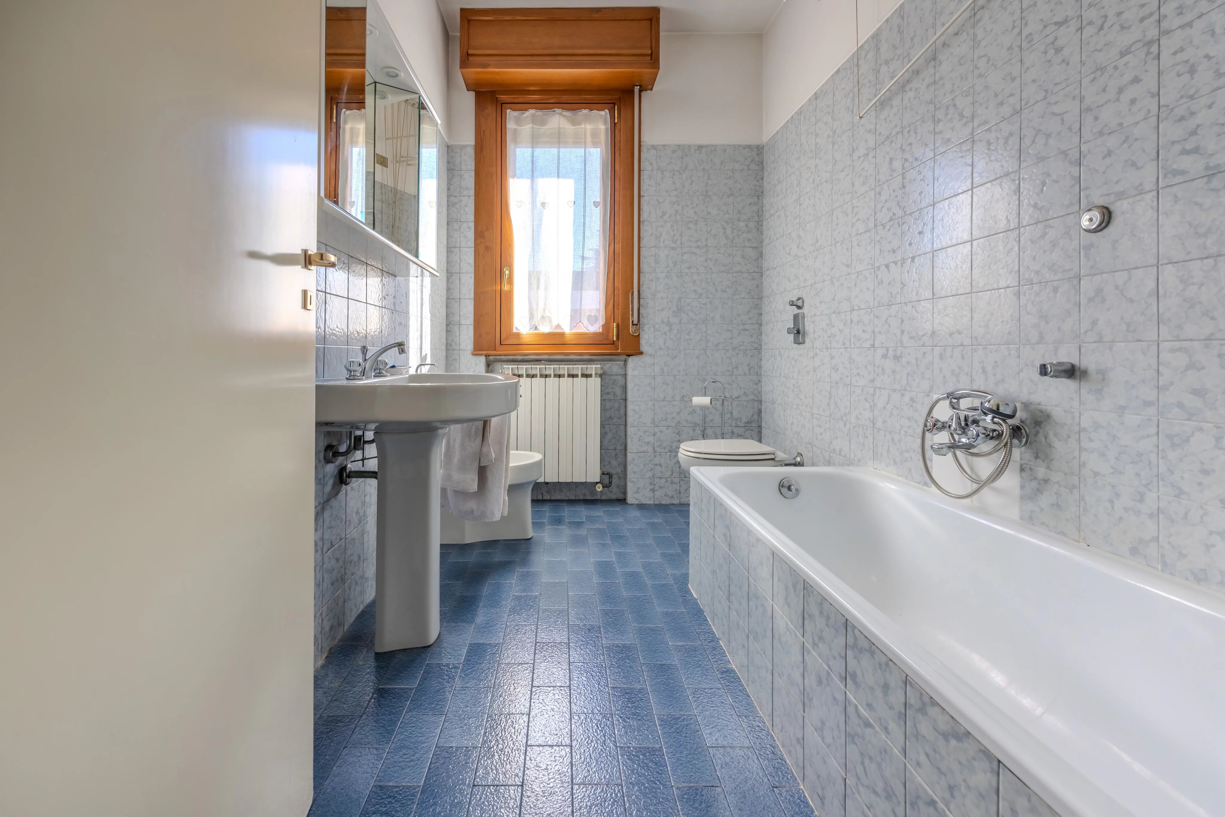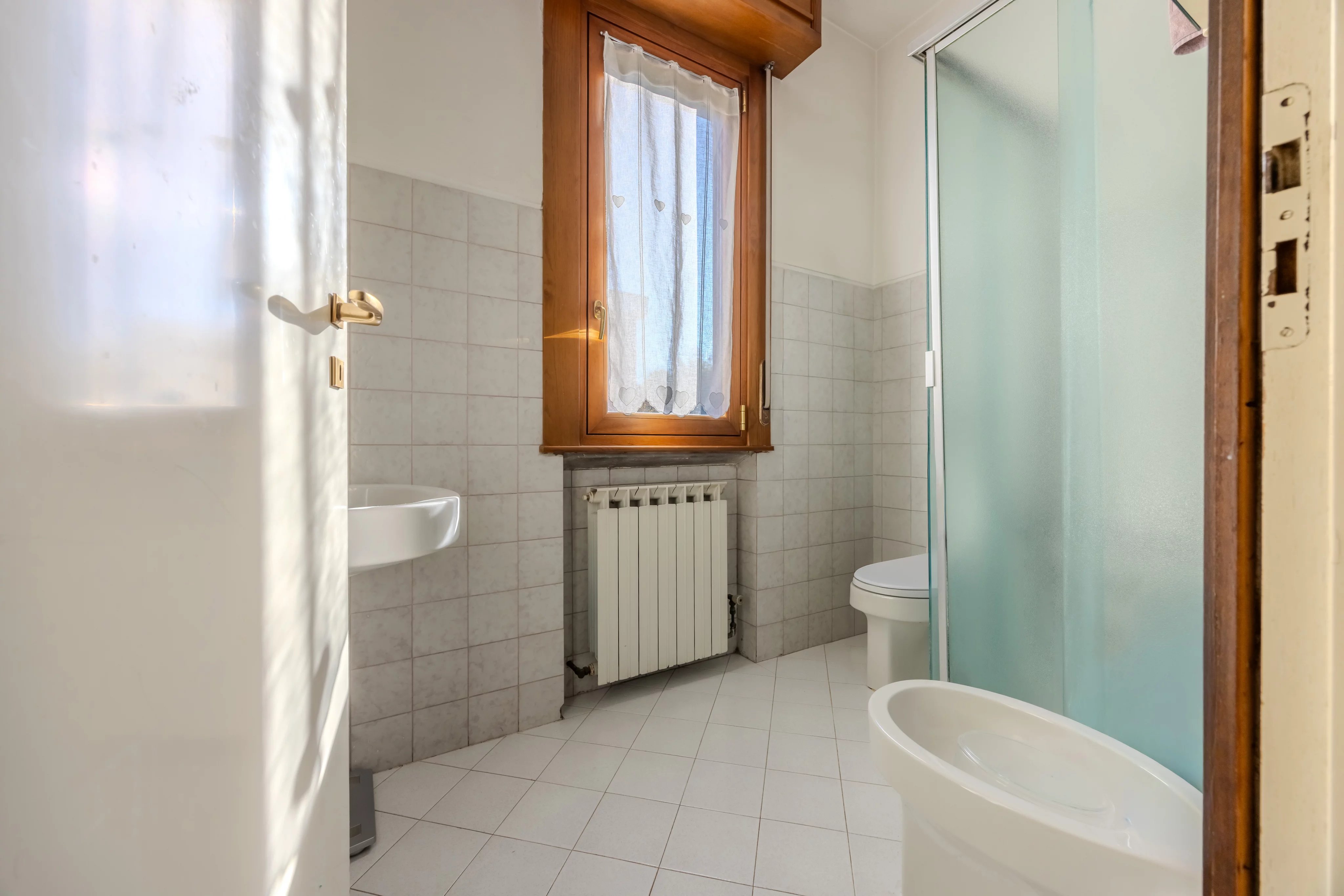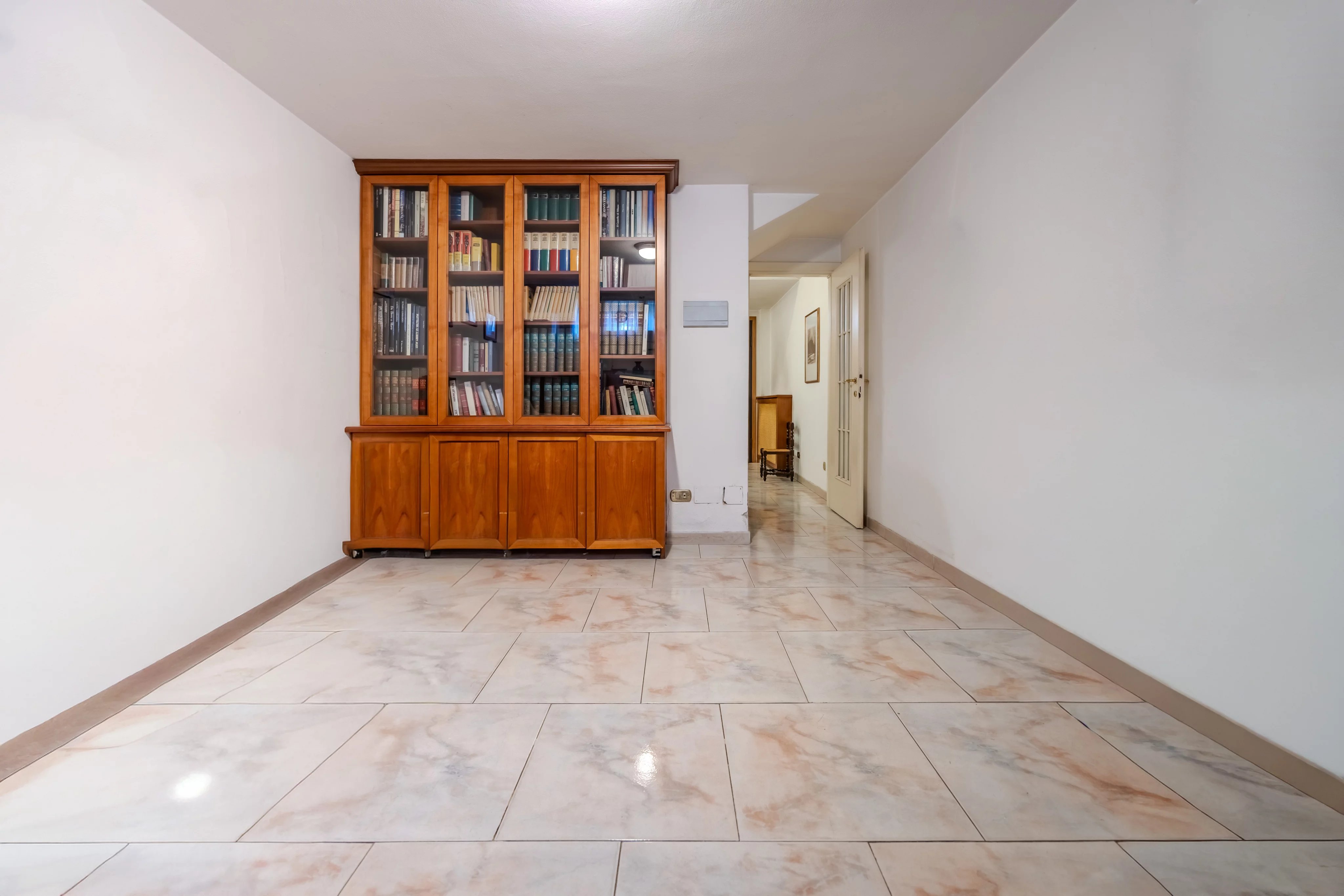 Una comoda scala conduce al cuore della casa. Qui troviamo un ampio e accogliente soggiorno con zona pranzo, collegato direttamente al patio e al giardino privato, un'oasi verde perfetta per cene estive e momenti di relax all'aperto. Completano il piano la spaziosa cucina abitabile e un bagno di servizio.